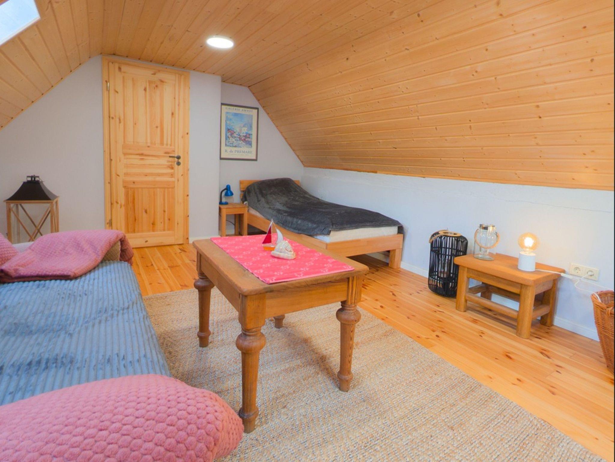 Das liebevoll eingerichtete Haus bietet eine gemütliche Küche mit Esstisch und ein Badezimmer im Erdgeschoss. Im Obergeschoss finden Sie ein Schlafzimmer mit Doppelbett und ein Wohnzimmer mit Einzelbett. Ein kostenfreier Parkplatz steht zur Verfügung, und Hunde sind erlaubt, dürfen sich jedoch nur im Erdgeschoss aufhalten. Nur 10 Gehminuten vom Hafen und etwa 30 Minuten mit dem Fahrrad zur Ostsee entfernt, ist Vincents Scheune der ideale Rückzugsort für Ihren Urlaub. Wäschepakete können gegen Gebühr hinzugebucht werden. Genießen Sie Ihren Aufenthalt!