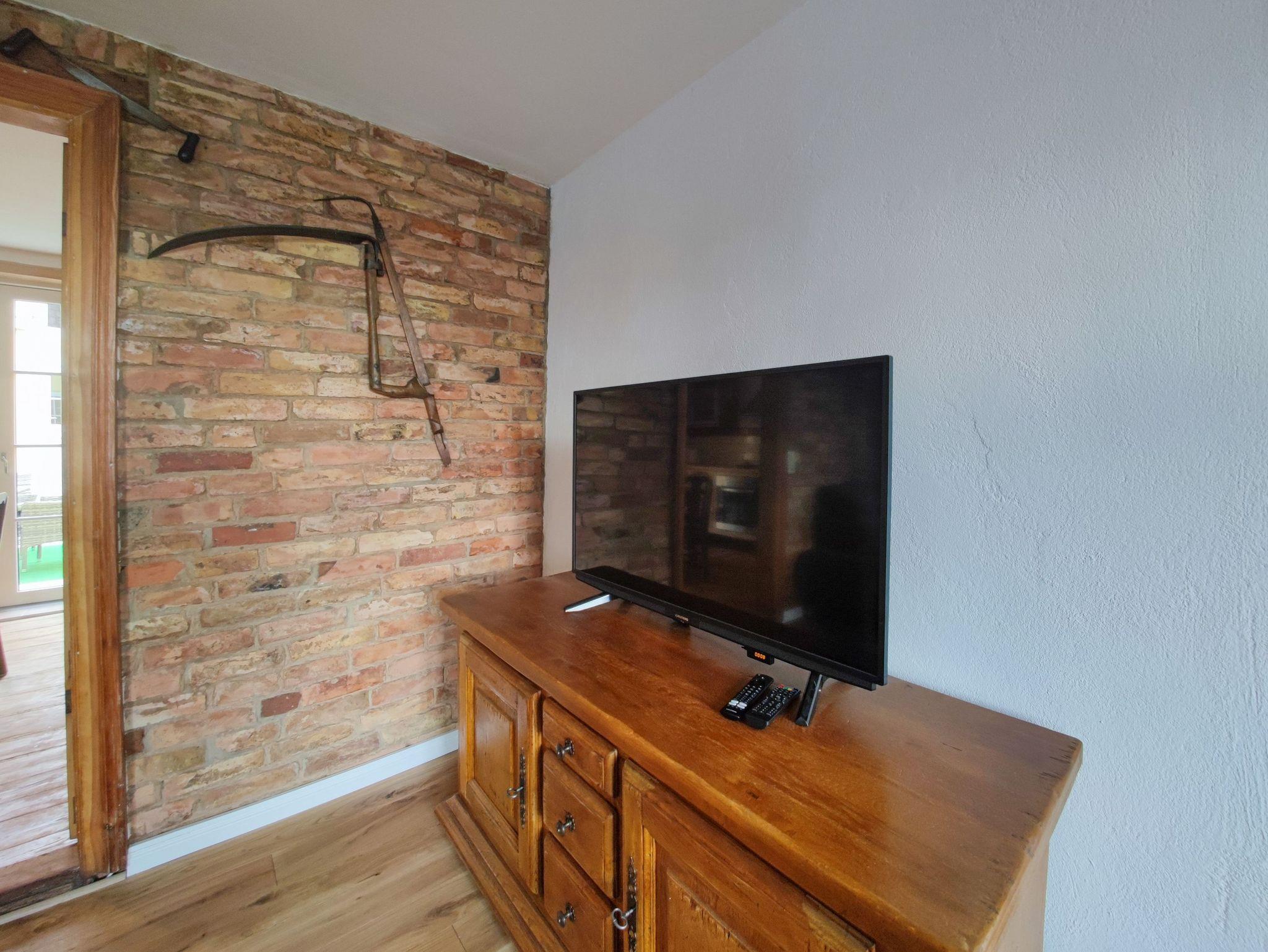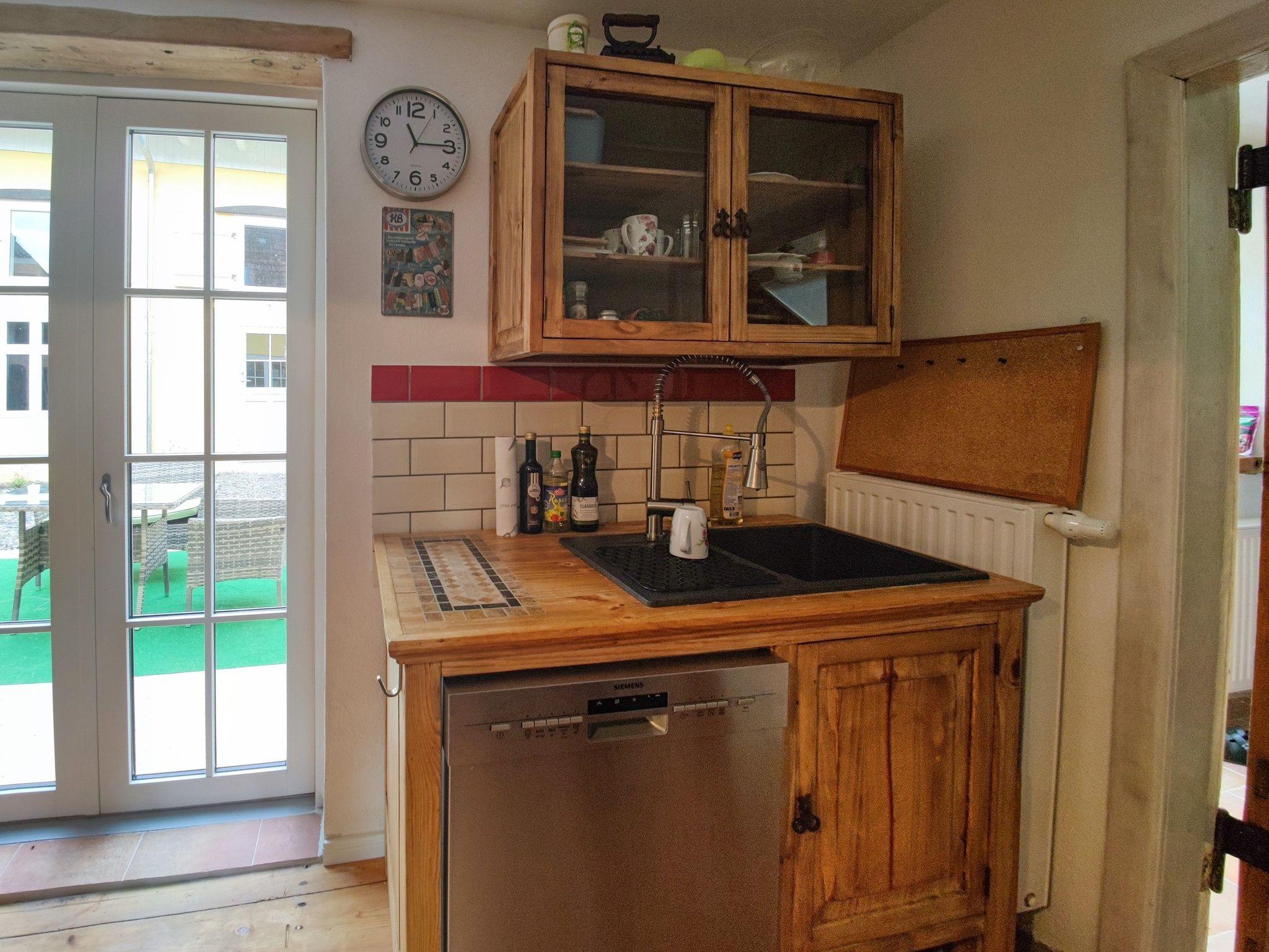 Das Haus verfügt über zwei Schlafzimmer, zwei Badezimmer, eine Küche und ein Wohnzimmer, welche über zwei Etagen verteilt sind. Es ist liebevoll mit Vollholzmöbeln und Antiquitäten eingerichtet.