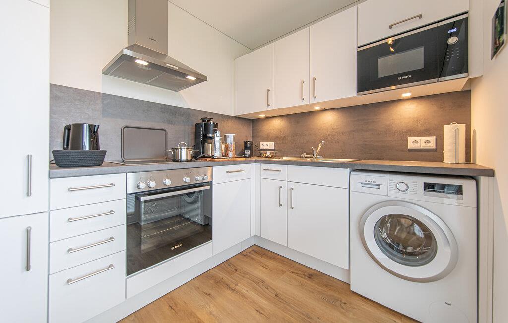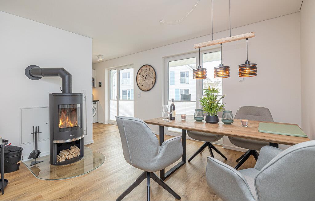 Die Ferienwohnung Kap Horn ist hochwertig eingerichtet und verfügt über einen großzügigen Wohn- und Essbereich, der zum gemütlichen Beisammensein einlädt. Angrenzend findet ihr eine offene und voll ausgestattete Küche, in der das Kochen zum gemeinsamen Erlebnis wird! Genießen Sie Ihre Mahlzeiten, entweder am großen Esstisch oder auf der überdachten Südwestterrasse. Ein Grill steht euch dabei für eure kulinarische Abwechslung zur Verfügung.