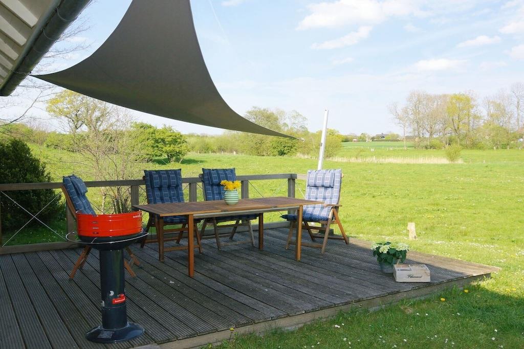 Das Ferienhaus grenzt direkt an weitläufige, hügelige Wiesen mit Blick auf einen Bauernhof und garantiert somit von der ersten Minute an Entspannung und Erholung pur. Das komfortable und geschmackvoll eingerichtete Ferienhaus mit seinen 135 qm Wohnfläche kann von bis zu 8 Urlaubsgästen genutzt werden und bietet sich insofern idealer Weise für Familien mit Kindern an. Das Haus punktet insbesondere durch die Ausstattung, die kaum Wünsche offen lassen wird. Hinzu kommt der schöne Garten mit Blick auf die unverbaute Natur. Zum Ferienhaus gehören ein Gemeinschaftsraum mit Waschmaschine und Trockner sowie ein abschließbarer Carport zum Abstellen von Fahrrädern oder Sportgeräten. Eigener Parkplatz, Grill, Strandkorb, Gartenmöbel mit Auflagen.