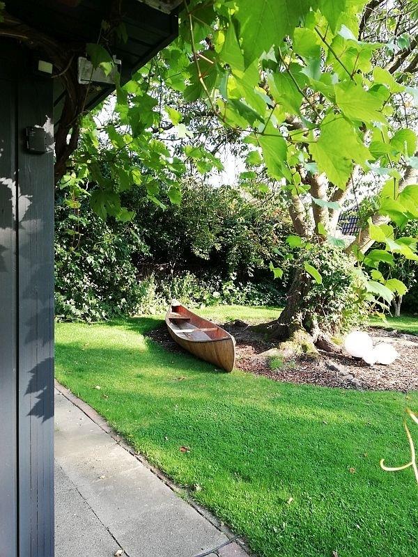 Das Haus befindet sich inmitten eines alten, wunderschön eingewachsenen Gartens. Große Bäume und eine Obstwiese gehören ebenso dazu sowie unterschiedliche Sitz- und Ruheplätze. Vom Garten aus haben Sie einen schönen Blick auf die Schlei und den Kappelner Fischereihafen. Auf dem Grundstück befinden sich ein PKW-Stellplatz und ein geschützter Stellplatz für zwei Fahrräder. Eine Ladestation für E-Bikes ist vorhanden.