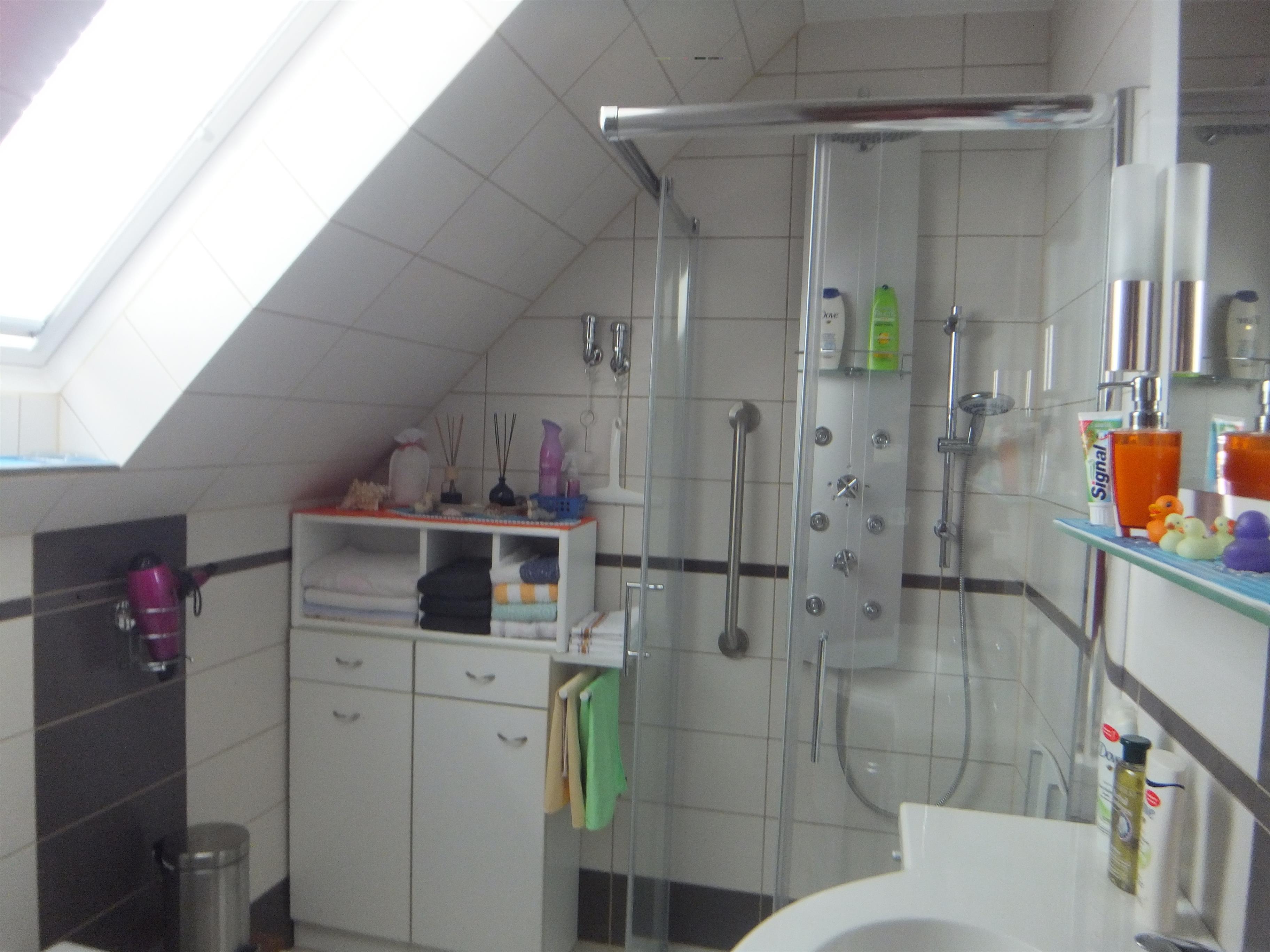 Das 2017 renovierte Bad verfügt über eine Dusche mit Duschpanel und ein zusätzliches Bidet.