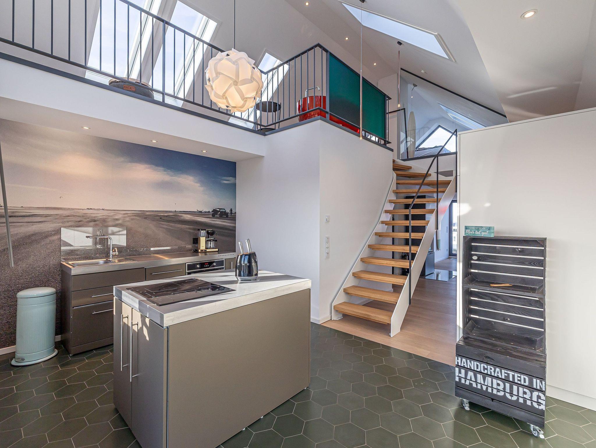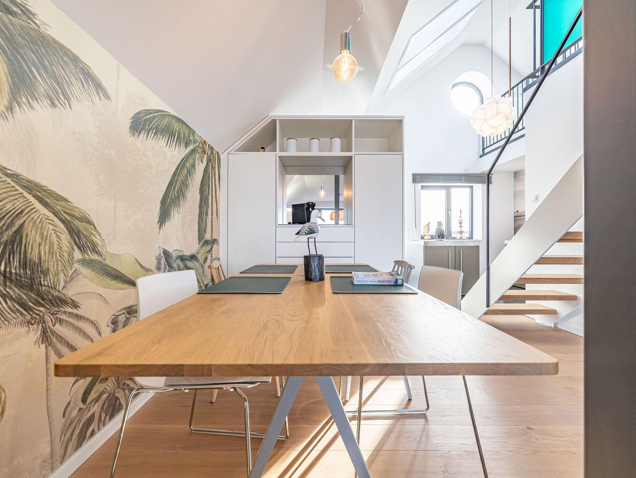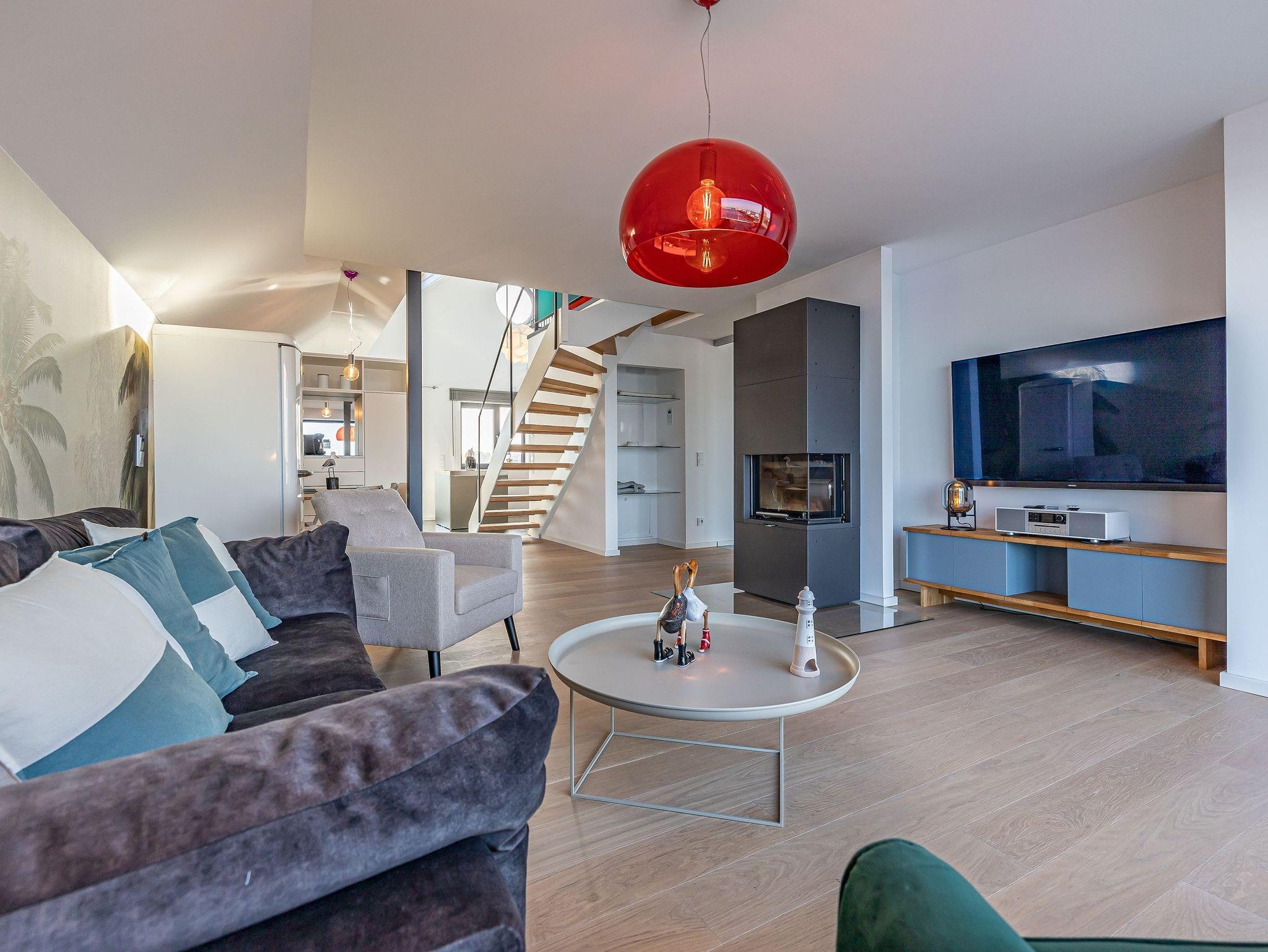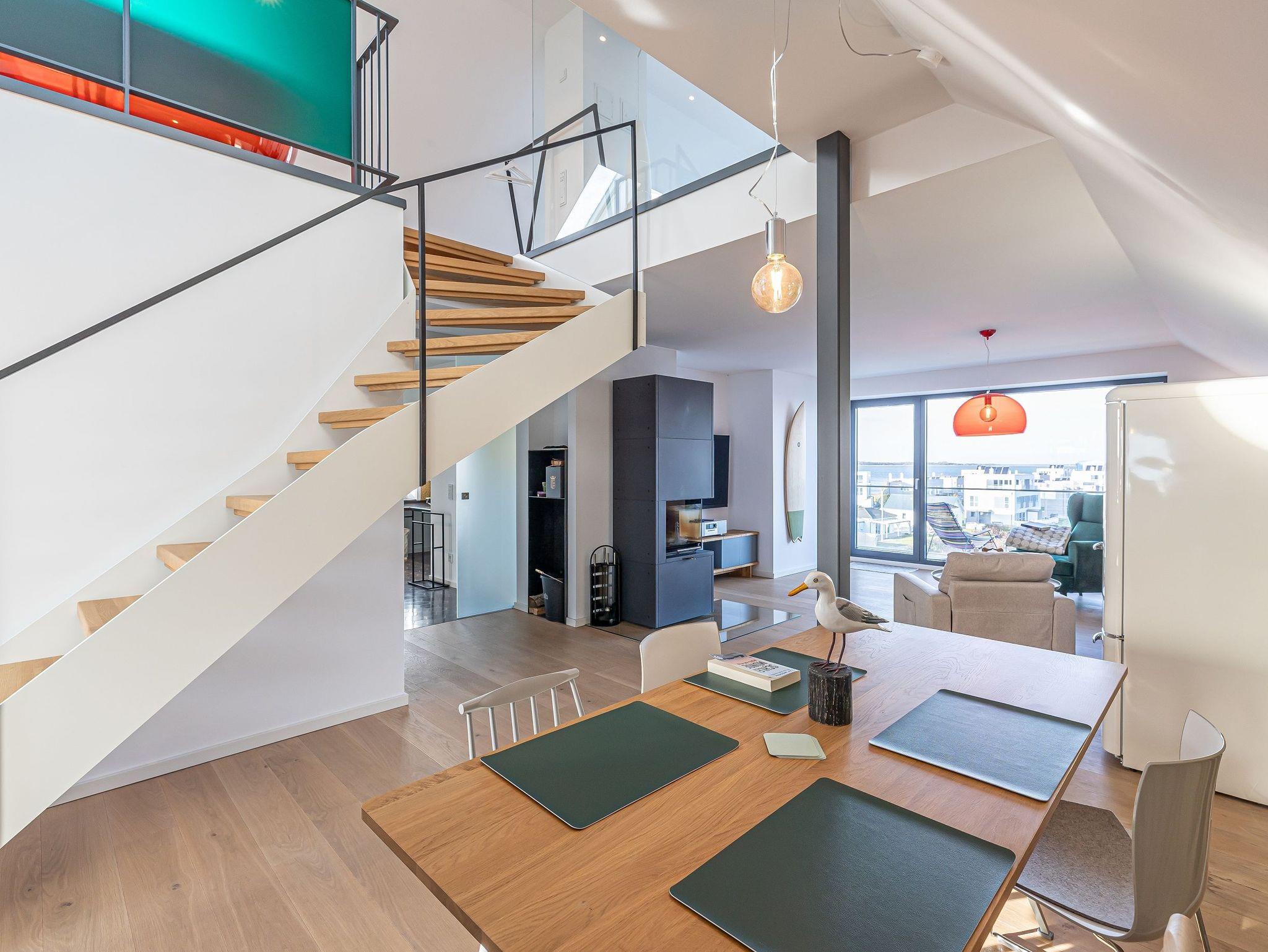 Tauchen Sie ein in ein besonderes Wohnerlebnis: Diese 126 m² große Maisonette-Wohnung, ideal für 2 bis 4 Personen, verbindet großzügige Raumgestaltung mit exklusiver Ausstattung und einer einzigartigen Mischung aus Gemütlichkeit und maritimem Flair.