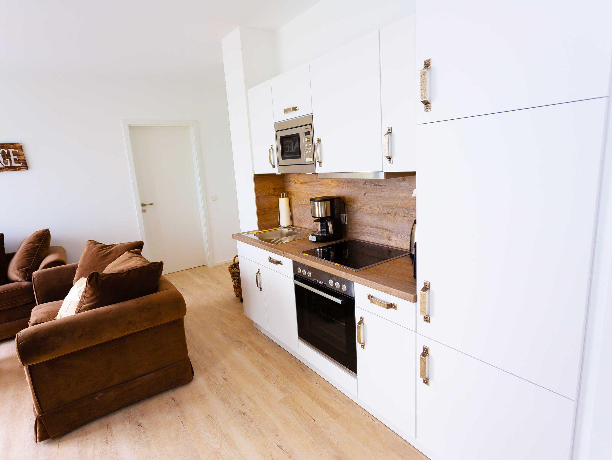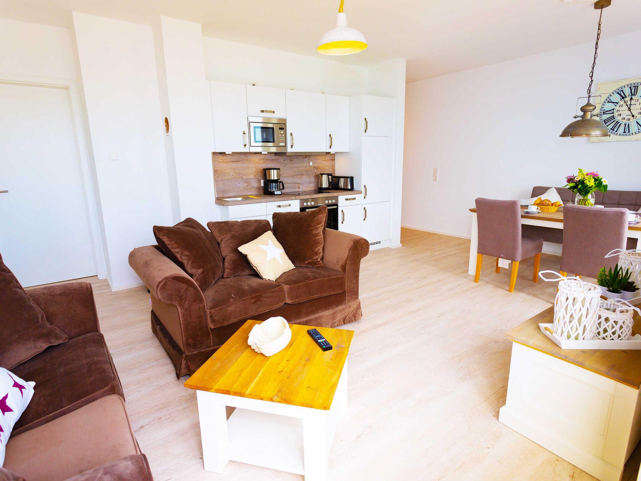 Die Komfort-Ferienwohnung Waterkant befindet sich in dem durch einen Aufzug erreichbaren 1. Obergeschoss vom Molenhuus, das nur 6 Meter (!) von der Ostsee entfernt liegt. Die Wohnung bietet Platz für bis zu 4 Personen und ist exzellent und sehr hochwertig ausgestattet.