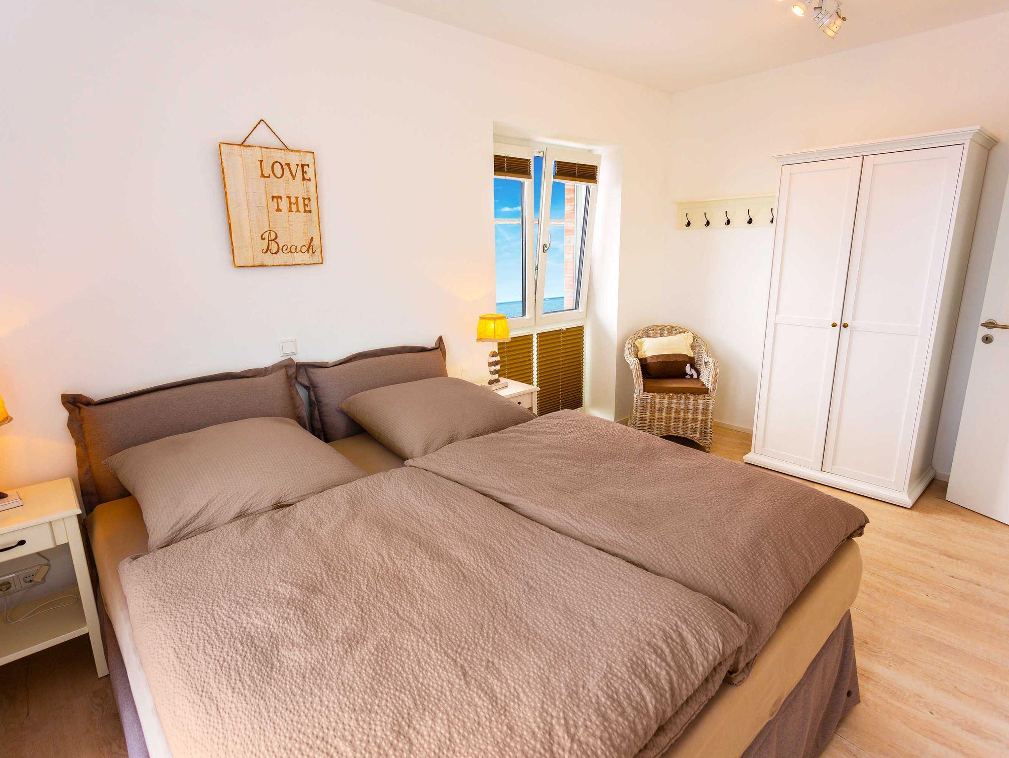 Das von Meer-Ferienwohnungen angebotene Appartement besticht durch eine atemberaubende Lage mit direktem Meerblick. Die hochwertig ausgestattete Wohnung besteht aus einem Wohnzimmer mit Küche und Balkon, zwei Schlafzimmern und zwei Bädern. Im Kellergeschoss befindet sich eine Gemeinschaftssauna. Eine Parkmöglichkeit ist selbstverständlich vorhanden.