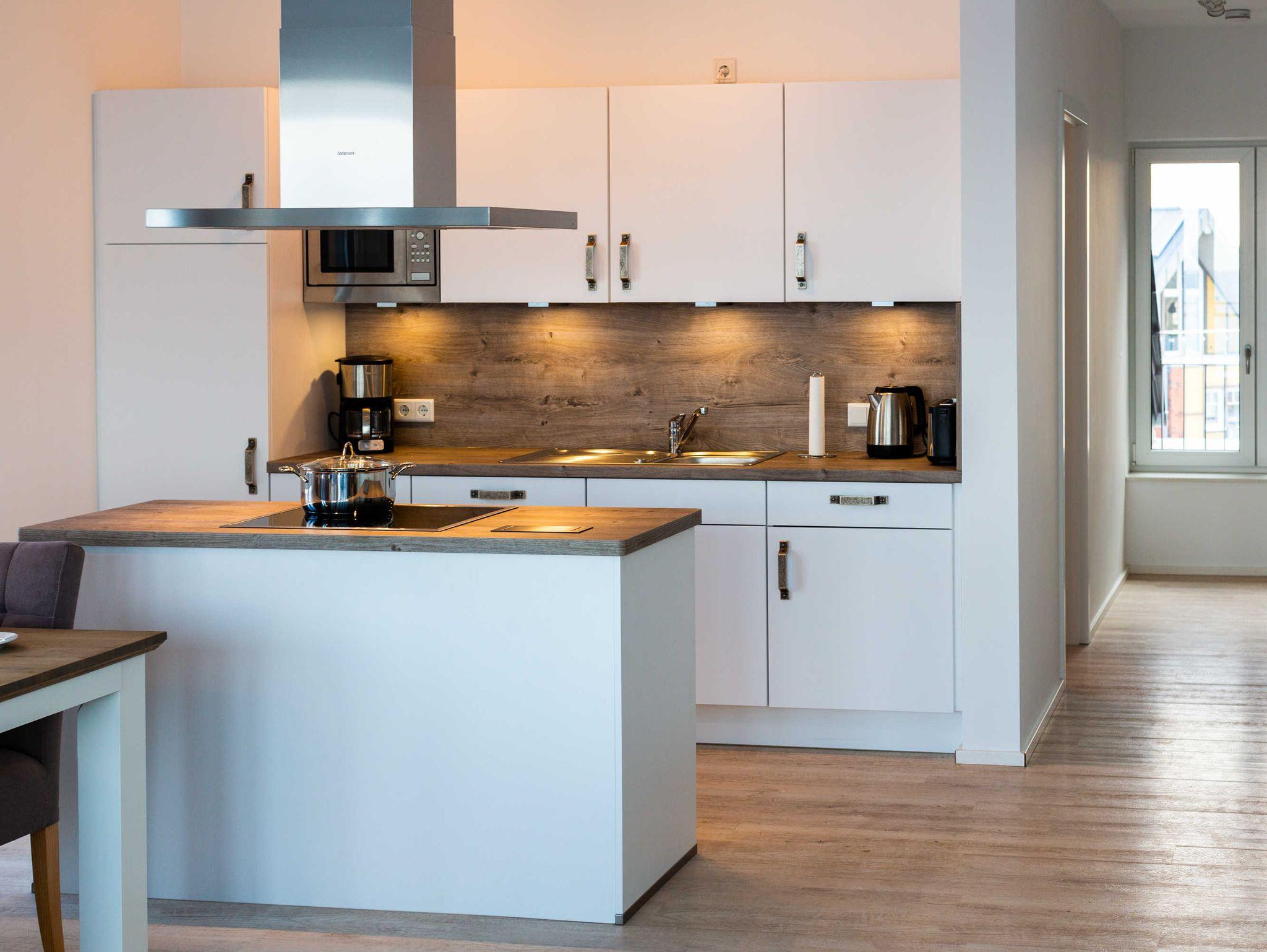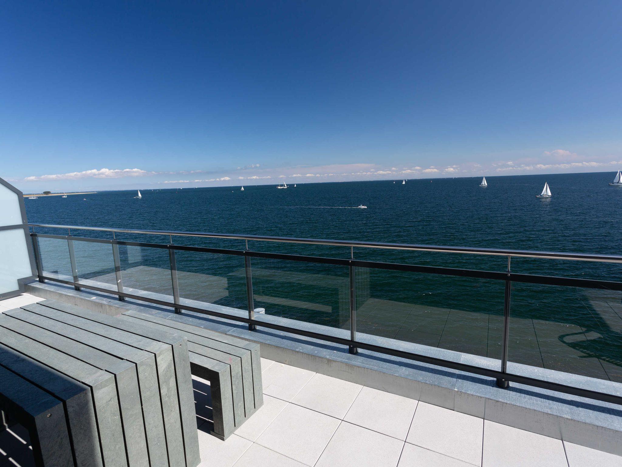 Dat Penthuus befindet sich in dem durch einen Aufzug erreichbaren 3. Obergeschoss vom Molenhuus, das nur 6 Meter (!) von der Ostsee entfernt liegt. Die Wohnung bietet Platz für bis zu 5 Personen und ist exzellent und sehr hochwertig ausgestattet.