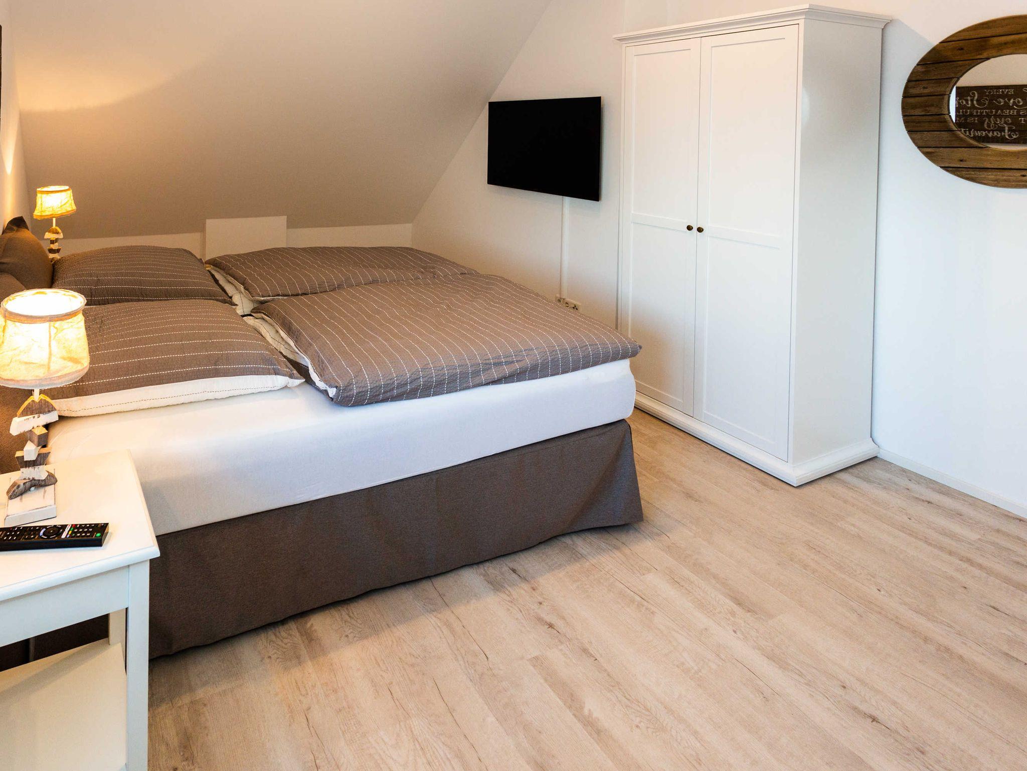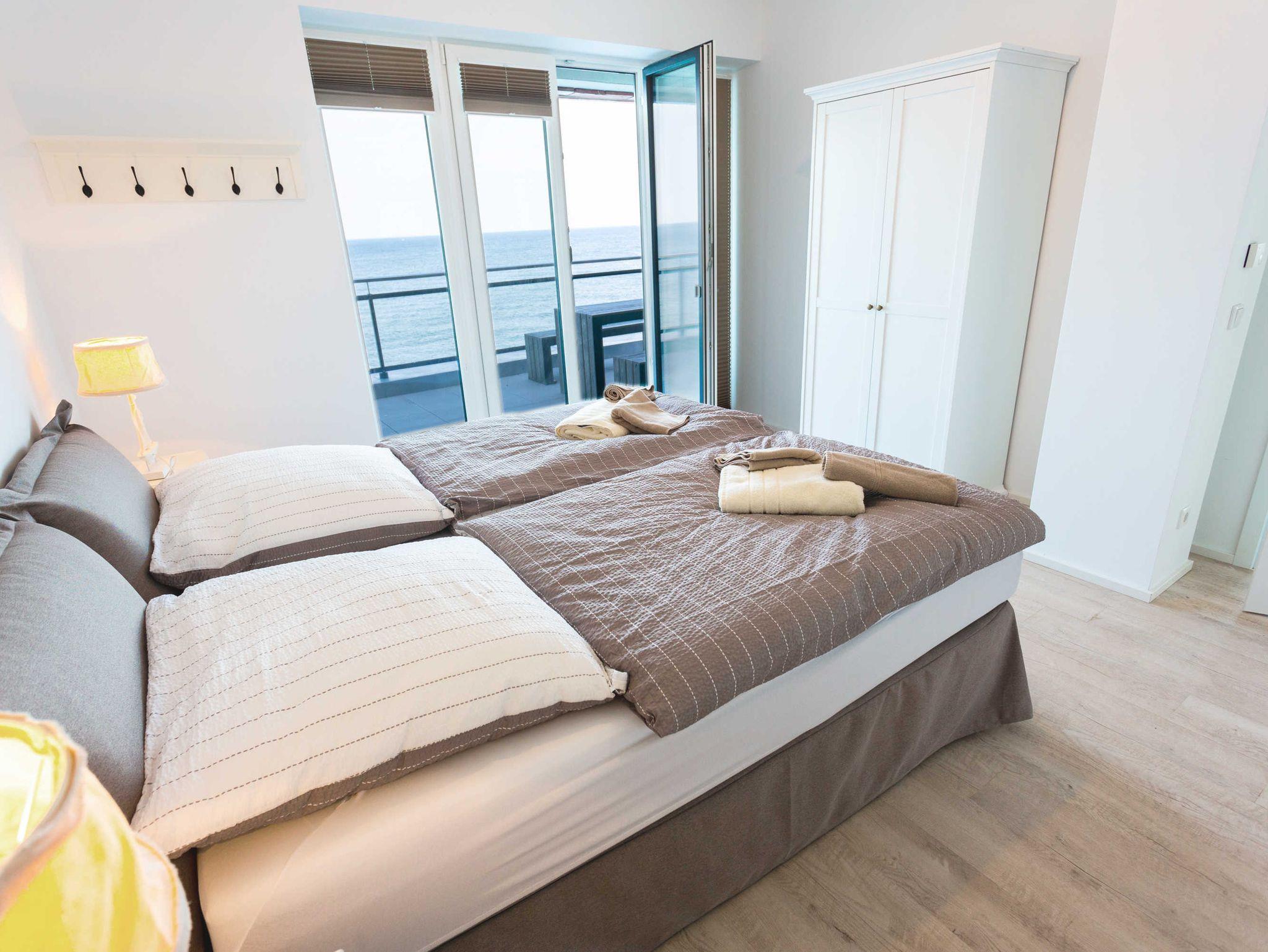 Das von Meer-Ferienwohnungen angebotene Appartement besticht durch eine atemberaubende Lage mit direktem Meerblick. Die hochwertig ausgestattete Wohnung besteht aus einem Wohnzimmer mit Küche und Dachterasse, zwei Schlafzimmern und zwei Bäder. In der Wohnung befindet sich eine Sauna. Eine Parkmöglichkeit ist selbstverständlich vorhanden.