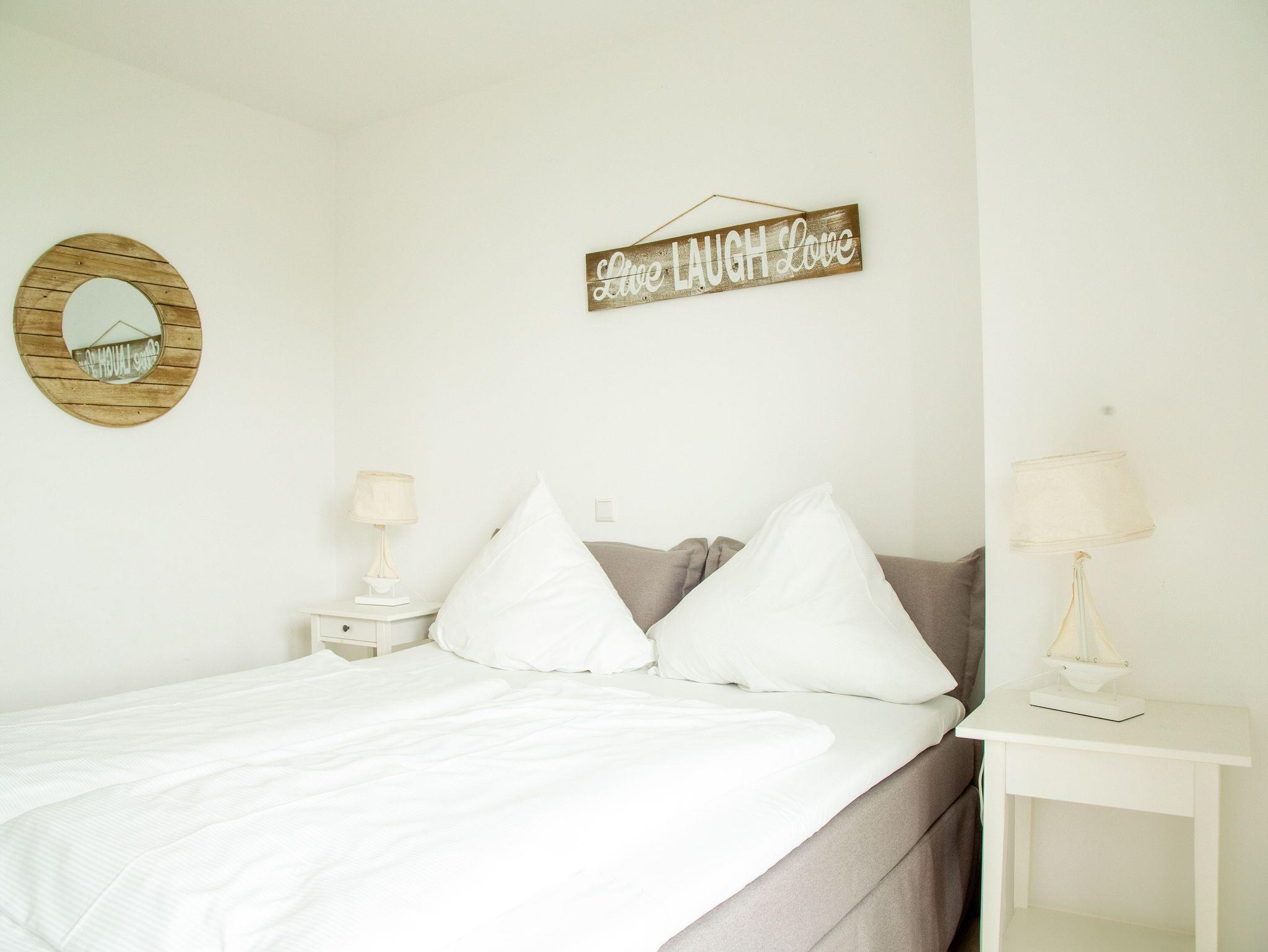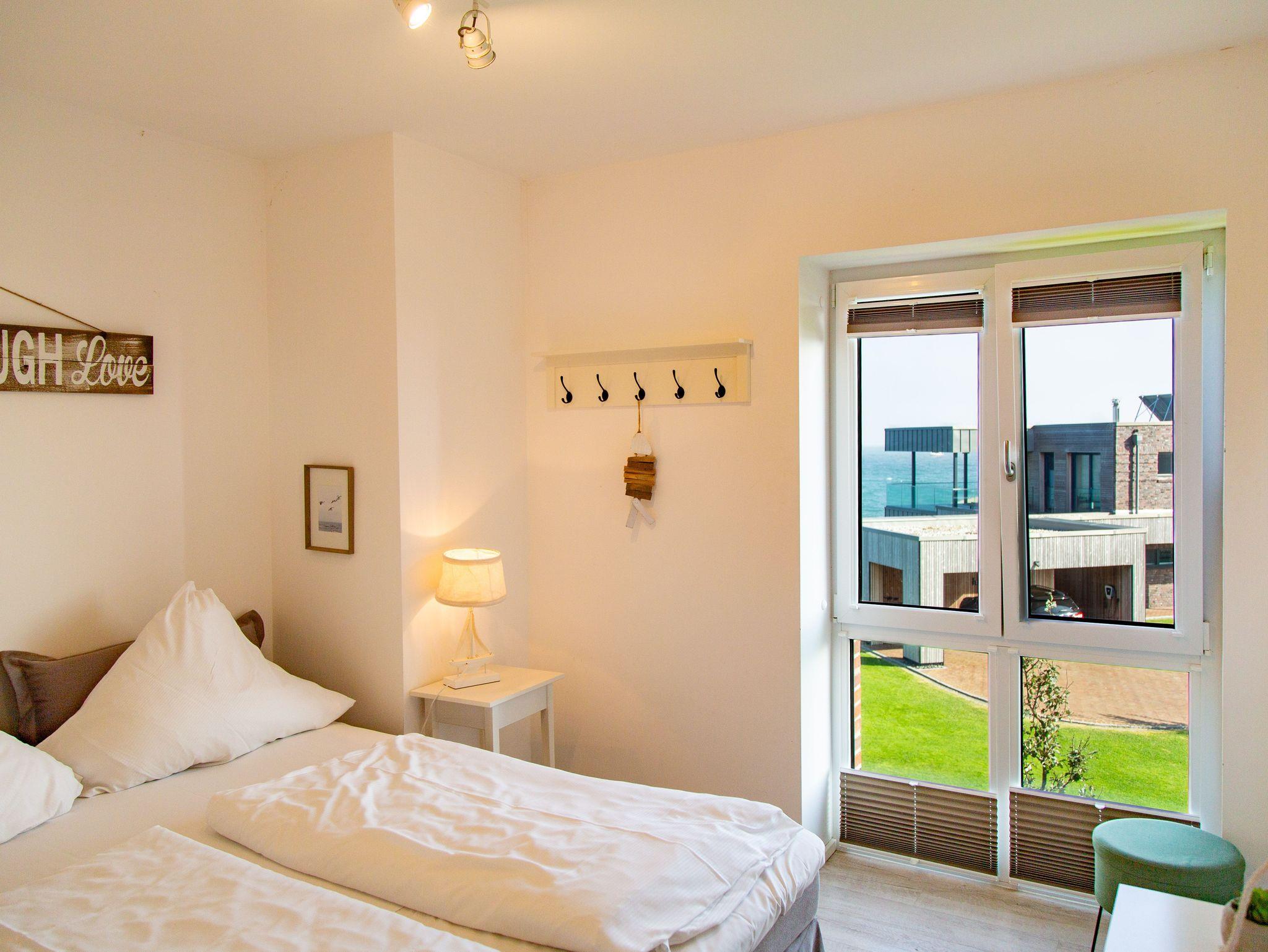 Vom gemütlichen Schlafzimmer mit tollem Boxspringdoppelbett (1,80 m x 2,00 m) und eigenem Flat-TV haben Sie auch einen sehr schönen Blick aufs Wasser. Dunkle Plissees am Fenster sorgen für Abdunkelung und einen ungestörten Schlaf.