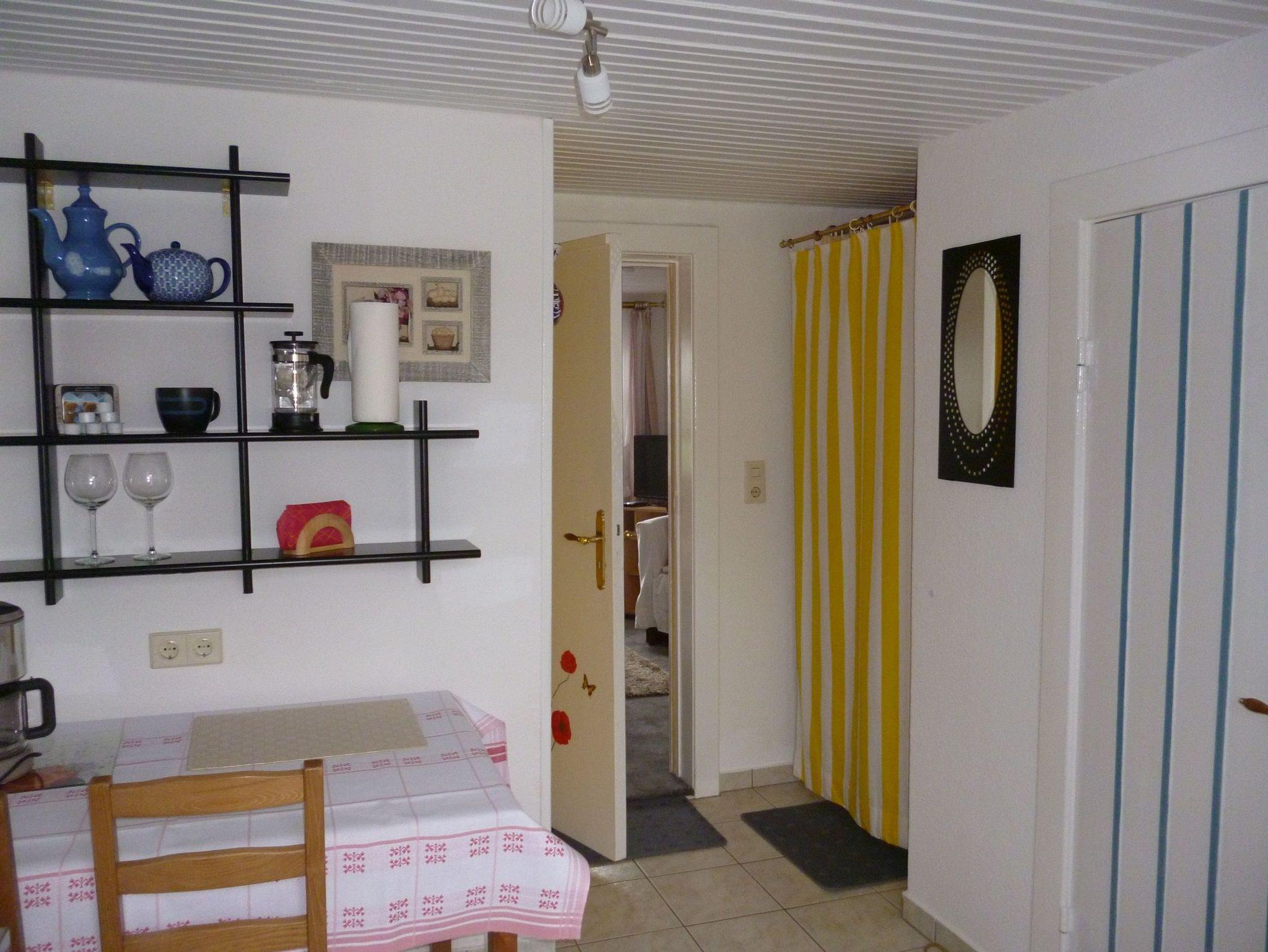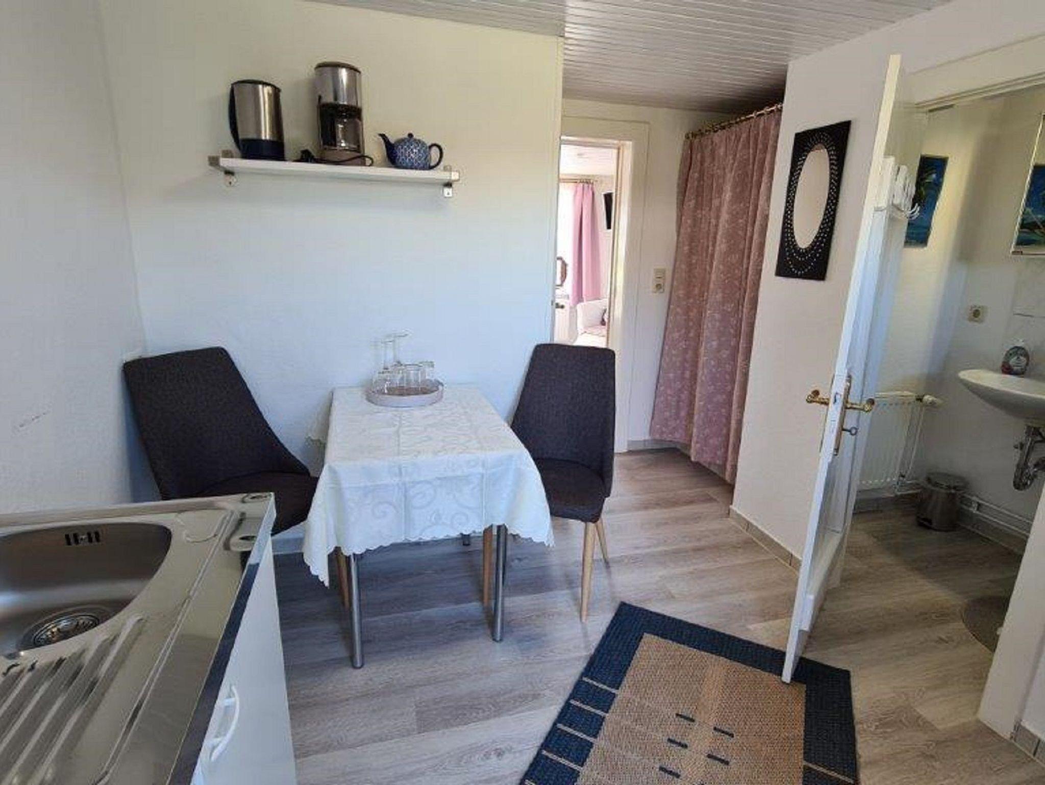 Ferienwohnung 26 (Zweiraum-Appartement )für 2 Personen. Kombinierter Wohn-Schlafraum mit Doppelbett, kleine Pantryüche mit Sitzgelegenheit, Dusche, WC und Waschgelegenheit.