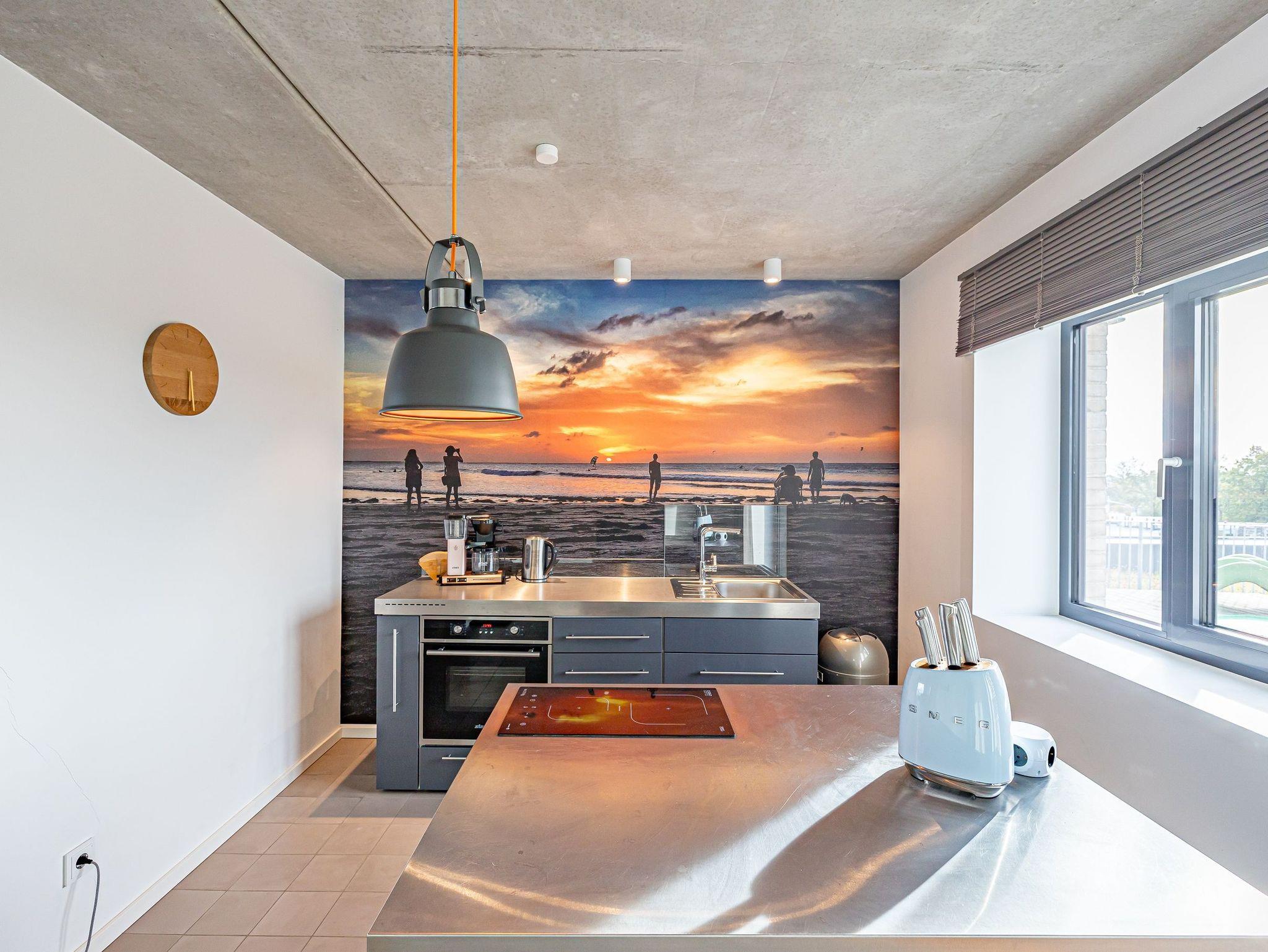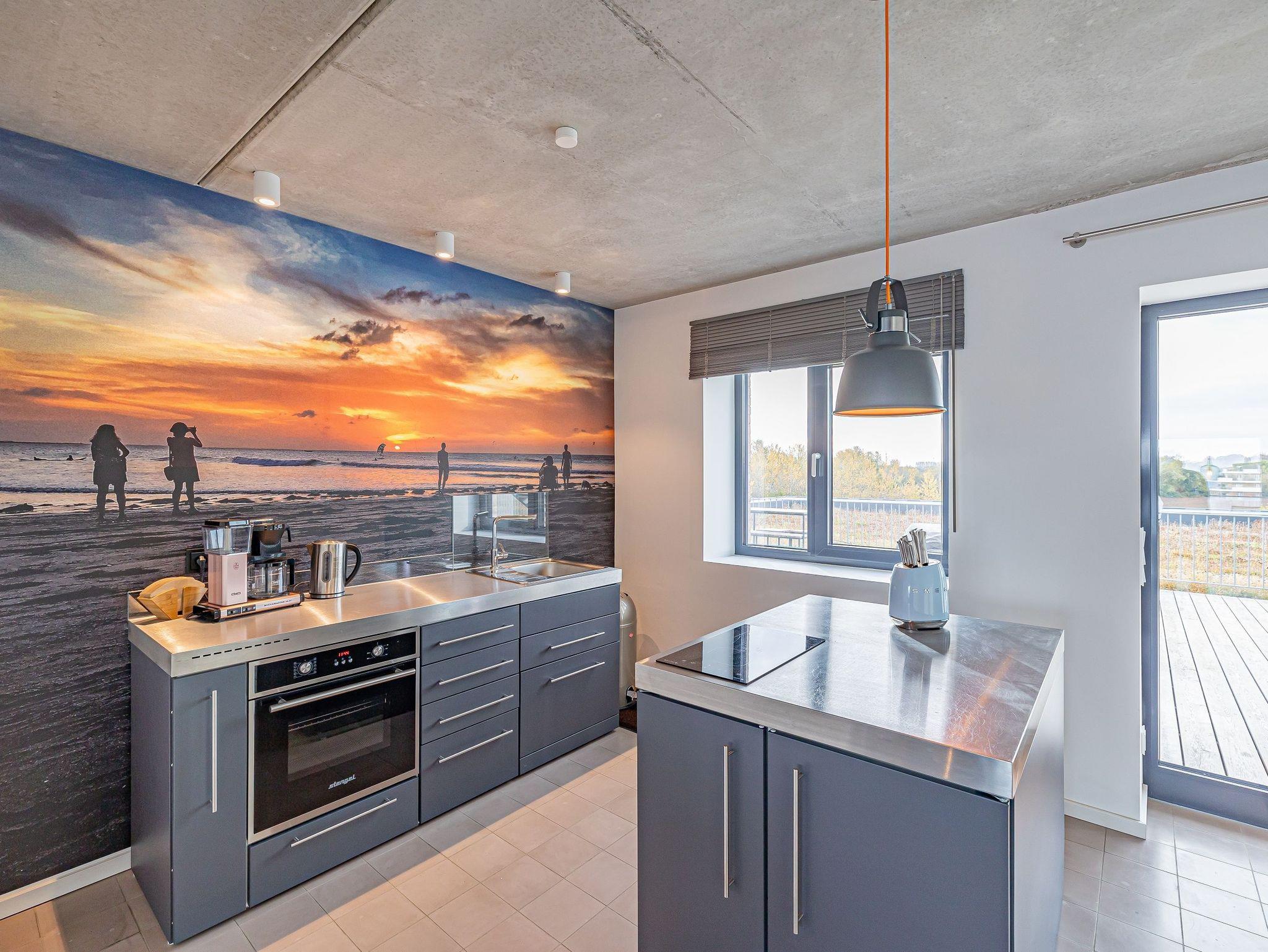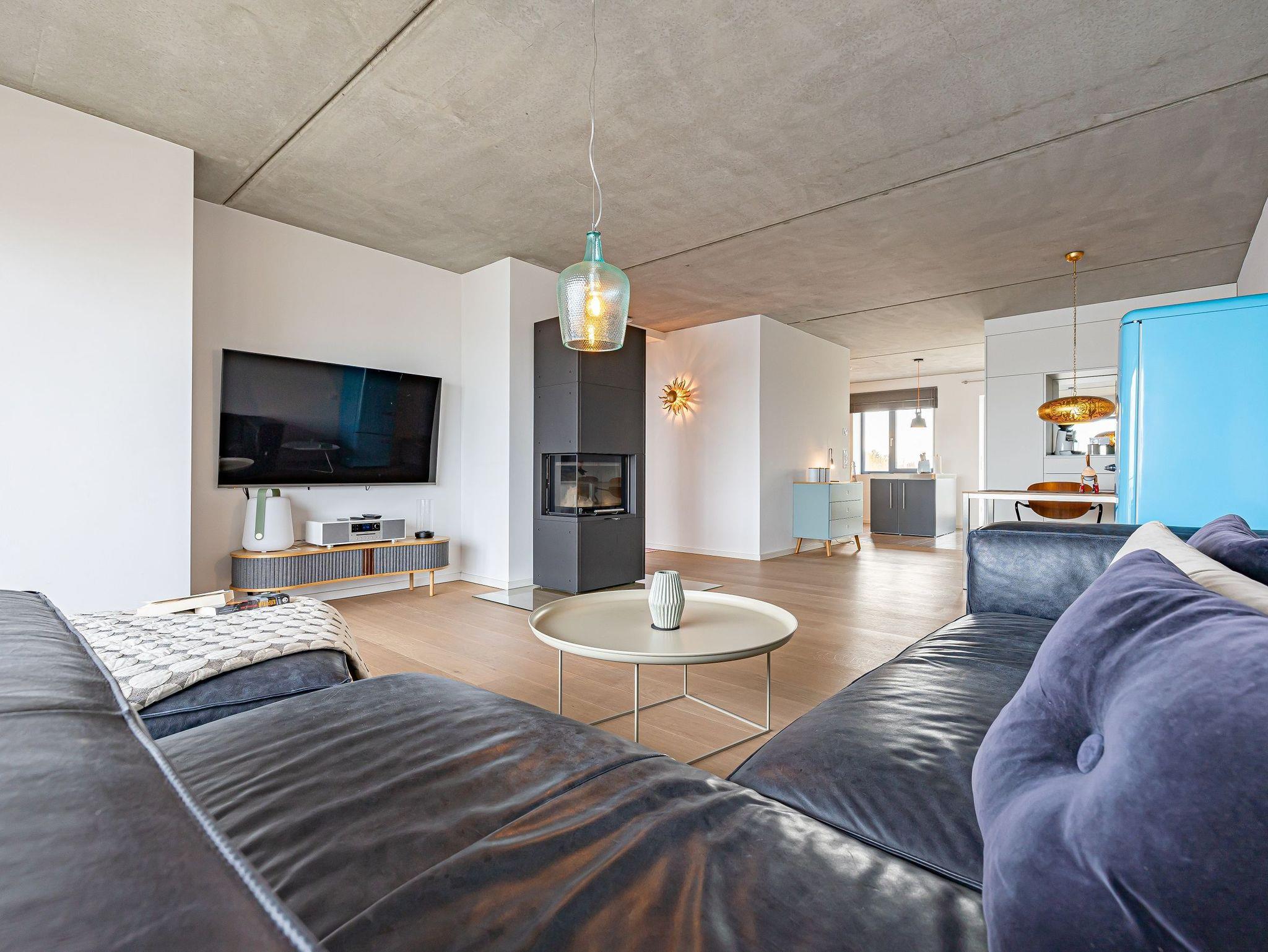 Genießen Sie Ihren Urlaub in einem großzügigen 3-Zimmer-Apartment, das keine Wünsche offenlässt. Die offene, voll ausgestattete Küche mit einem kreativen Wandbild lädt zum gemeinsamen Kochen ein. Im stilvollen Wohnbereich mit Kamin genießen Sie eine warme, einladende Atmosphäre und einen atemberaubenden Panoramablick auf den Hafen, Schleimünde mit seinem Leuchtturm sowie die Ostsee.