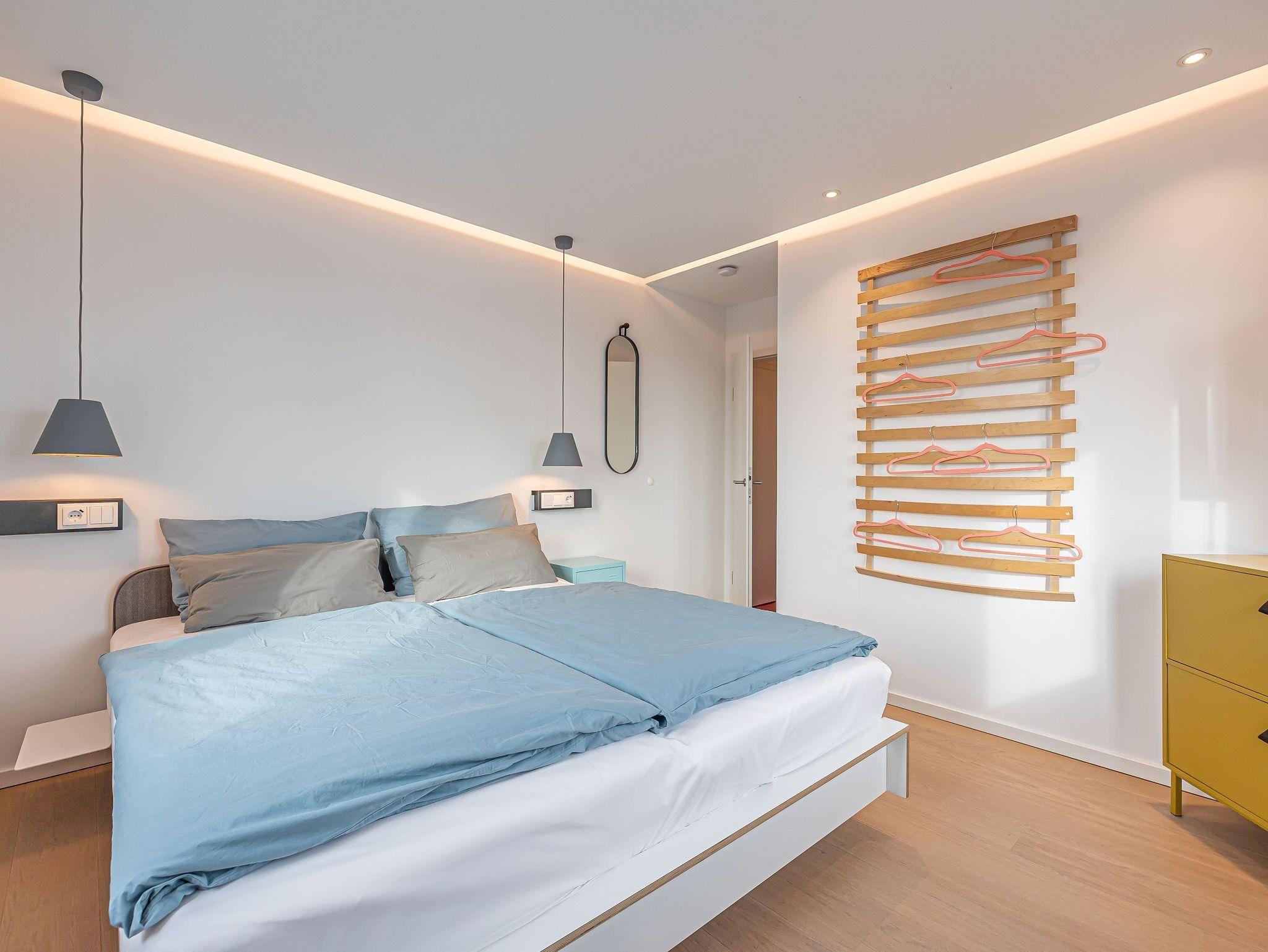 Zwei helle Schlafzimmer mit komfortablen französischen Betten und jeweils eigenem TV garantieren erholsame Nächte. Ein Gäste-WC, das zusätzlich mit einer Waschmaschine und einem Trockner ausgestattet ist, bietet Ihnen maximale Bequemlichkeit. Der private Wellnessbereich mit finnischer Sauna und bodengleicher Rainshower-Dusche sorgt für entspannte Wohlfühlmomente.