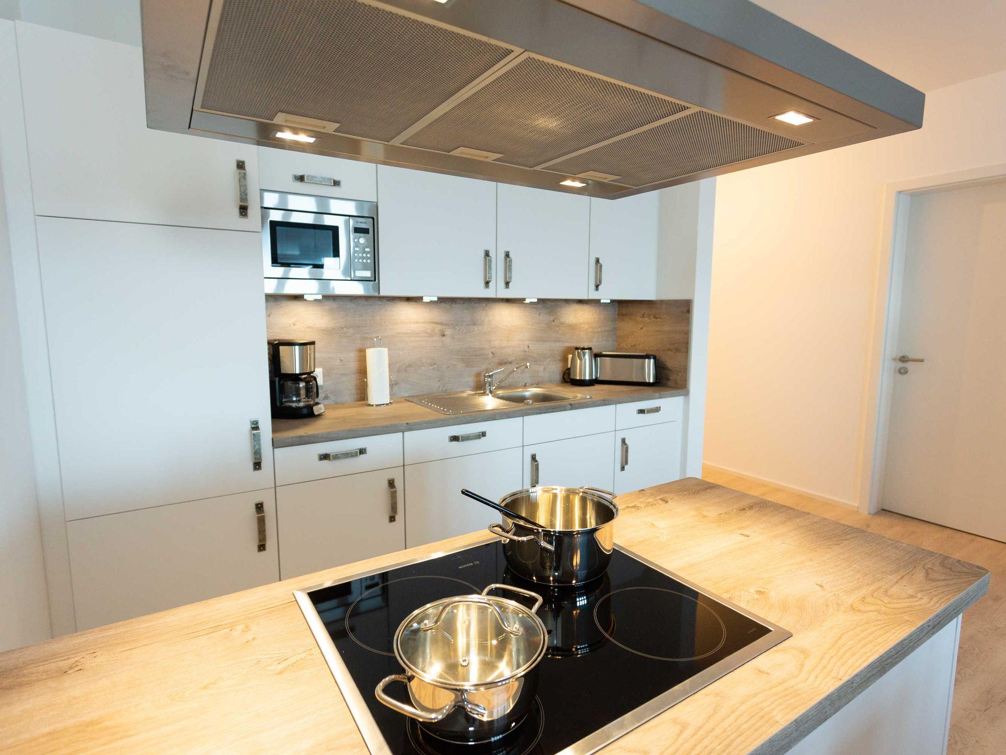 Ein geschmackvoll eingerichtetes Wohnzimmer mit einer kuscheligen Couchgarnitur bietet Ihnen einen traumhaften, direkten und wohl einzigartigen Meerblick. Es schließt sich eine Terrasse an, auf dem sich der atemberaubende Blick auf die Ostsee im Freien genießen lässt. Zu der komplett ausgestatteten Küche gehören der einladende Esstisch samt gemütlicher Bestuhlung, ein Kühlschrank mit Gefrierfach, ein Backofen, eine Mikrowelle, ein Geschirrspüler und selbstverständlich weitere Küchenutensilien. Drei gemütliche Schlafzimmer - davon eins mit Meerblick - sind mit jeweils einem Boxspring-Doppelbett eingerichtet. Des Weiteren gehören ein Duschbad sowie ein weiteres Bad mit Badewanne zur Ferienwohnung.