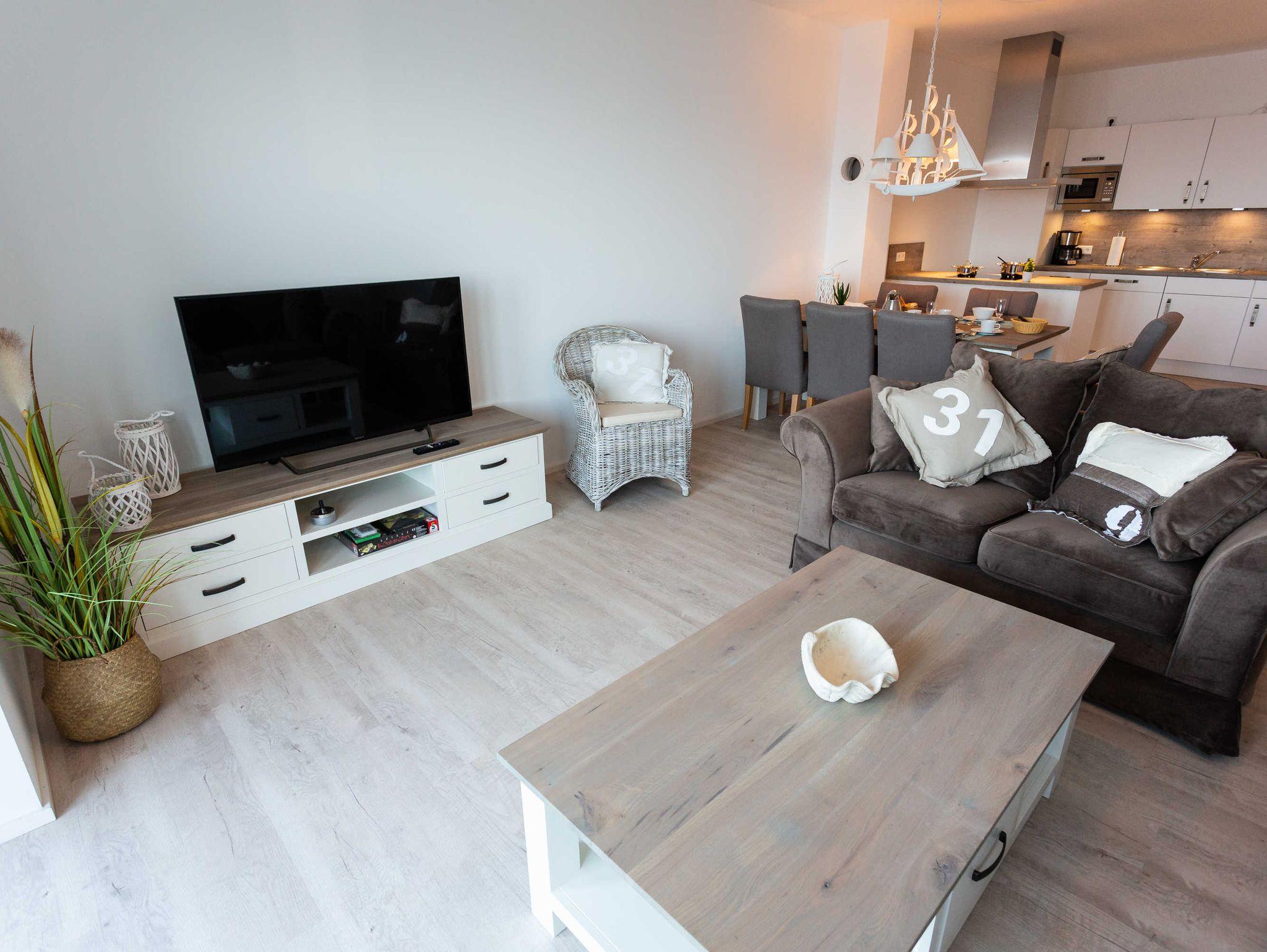 Die Komfort-Ferienwohnung Wellenbrecher befindet sich im Erdgeschoss vom Molenhuus, das nur 6 Meter (!) von der Ostsee entfernt liegt. Die Wohnung bietet Platz für bis zu 6 Personen und ist exzellent und sehr hochwertig ausgestattet.