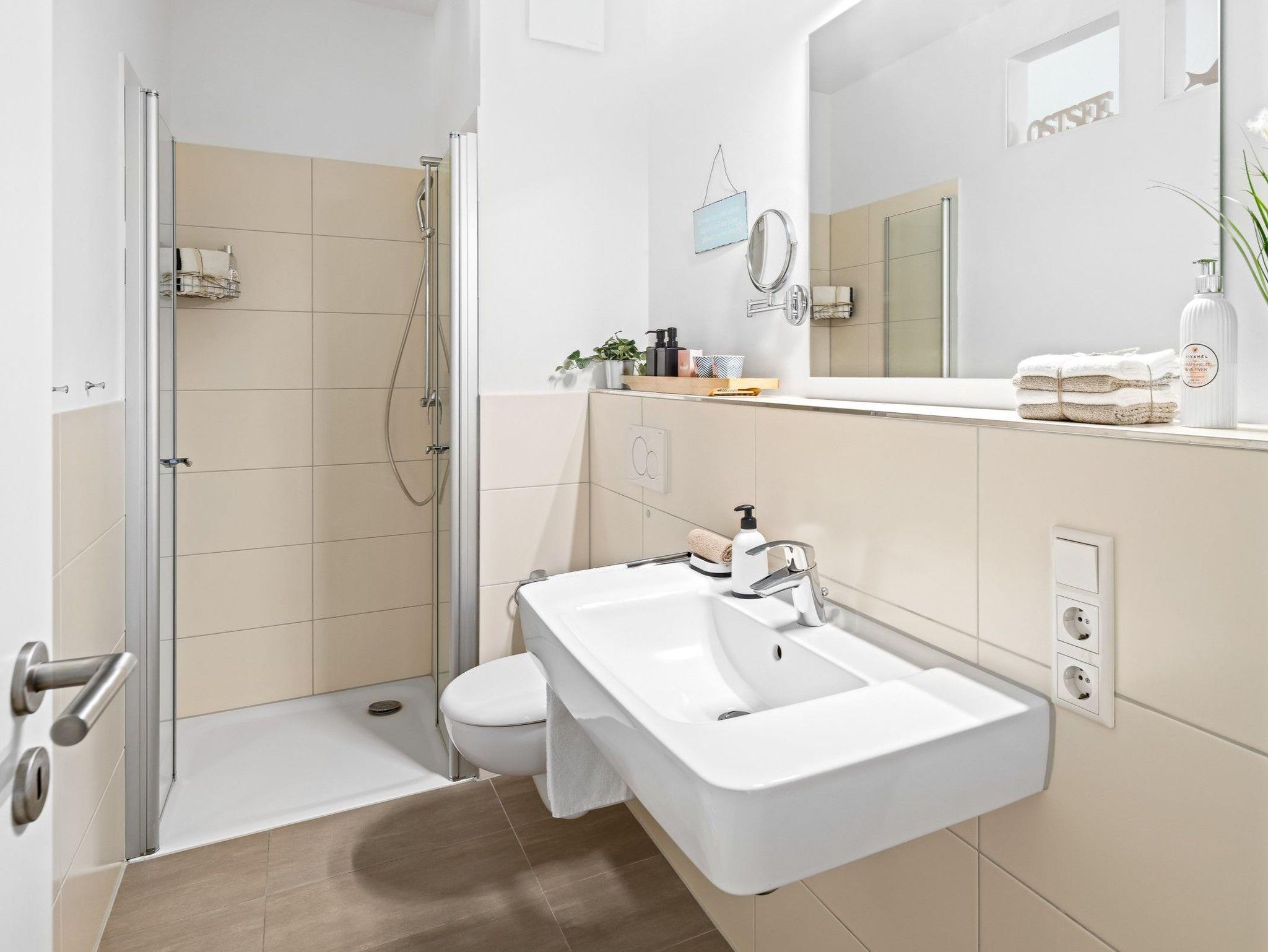 Bad mit Dusche/WC, Badradio, Föhn, Kindertritthocker