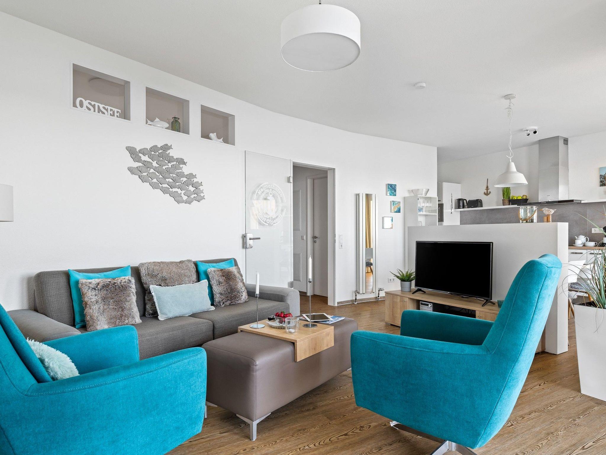 Die sorgfältig aufeinander abgestimmten Farben der Bodenbeläge, Möbel und Wohntextilien bilden eine harmonische Einheit. Für Unterhaltung sorgt ein Sat-TV mit Sky-Programmen. Einige Appartements besitzen eine private Sauna. Zu jeder Wohnung gehört ein Stellplatz entweder in der Tiefgarage oder im Außenbereich. Über einen Lift sind auch die Wohnungen in den oberen Stockwerken bequem zu erreichen. Eine Rezeption vor Ort ermöglicht ein stressfreies Ankommen. Gerne kümmert sich das Team um alle Fragen und Anliegen der Gäste und gibt Tipps zur abwechslungsreichen Urlaubsgestaltung in der Region. Für Aktivurlauber ist ein geräumiger Fahrradkeller vorhanden. Insbesondere Familien und Feriengäste, die einen längeren Aufenthalt an der Schleimündung genießen, schätzen die Möglichkeit, eine Münz-Waschmaschine sowie einen Münz-Trockner nutzen zu können.