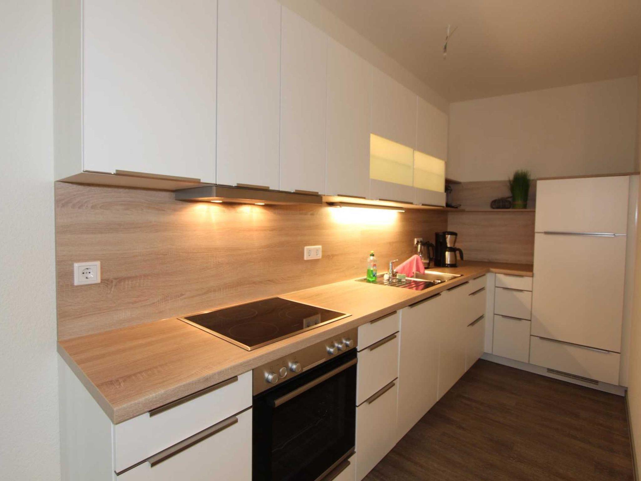optimal ausgestatteter Küchenbereich (Cerankochfeld, Backofen, Mikrowelle, Kühlschrank mit Gefrierfach, Geschirrspüler, Kaffeemaschine, Tassimo-Kaffeemaschine, Eierkocher etc.)