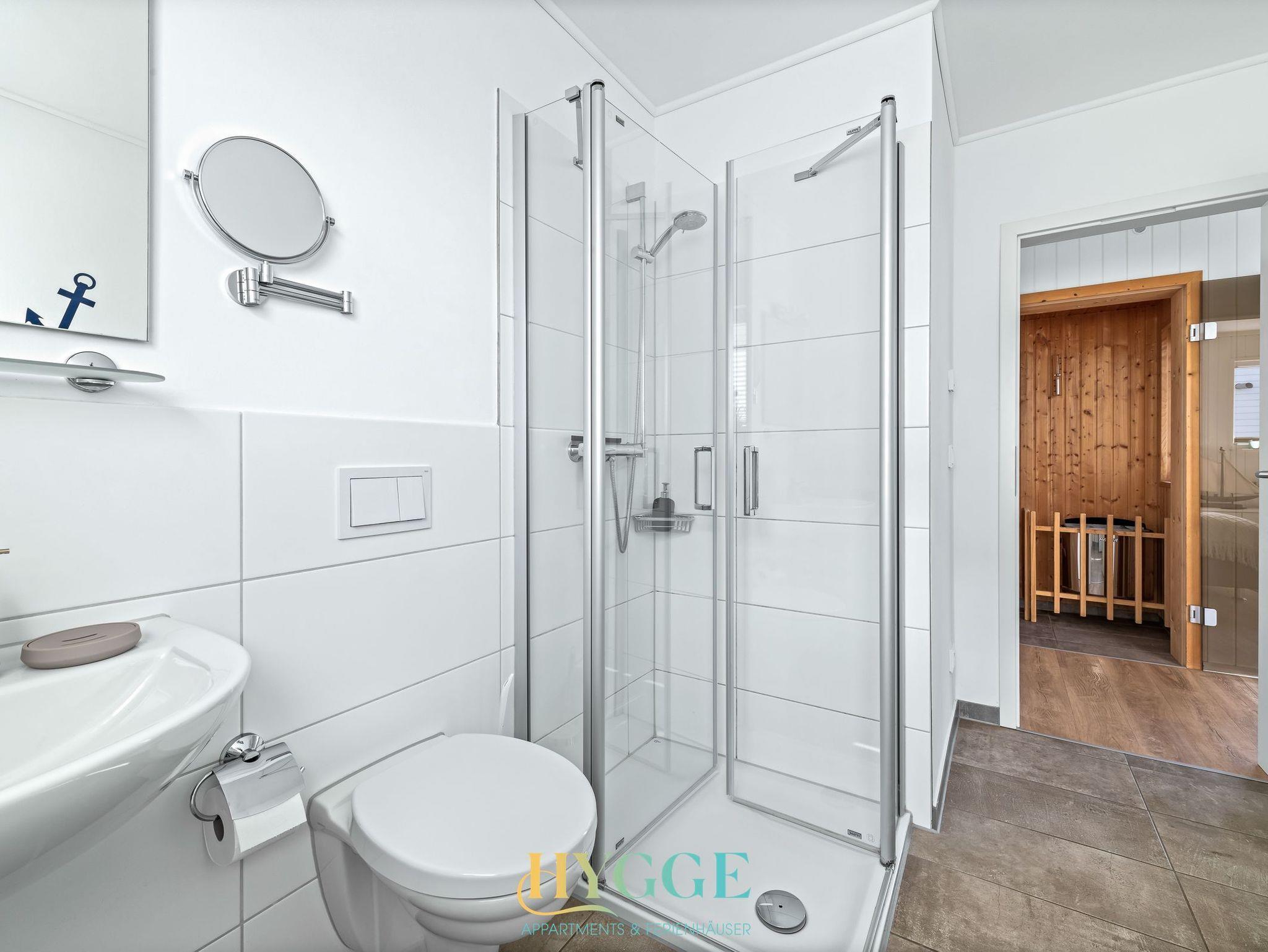 Natürlich fällt auch beim Saunieren oder Zähneputzen der Blick aufs Meer und vorbeischwimmende Schwäne. Wer mit seinem Boot anreisen möchte, ist hier genau richtig. Direkt am Haus befindet sich ein privater Liegeplatz mit Landstrom-Anschluss. Ein eigener, kostenfreier PKW Stellplatz befindet sich direkt am Steg. Das OstseeResort Olpenitz und der Segel- und Sportboothafen befinden sich in der Nähe von Kappeln.