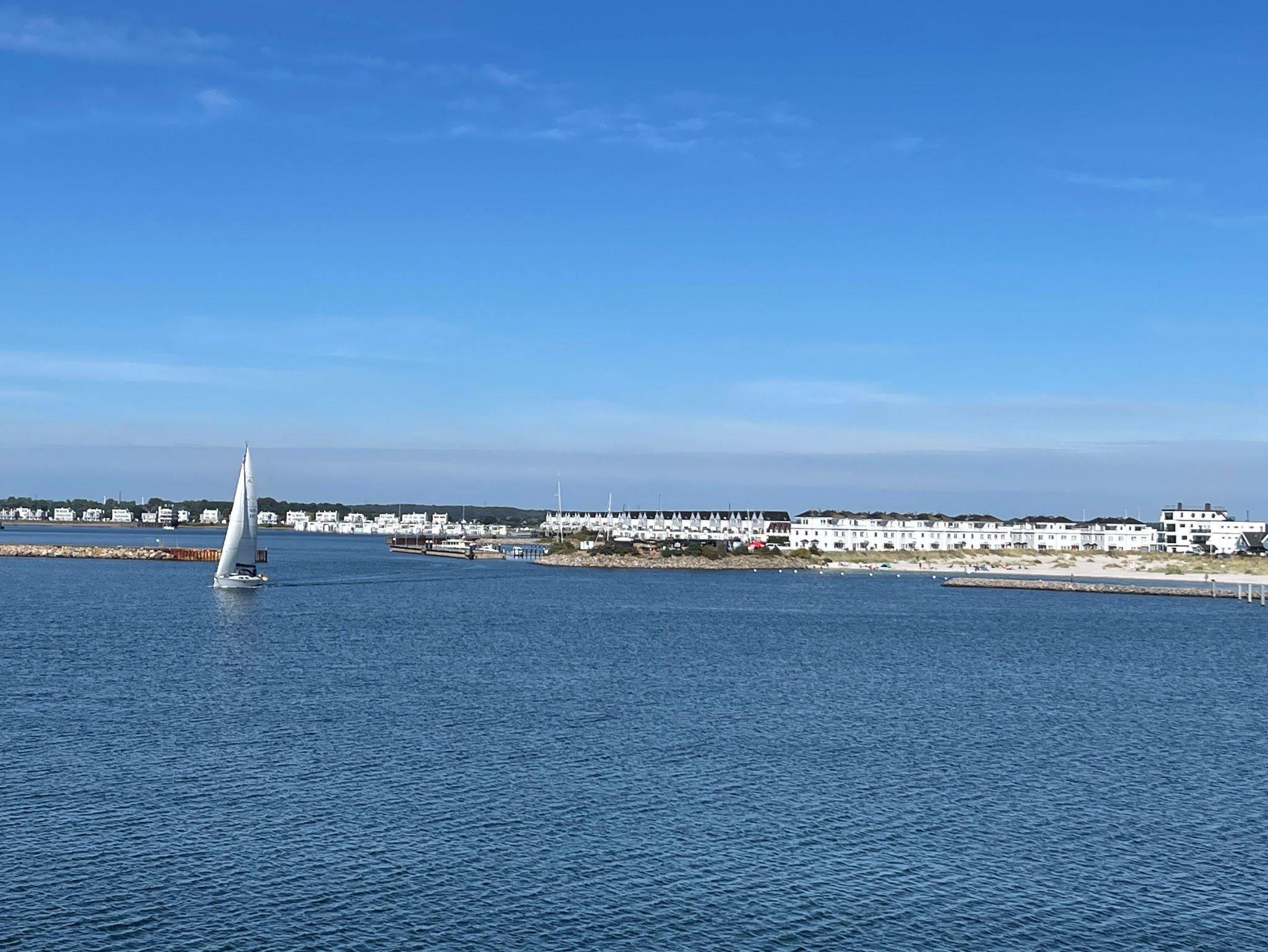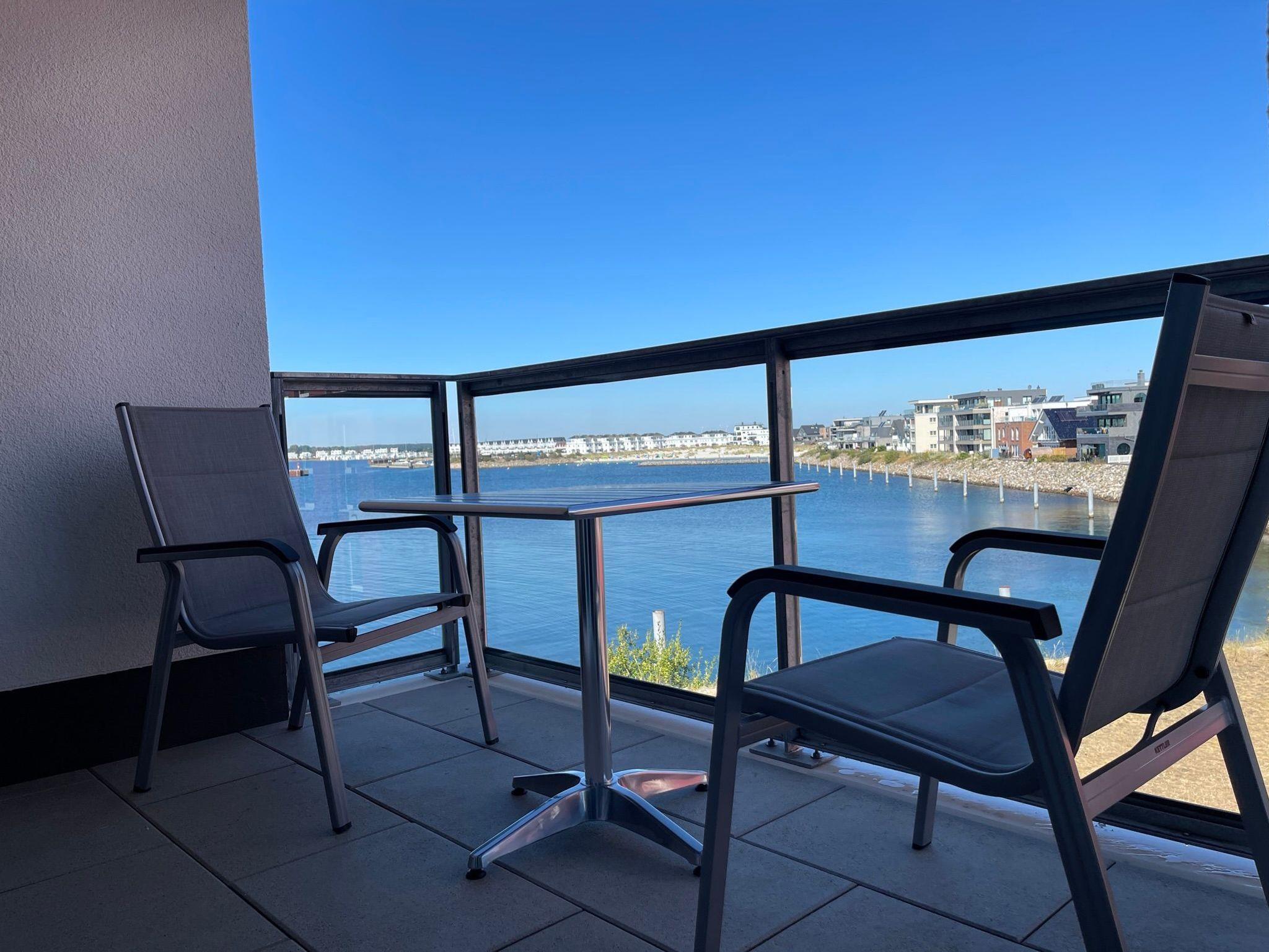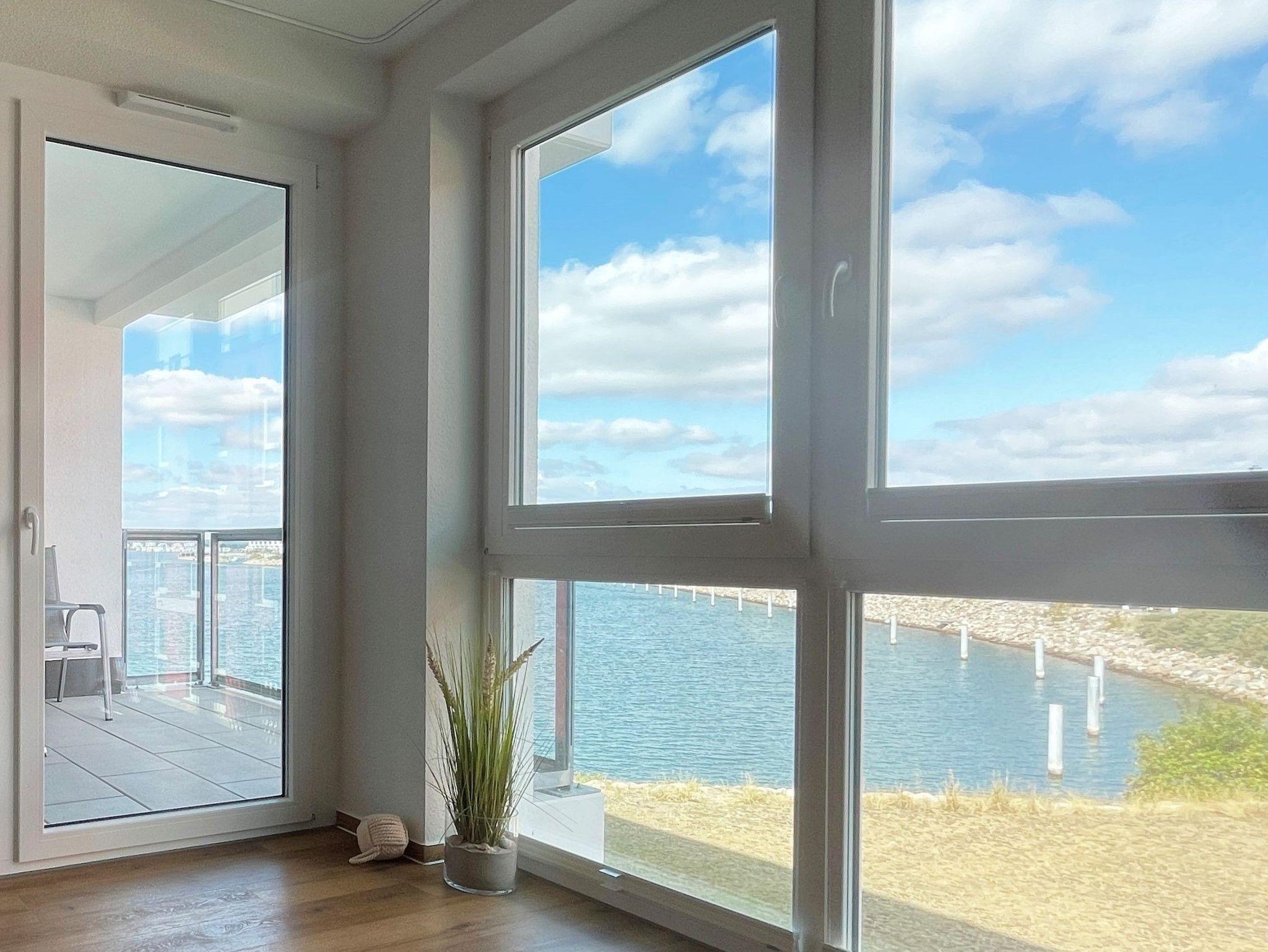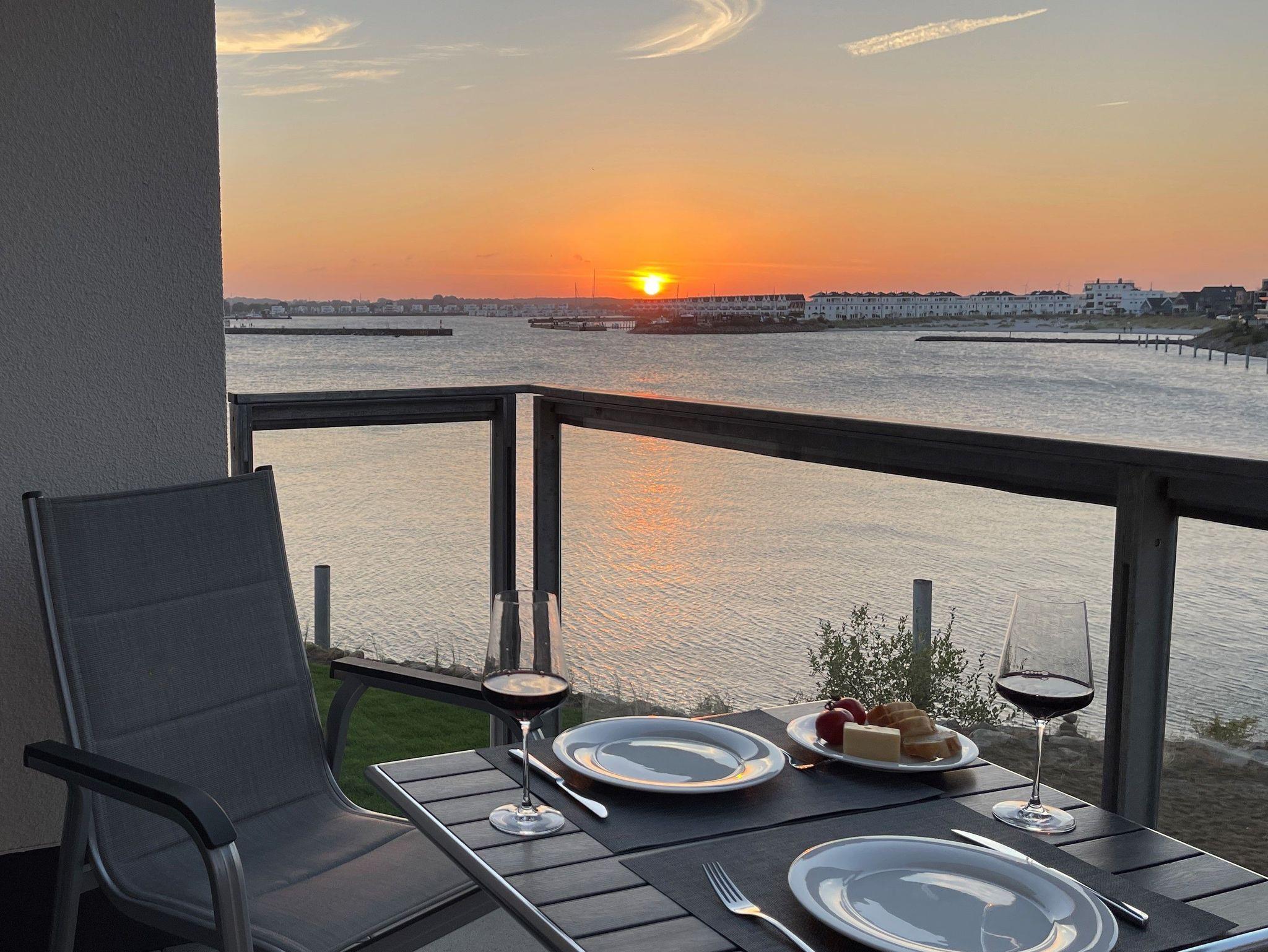 Genießen Sie am Abend den Sonnenuntergang auf dem Balkon mit traumhaften Blick über die Ostsee und beobachten Sie, wie Segelboote in den Yachthafen zurückkehren. Mit etwas Glück können Sie auch Schweinswale sehen. Ein Traum für Erholungssuchende!