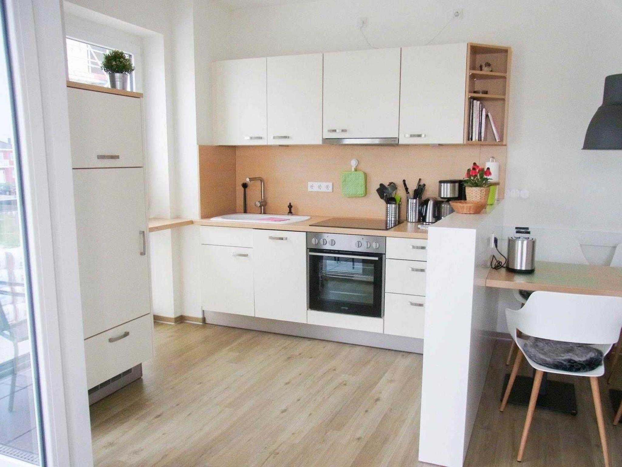 Ein komplett ausgestatteter Küchenbereich mit Geschirrspüler und Mikrowelle, Kaffeemaschine mit 1x4 und einem Essplatz für 4Personen vervollständigen die hochwertige Einrichtung.