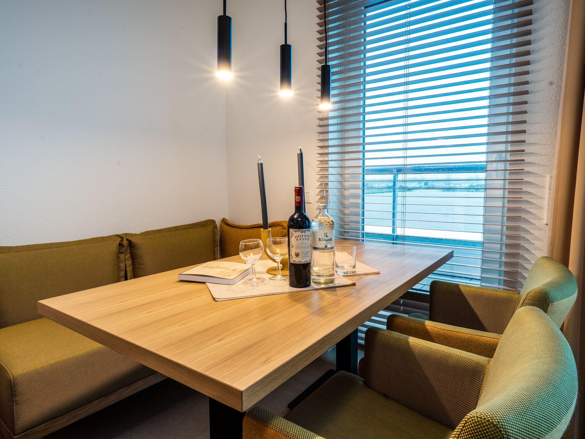 Modernes 2-Zimmer-Appartement in Residenz Bollwark mit Dachterrasse und Seeblick, ideal für Familien und Paare am Wasser.