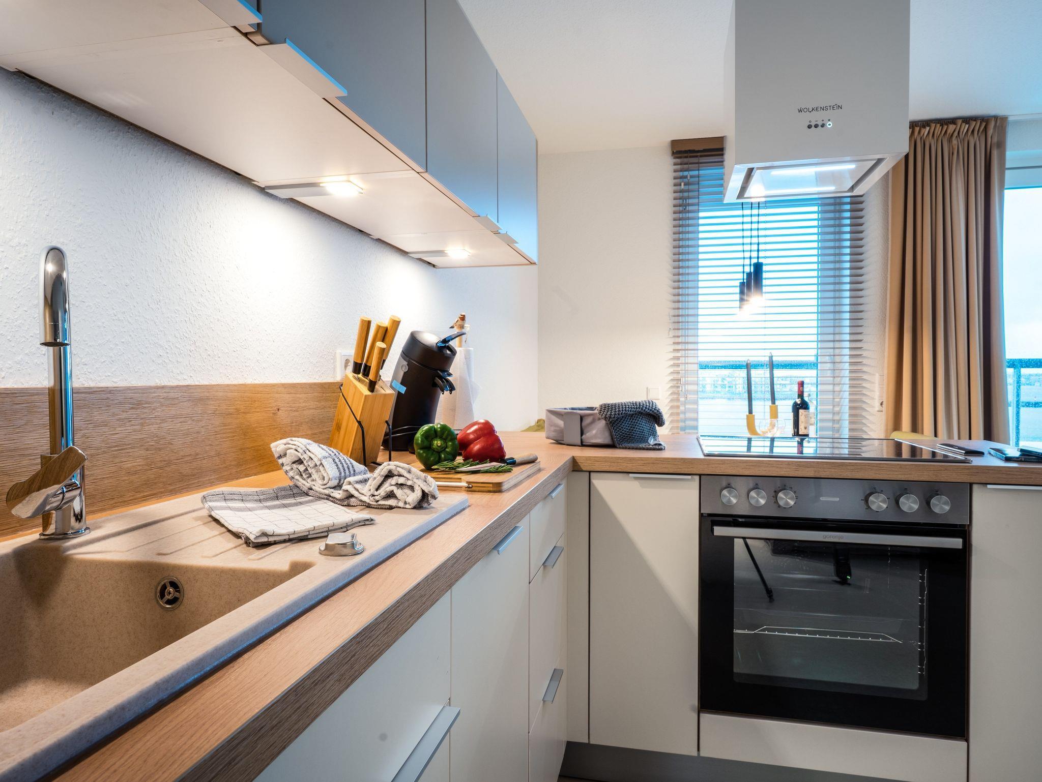 Die Residenz Bollwark beherbergt 26 hervorragend ausgestattete Wohneinheiten. In den Zwei- und Dreizimmerappartements fühlen sich erholungsuchende Paare ebenso wohl wie Familien mit Kindern, die erlebnisreiche Tage am Meer verbringen möchten. Alle Wohnungen verfügen über einen privaten Balkon, eine Terrasse oder Loggia: Dort lassen die Feriengäste den Tag nah dran am Geschehen auf dem Wasser entspannt mit einer Tasse Kaffee beginnen oder abends bei einem Glas Rotwein Revue passieren. Für das Interieur der hellen und großzügig geschnittenen Wohneinheiten waren erfahrene Inneneinrichtungsspezialisten verantwortlich.