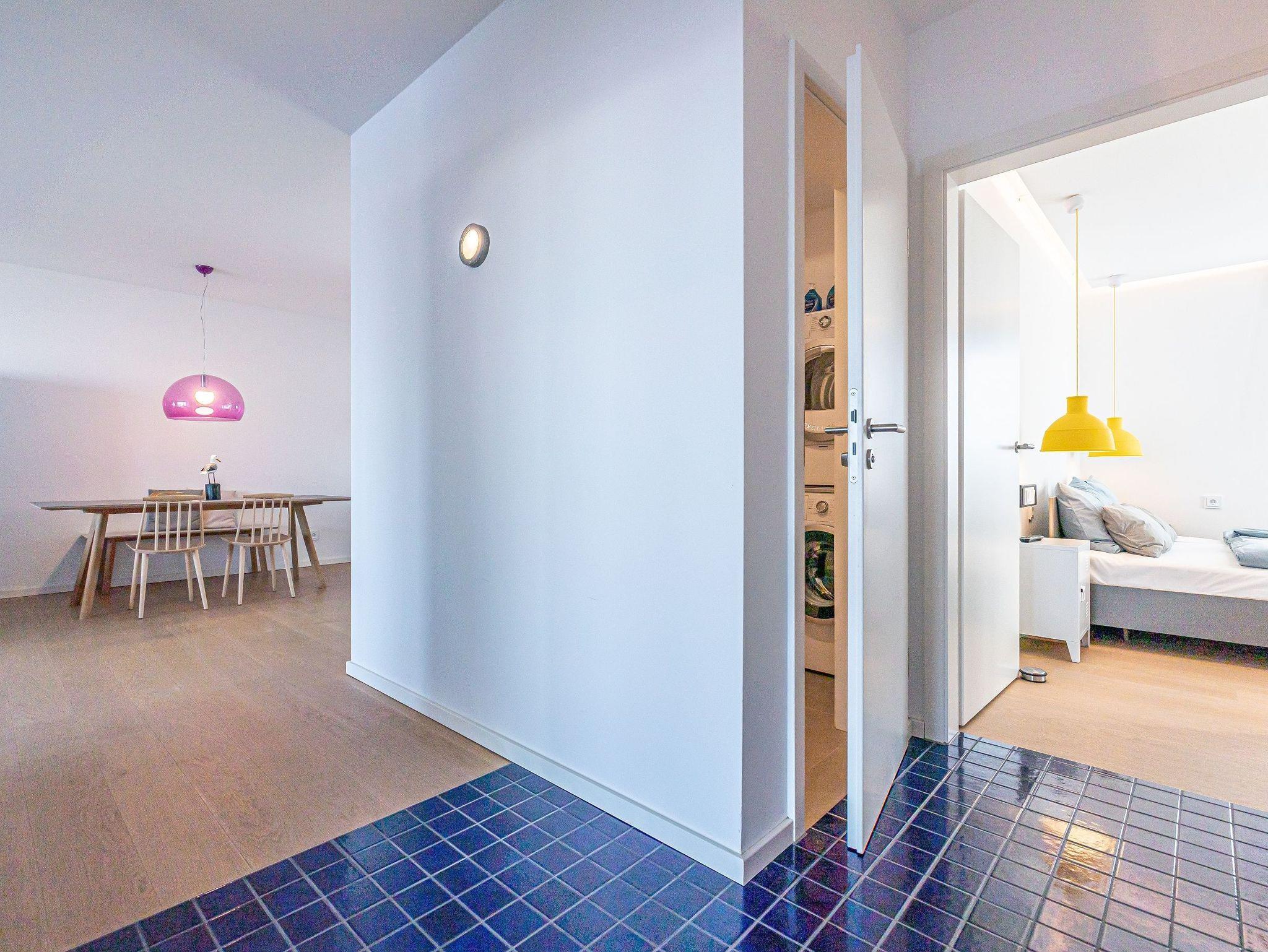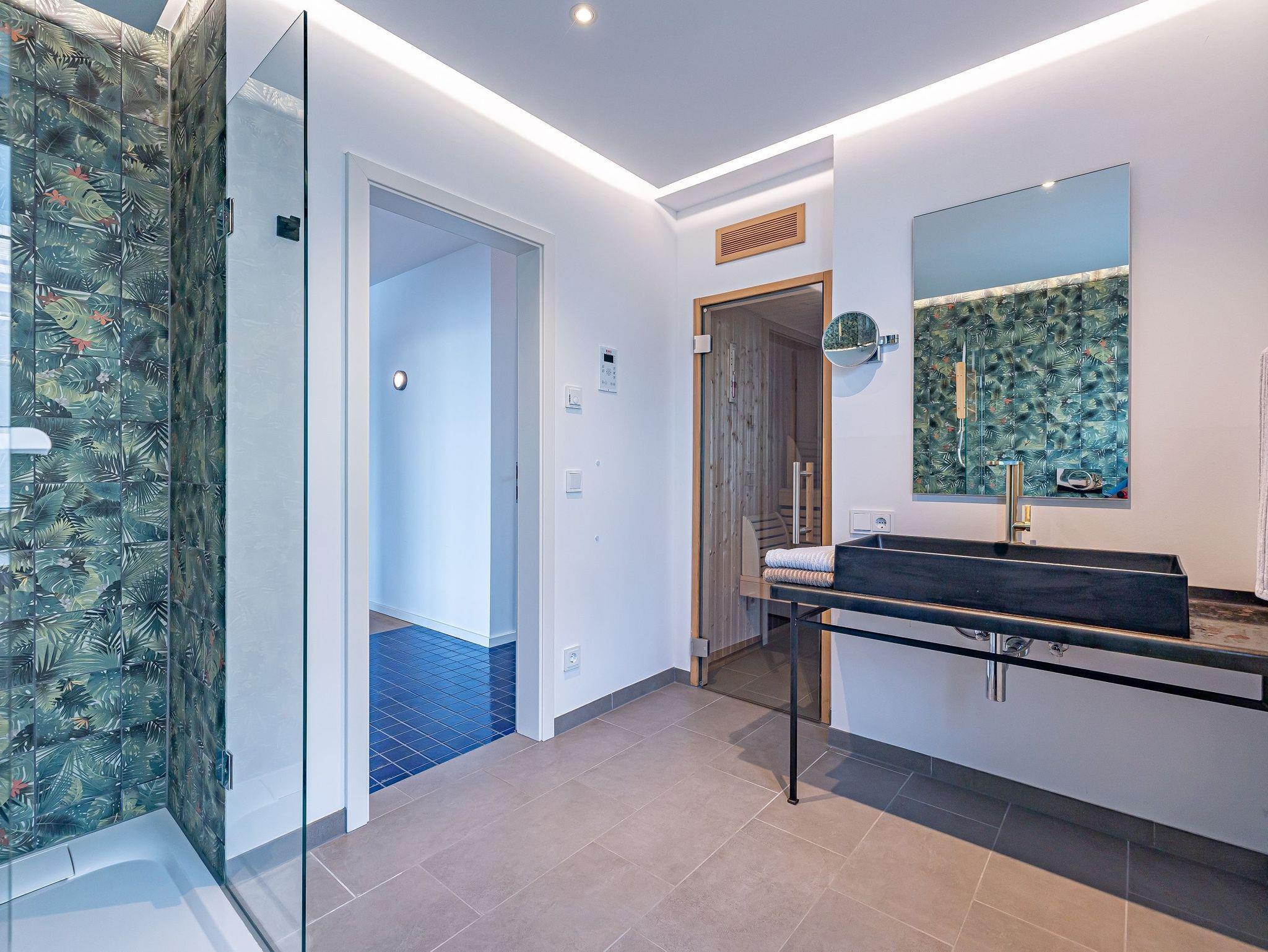 Zwei lichtdurchflutete Schlafzimmer mit komfortablen französischen Betten und eigenen Fernsehern sorgen für erholsamen Schlaf. Für zusätzlichen Komfort stehen Ihnen eine Waschmaschine und ein Trockner zur Verfügung, die dezent in einem separaten Bereich untergebracht sind. Der private Wellnessbereich mit finnischer Sauna und einer bodengleichen Rainshower-Dusche verwöhnt Sie mit purer Entspannung. Zusätzlich befindet sich noch ein Gäste-WC in Ihrer Ferienwohnung.