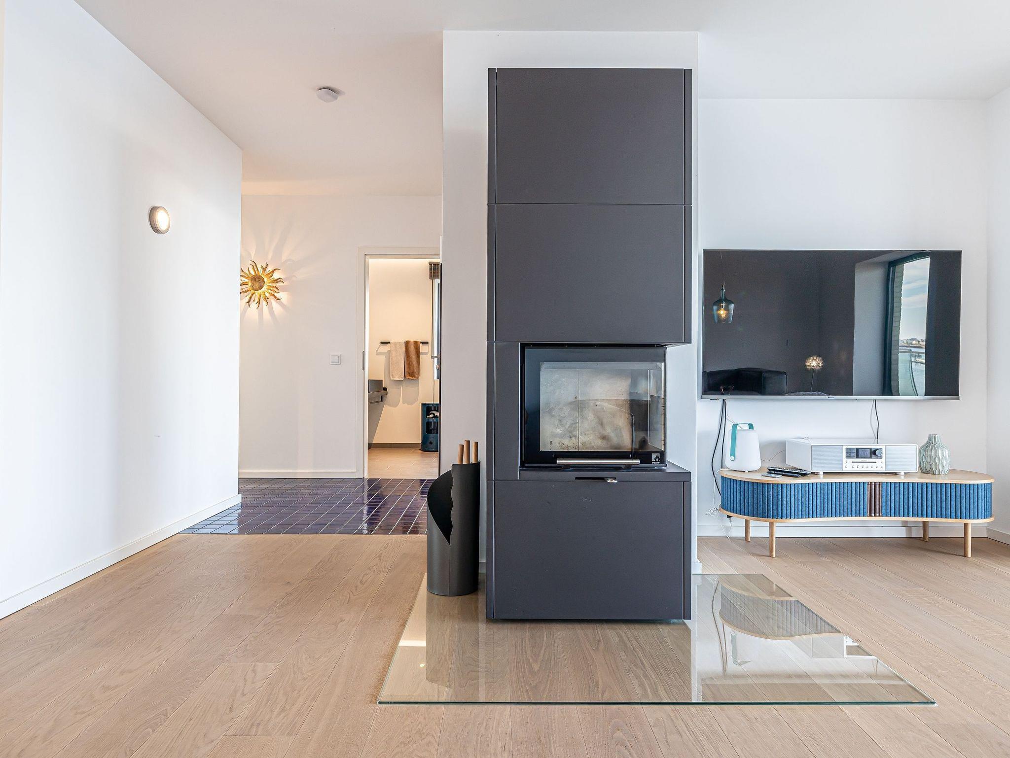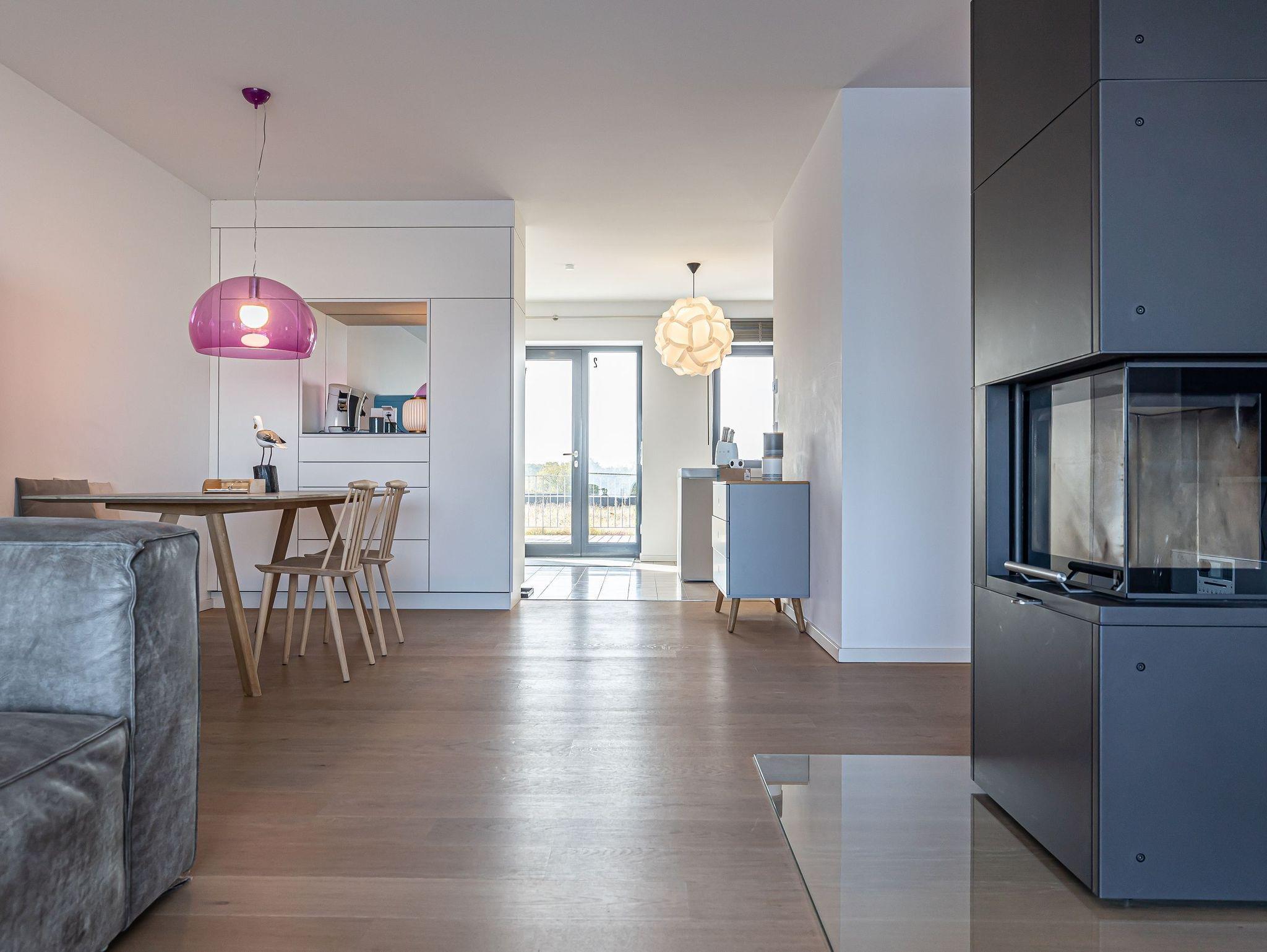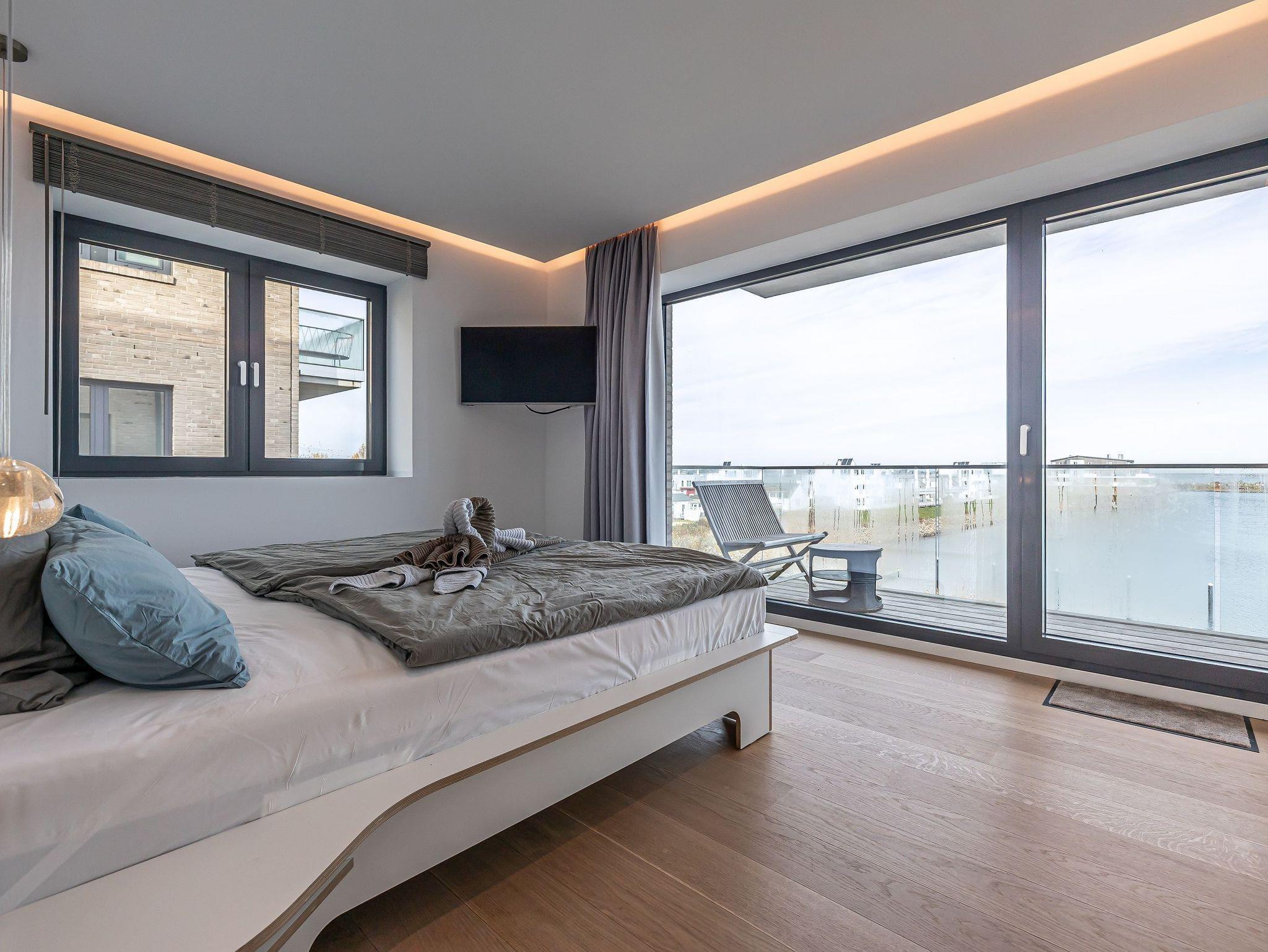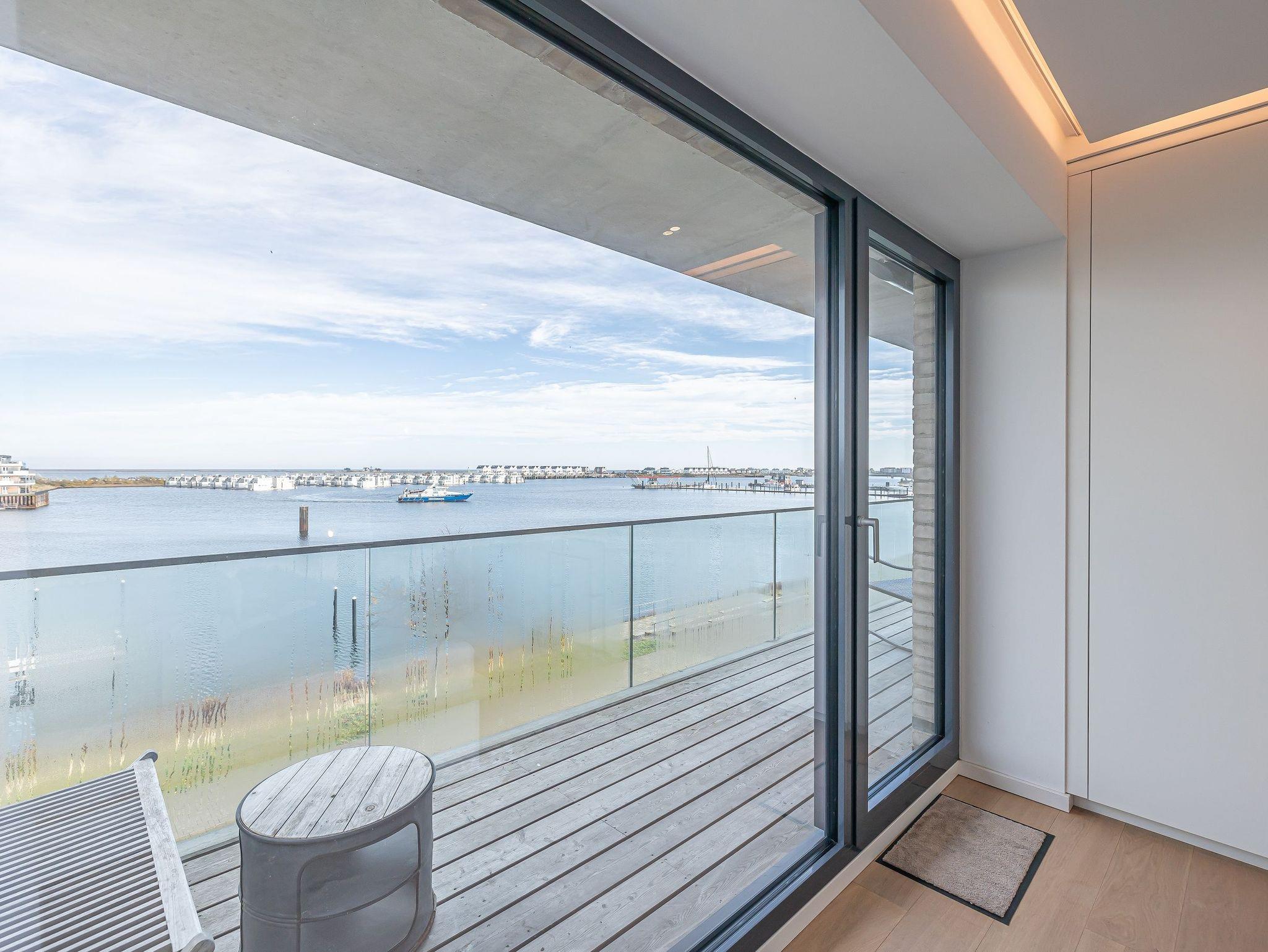 Stilvolle Ferienwohnung mit Hafenblick, Sauna, Kamin und großer Dachterrasse im Ostseeresort Olpenitz.