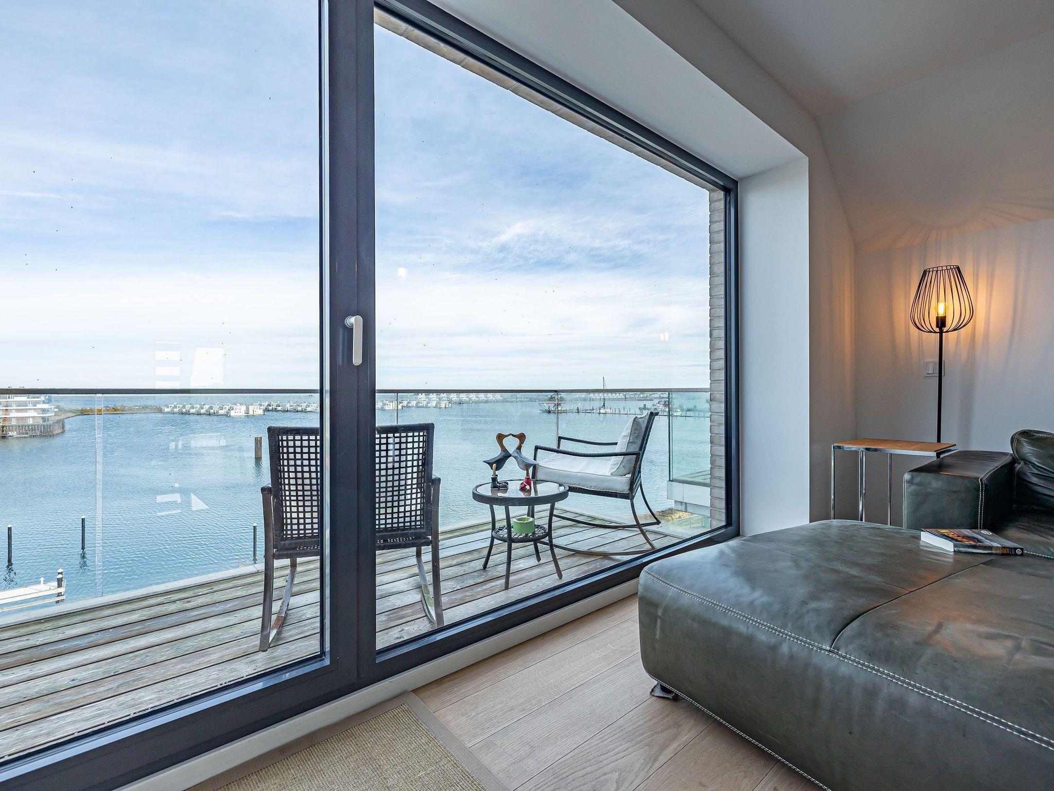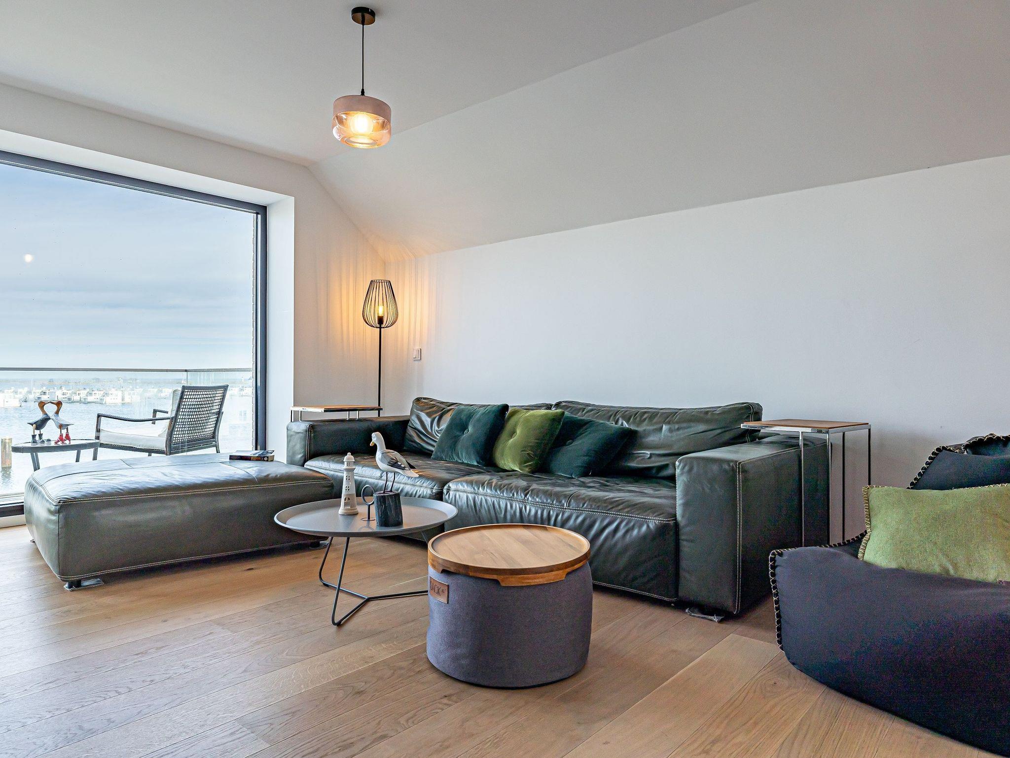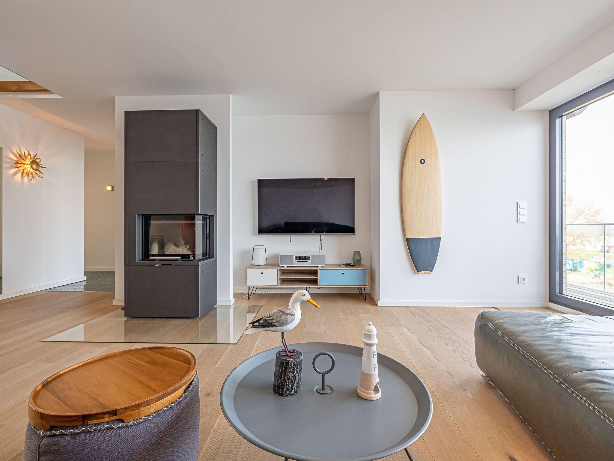Moderne Ferienwohnung mit Panoramablick, Kamin, Sauna und großer Dachterrasse im Ostseeresort Olpenitz.