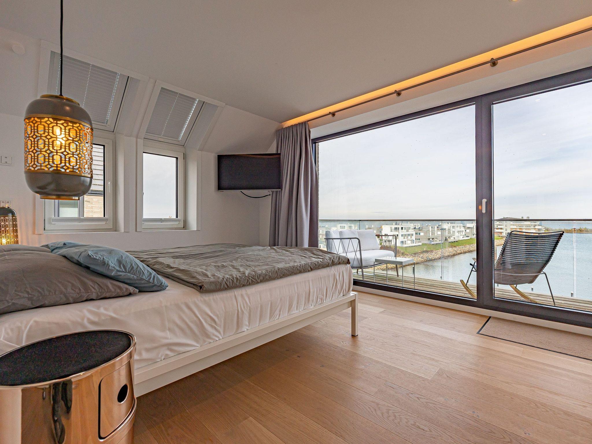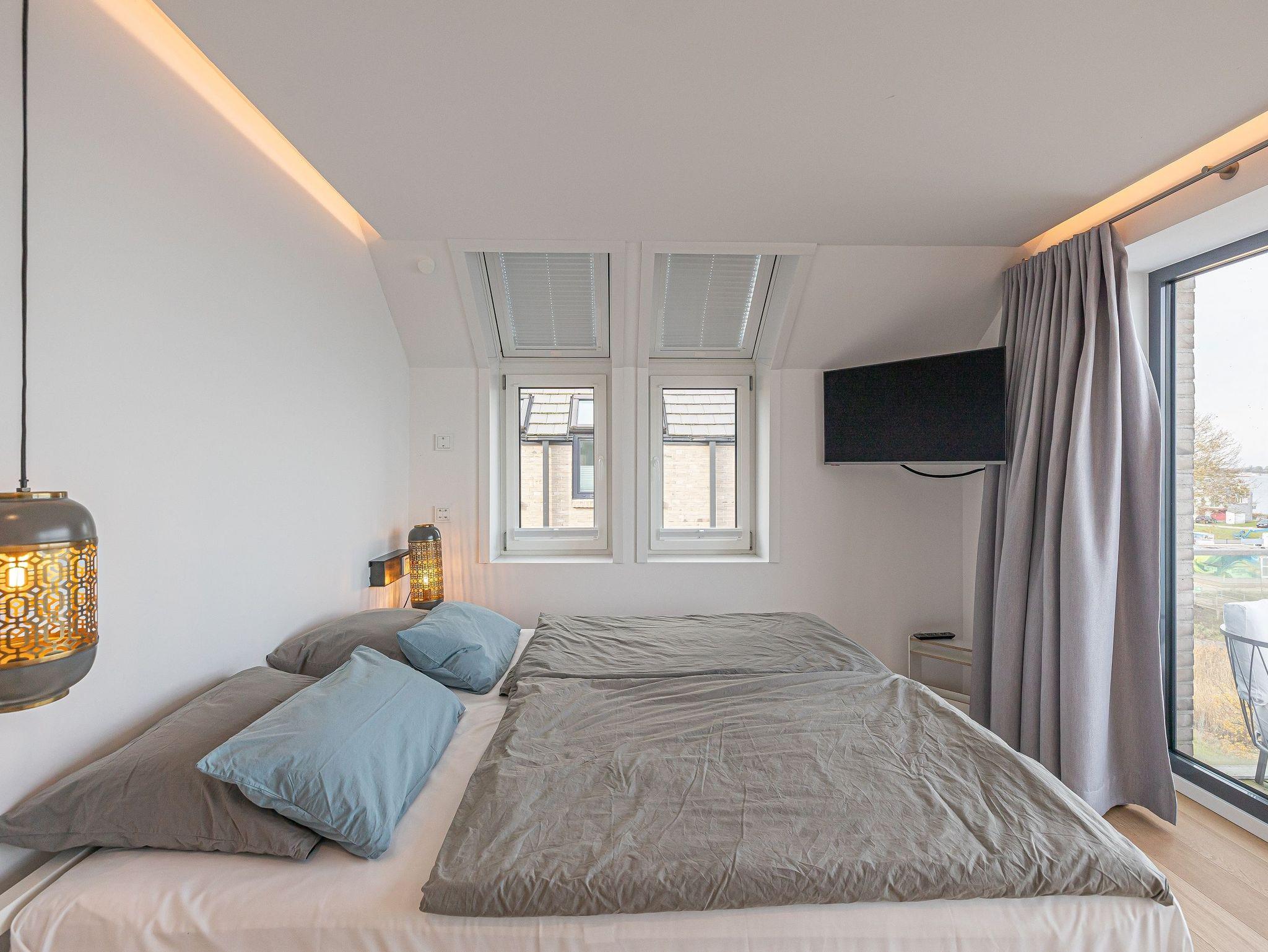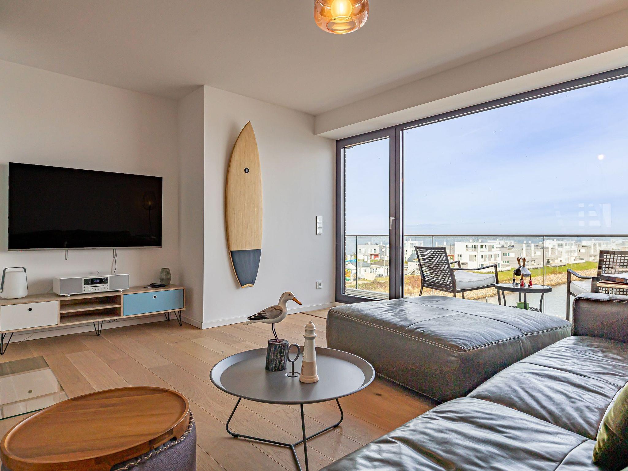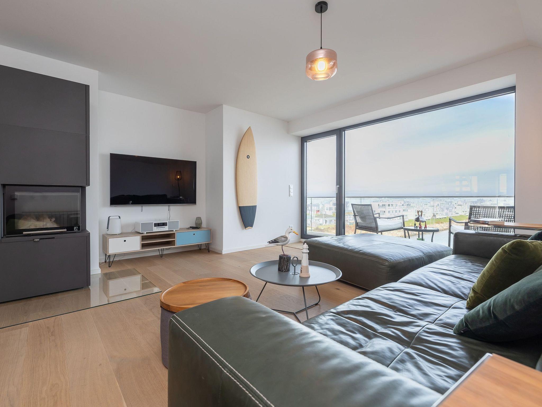 Moderne Ferienwohnung mit Panoramablick, Kamin, Sauna und großer Dachterrasse im Ostseeresort Olpenitz.