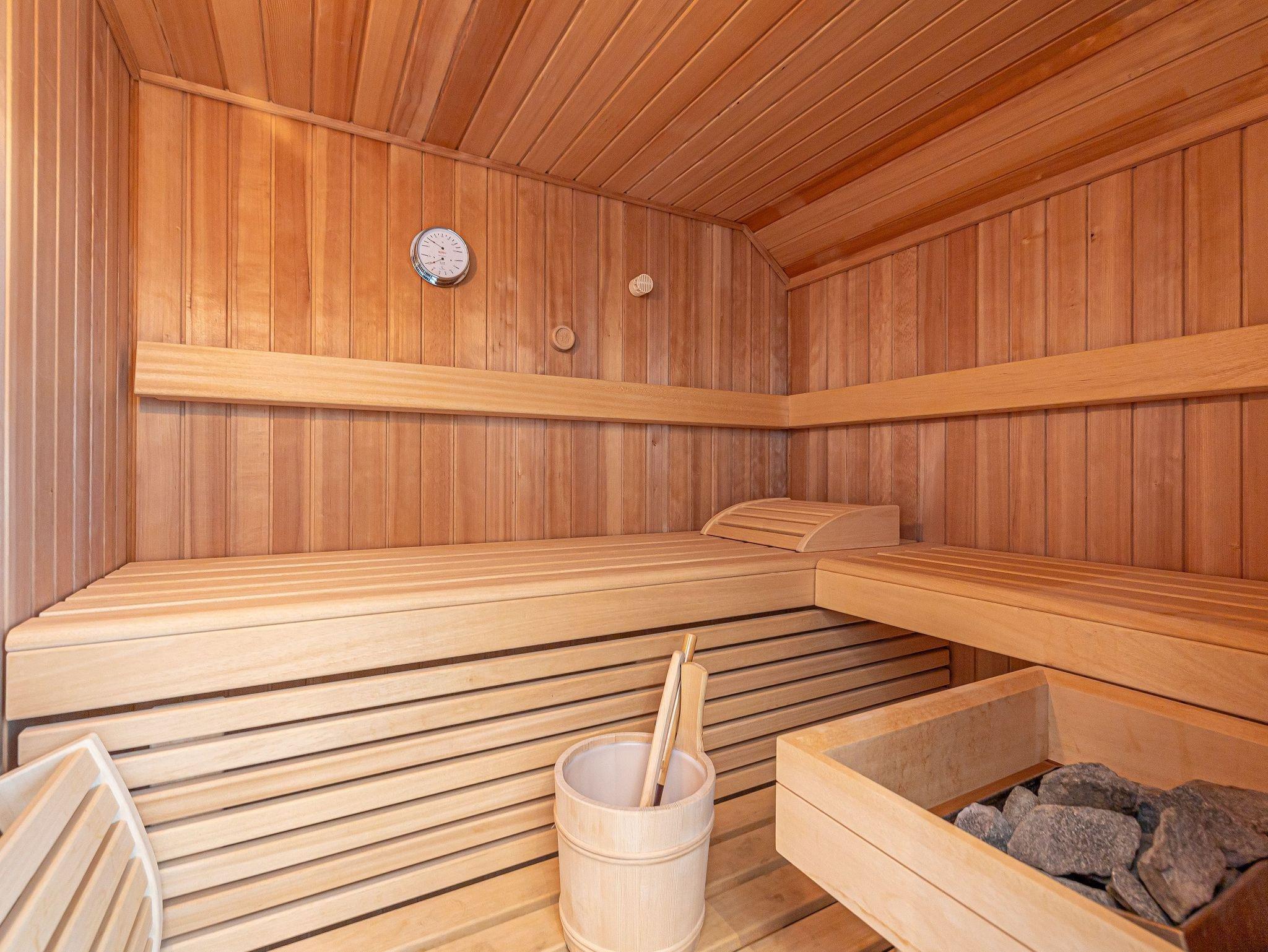 Zwei helle Schlafzimmer mit komfortablen französischen Betten und jeweils eigenem Fernseher garantieren erholsame Nächte. Ein separates Gäste-WC, ausgestattet mit Waschmaschine und Trockner, rundet die Annehmlichkeiten ab. Für pure Entspannung sorgt Ihr privater Wellnessbereich mit finnischer Sauna und bodengleicher Rainshower-Dusche.