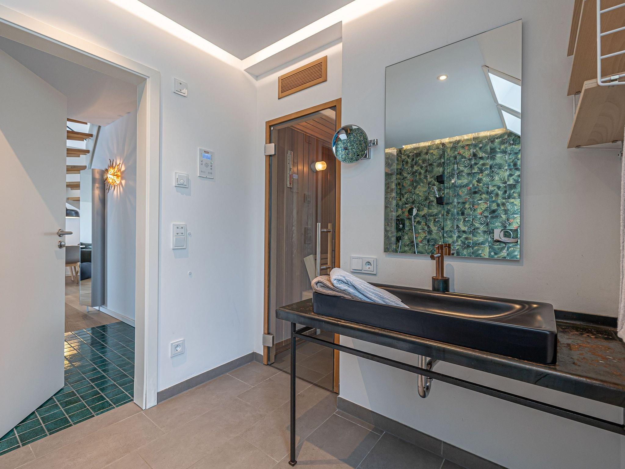 Edle Echtholzböden und Natursteinfliesen kombiniert mit Fußbodenheizung schaffen eine behagliche und moderne Atmosphäre. Ein hochwertiges Stereo-Musiksystem, das Sie einfach online oder per Bluetooth bedienen können, sorgt für erstklassigen Klanggenuss. Bringen Sie Ihre eigene Spielekonsole mit? Kein Problem anschließen und loslegen!