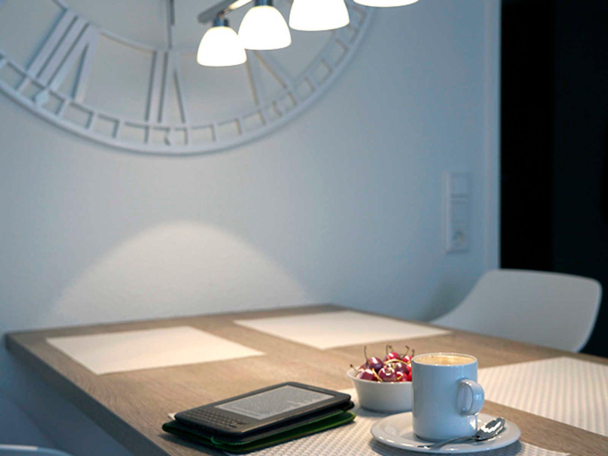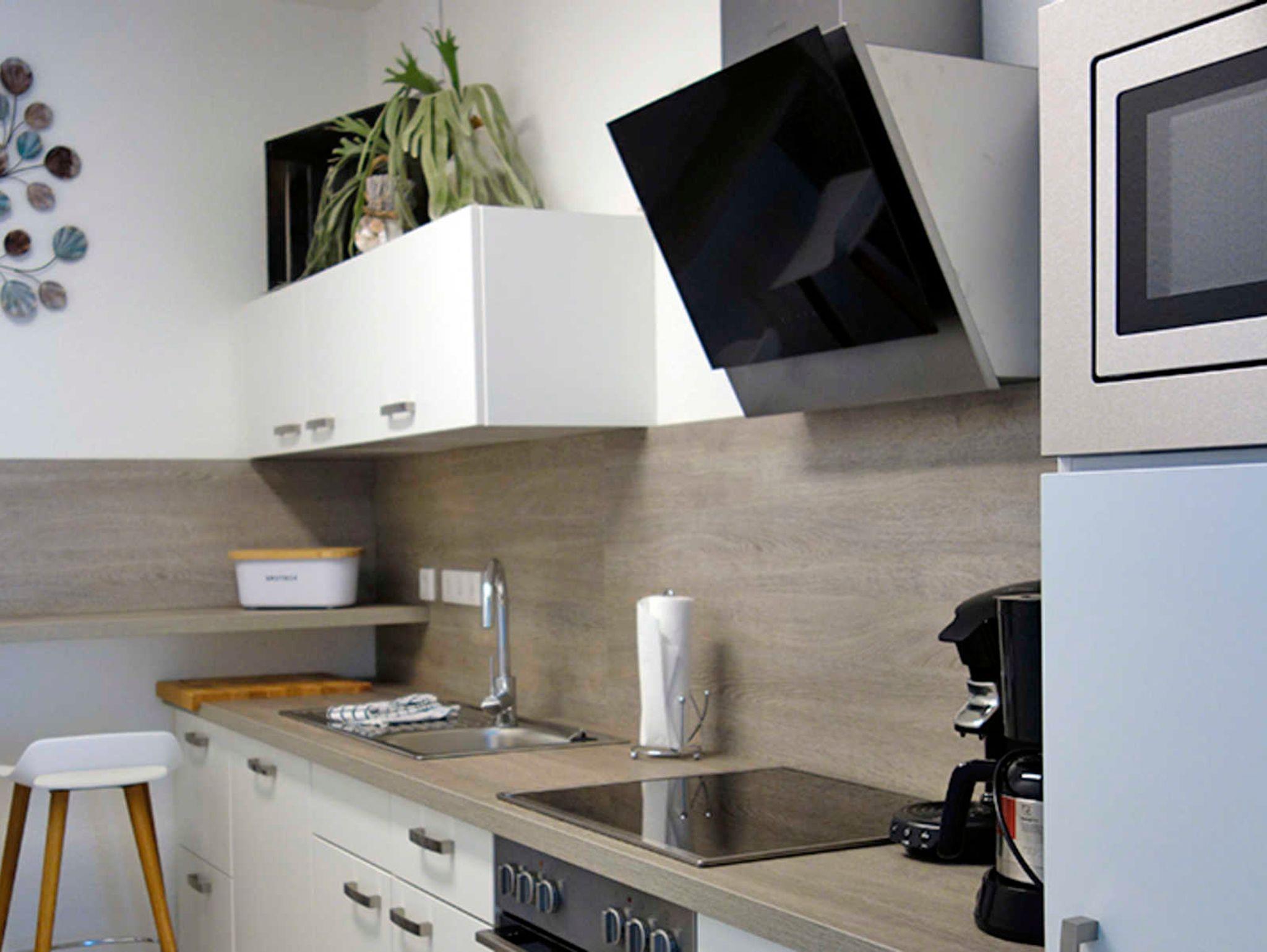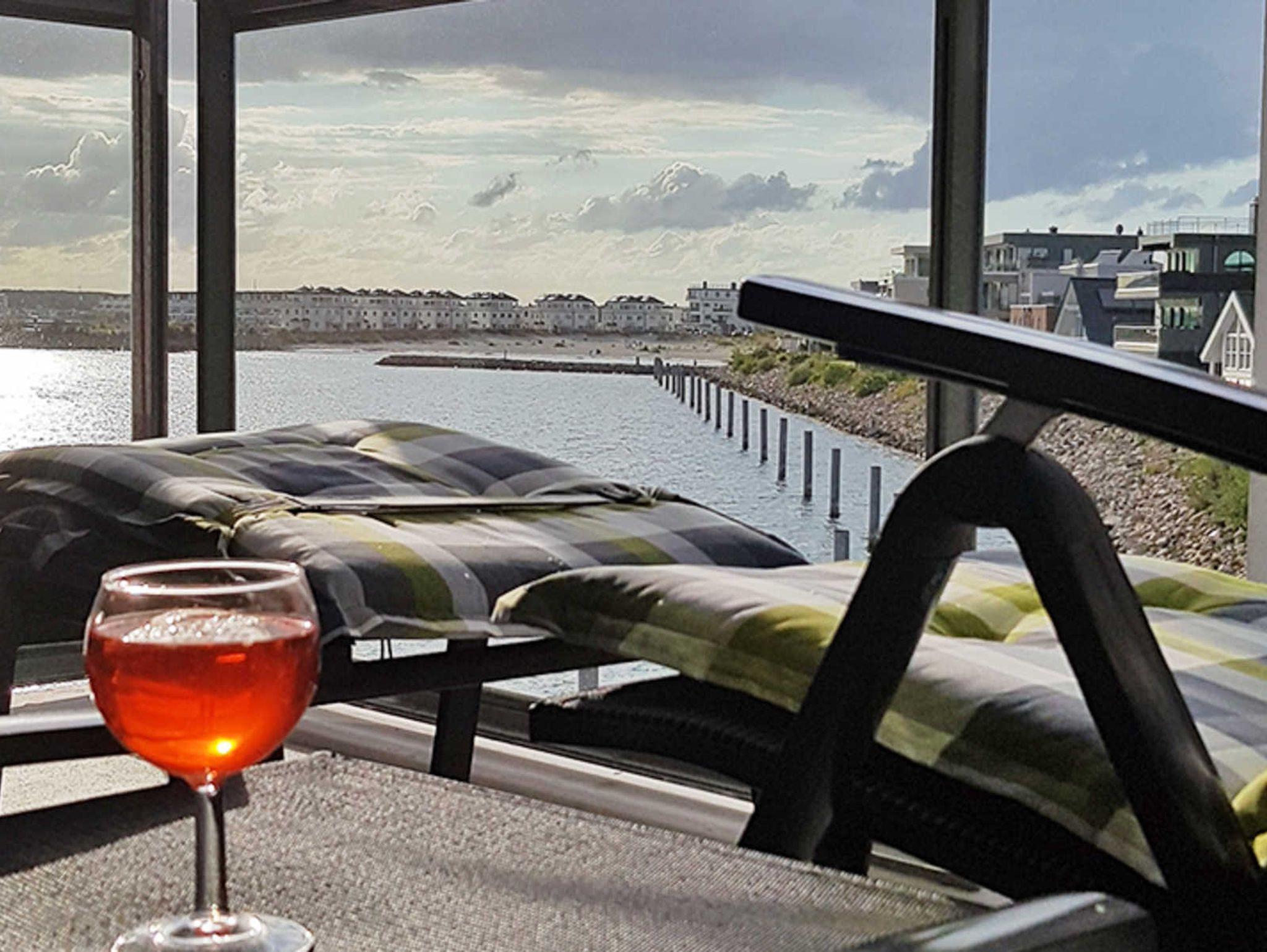 Sie wohnen in einem modernen 2-Zimmer-Appartement für bis zu 4 Personen. Die Wohnung besteht aus einem Schlafzimmer mit Doppelbett, einem hellen Wohnraum mit Doppelbett-Couch und seperatem Essplatz sowie voll ausgestattetem Küchenbereich, Loggia mit Blick auf's Wasser und Bad mit Dusche und WC.