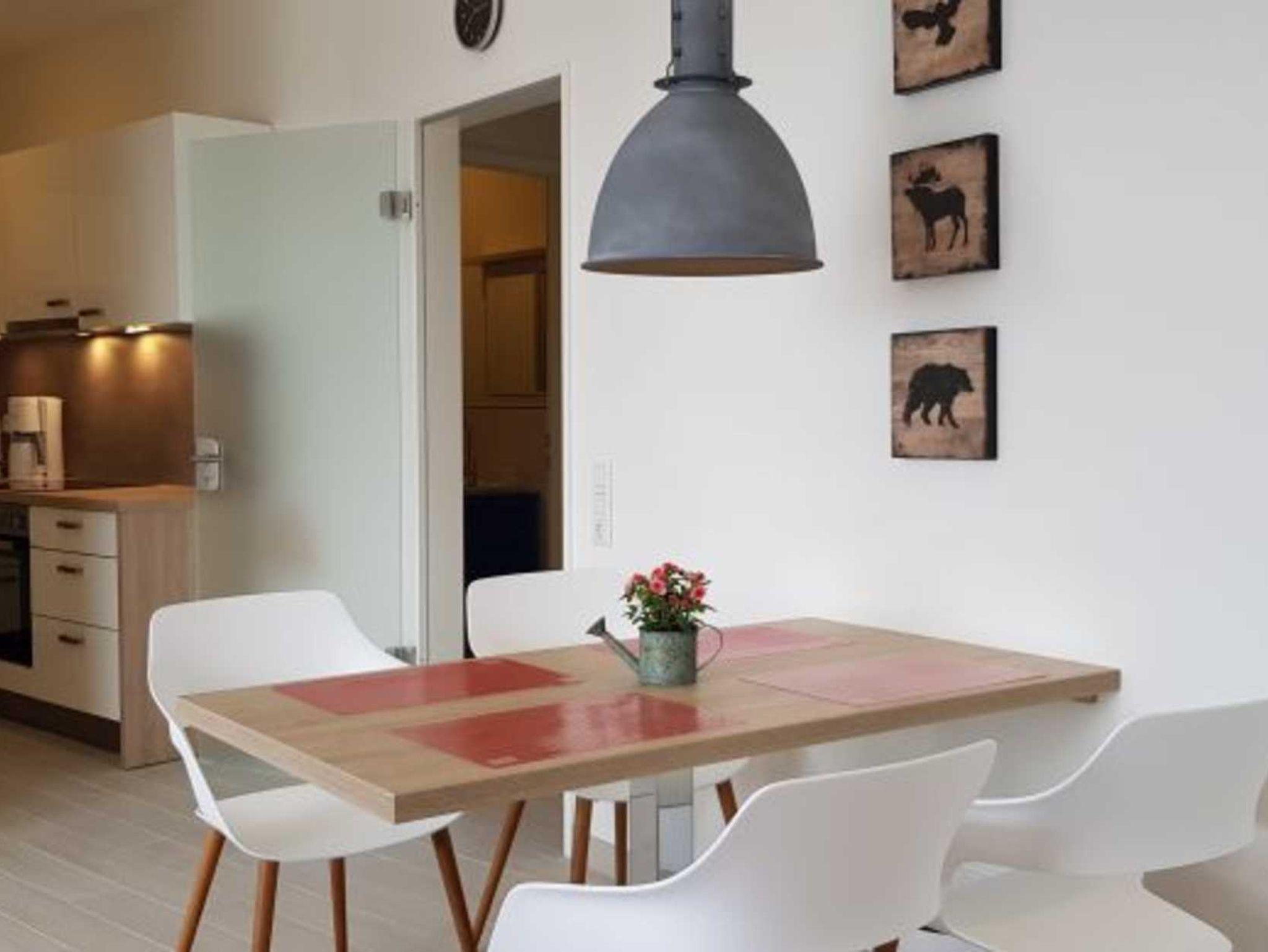 2-Zimmer-Ferienwohnung für bis zu 4 Personen, 63 m², Wohn-/Schlafraum mit Doppelbettcouch und SAT-TV, separater Essplatz, voll ausgestatteter Küchenbereich mit Geschirrspüler, Bad mit Dusche/WC, ein Schlafzimmer mit Doppelbett und SAT-TV, Balkon, WLAN.