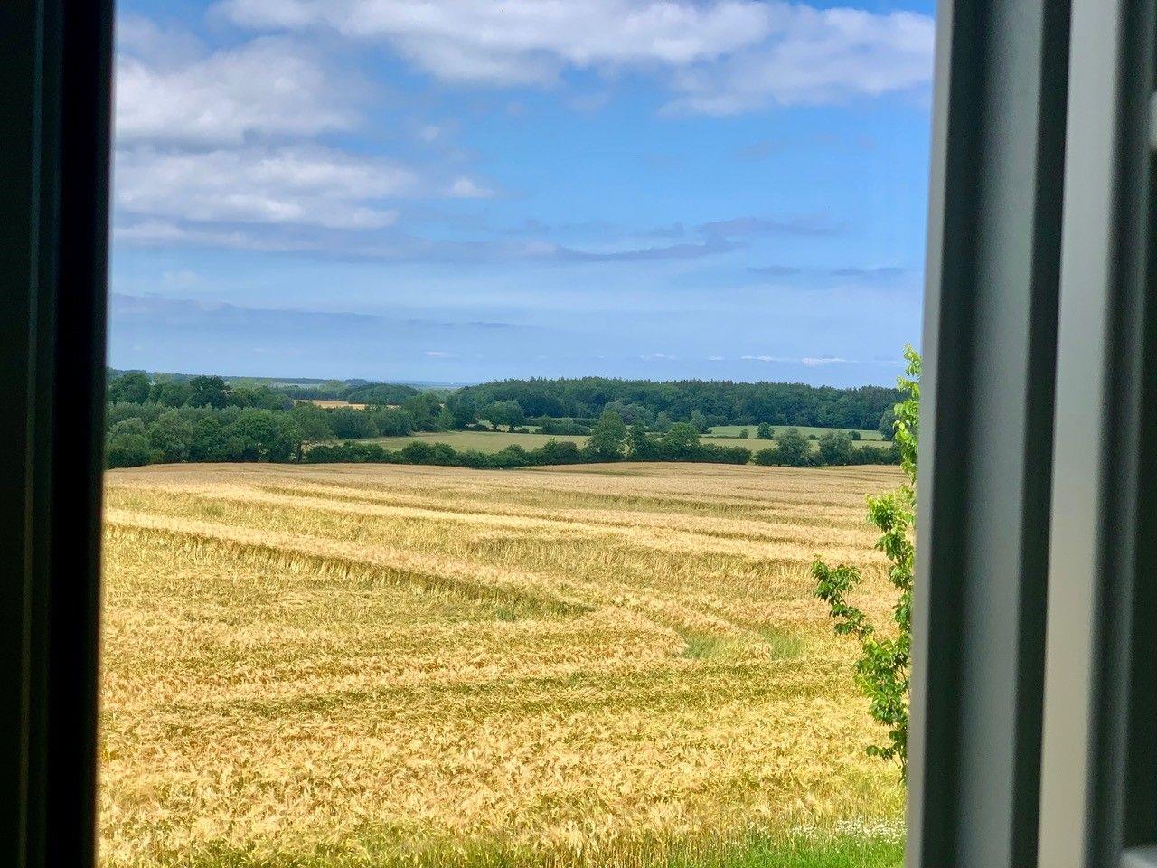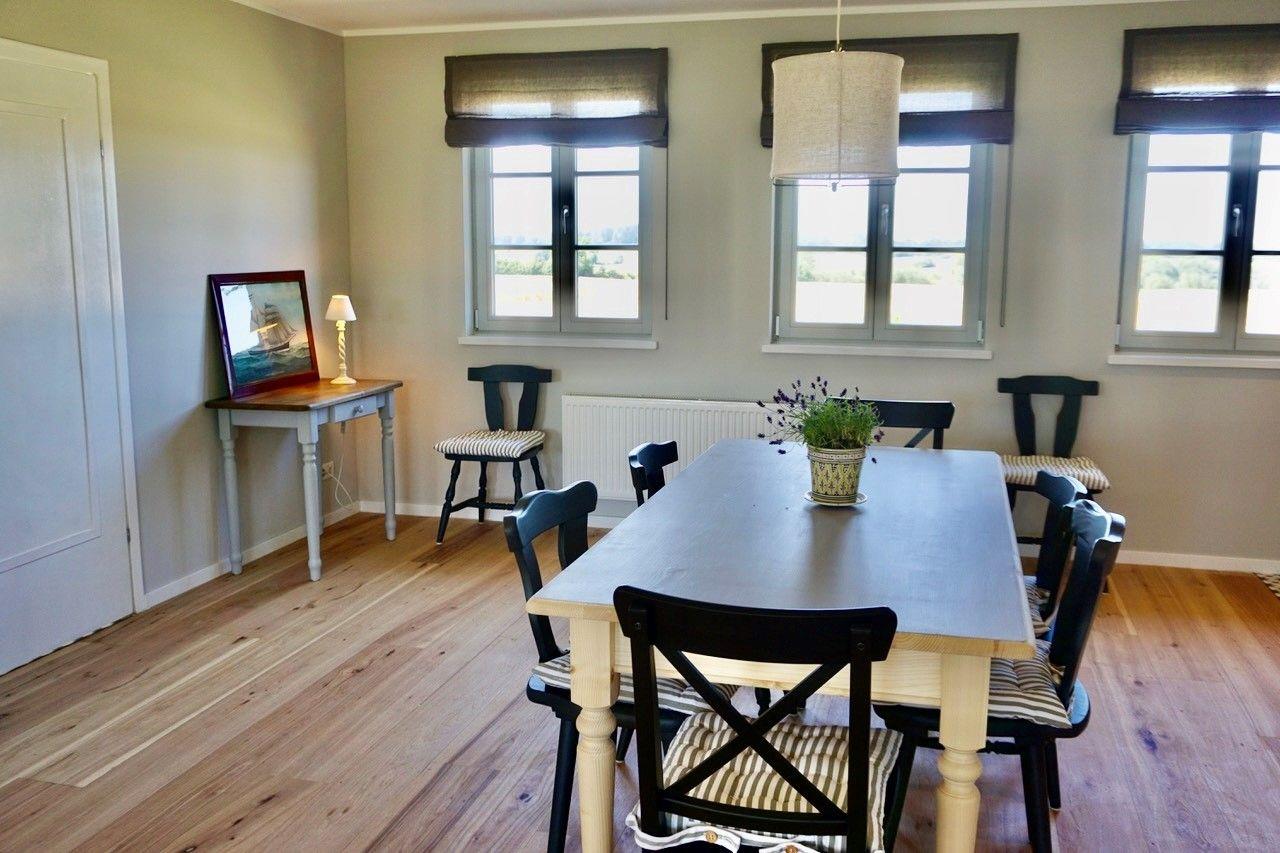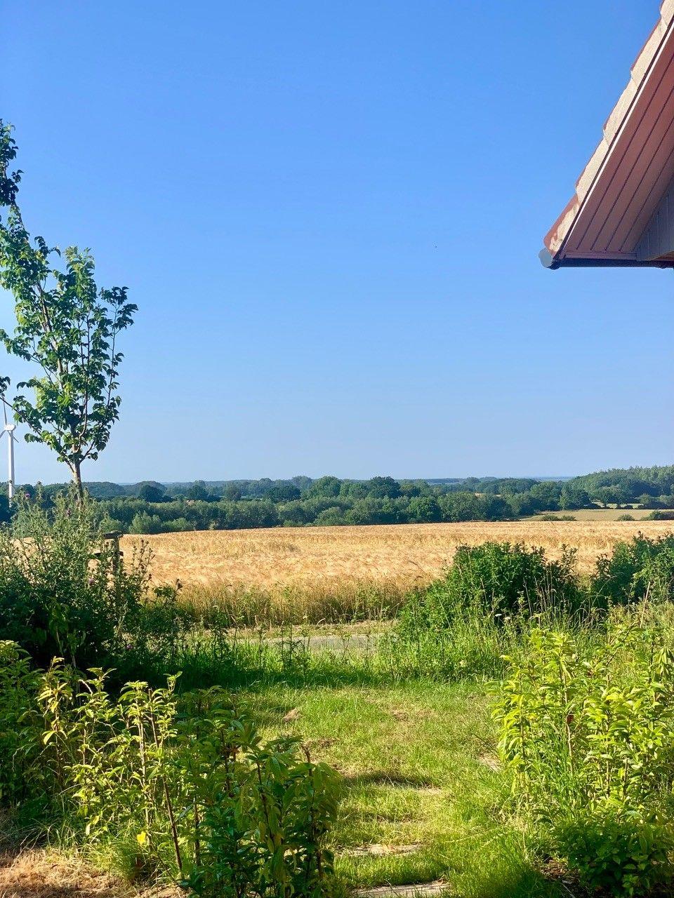 Das Meierhus liegt in Feldrandlage mit Blick über die Felder bis hin zur Schleimündung (in der Ferne). Damit Sie schnellstmöglich zur Ostsee kommen, können Sie gemütlich den Ossenrüher Hof überqueren und den Feldweg nutzen um ans Meer zu kommen.