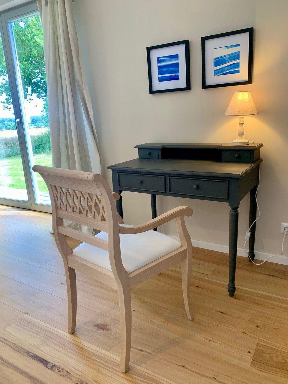 Insgesamt verfügt das "kleine Nest" über 3 liebevoll eingerichtete Schlafzimmer. Die ersten beiden Zimmer bieten jeweils ein komfortables Doppelbett (160x200 cm) mit offenem Fußende, Kleiderschrank und Verdunklungsmöglichkeiten (Rollo und Gardine). Das dritte Schlafzimmer im Dachgeschoss (Empore) besticht durch sein besonderes Flair mit offener Treppe, einem Schlafsofa (140x200cm), Kommode und Verdunklungsmöglichkeiten.
