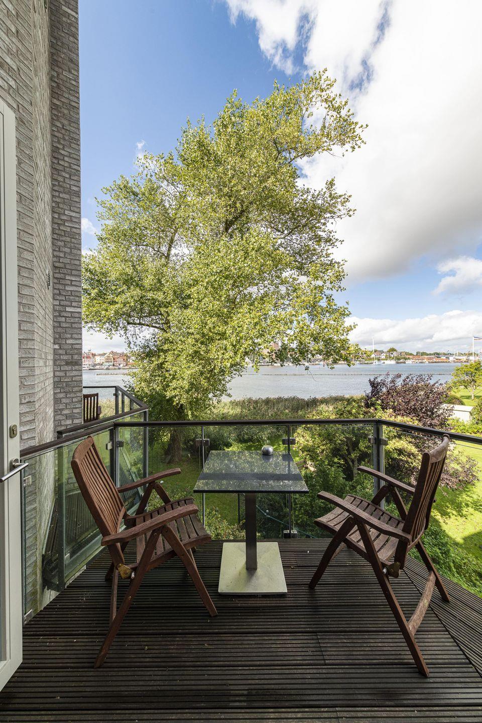 Genießen Sie den atemberaubenden Ausblick durch die Atelierverglasung auf die Schlei und Kappeln, entspannen Sie vor dem Kamin im Wohnbereich mit Blick auf das Wasser. Die Wohnung ist stilvoll und edel mit skandinavischen Akzenten eingerichtet.