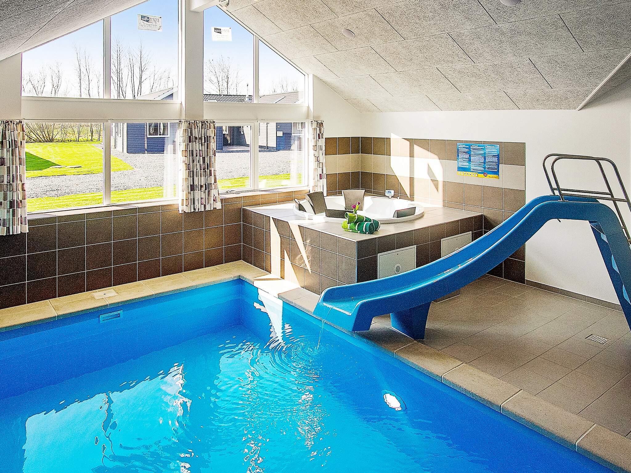 erwartet Sie ein Swimmingpool mit Gegenstromanlage und Wassserrutsche,