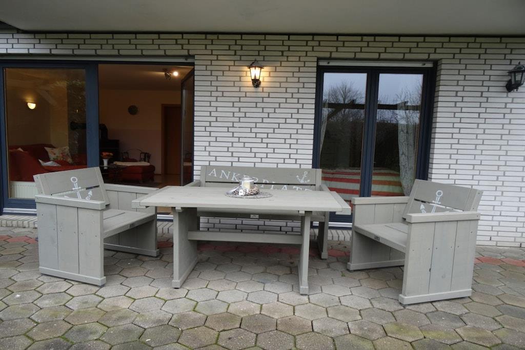 Die Ferienwohnung wurde 1999 fertiggestellt. 2012 wurden alle Zimmer mit Laminat ausgestattet. Auf 110 qm befinden sich 3 Schlafzimmer, ein Wohnzimmer 30 qm mit Flachbildschirm und Stereoanlage, DVD Player und eine gut sortierte Büchersammlung, eine neue Küche 2015 eingebaut, ein Gäste-WC, ein Flur und ein großes Badezimmer. Die teils überdachte Südterrasse kann man bei jedem Wetter nutzen. Es stehen 6 Stühle, ein Tisch, 2 Liegen und ein Grill zur Verfügung. Der Garten ist komplett mit einer großen 3 m hohen Hecke umzäunt, so dass auch die Kinder bedenkenlos spielen können. Zum Grundstück gehören ebenfalls ein abschließbarer Fahrradschuppen und ein eigener Stellplatz vor dem Haus. Kostenfreies Internet ist bei uns selbstverständlich.