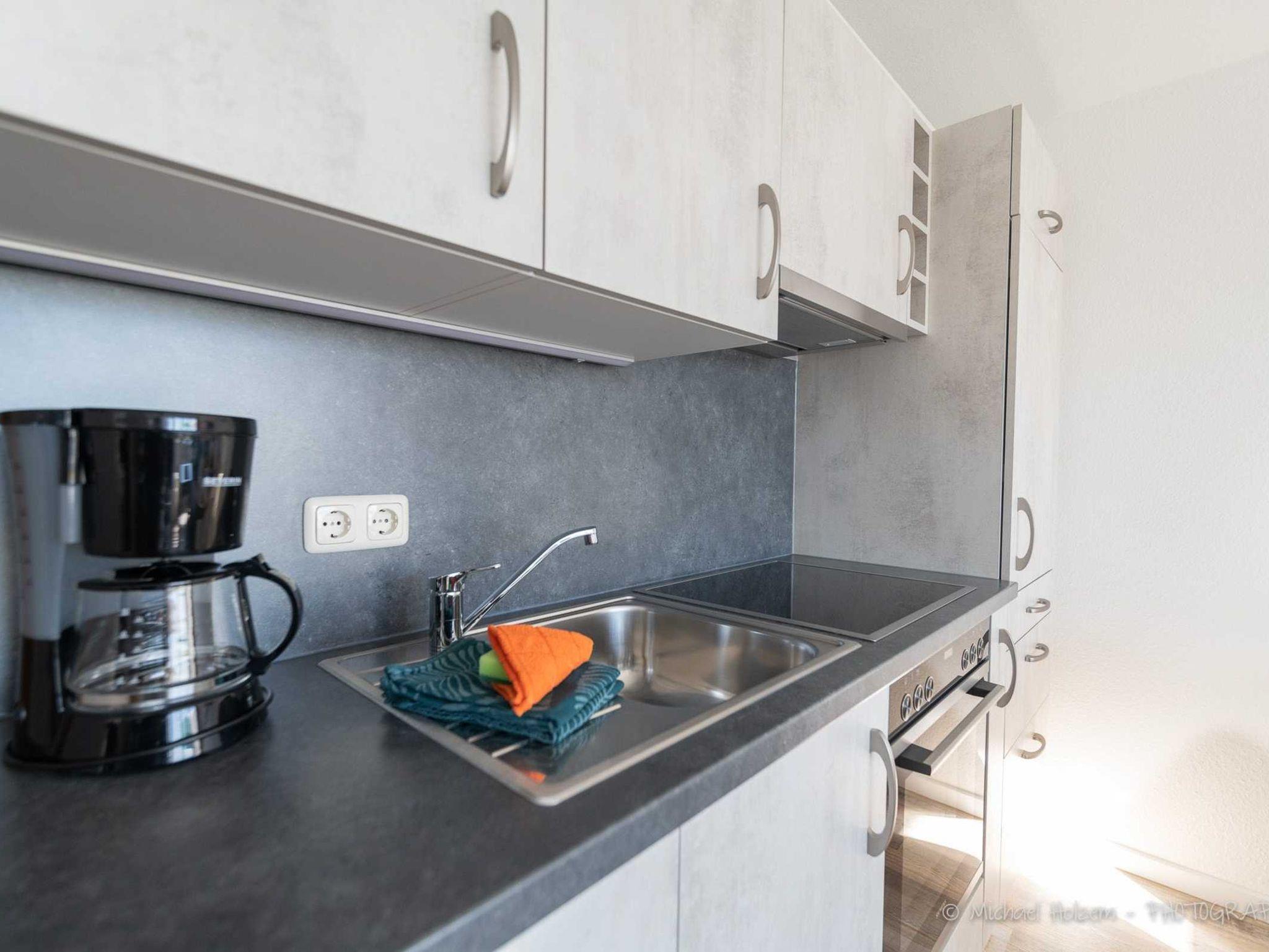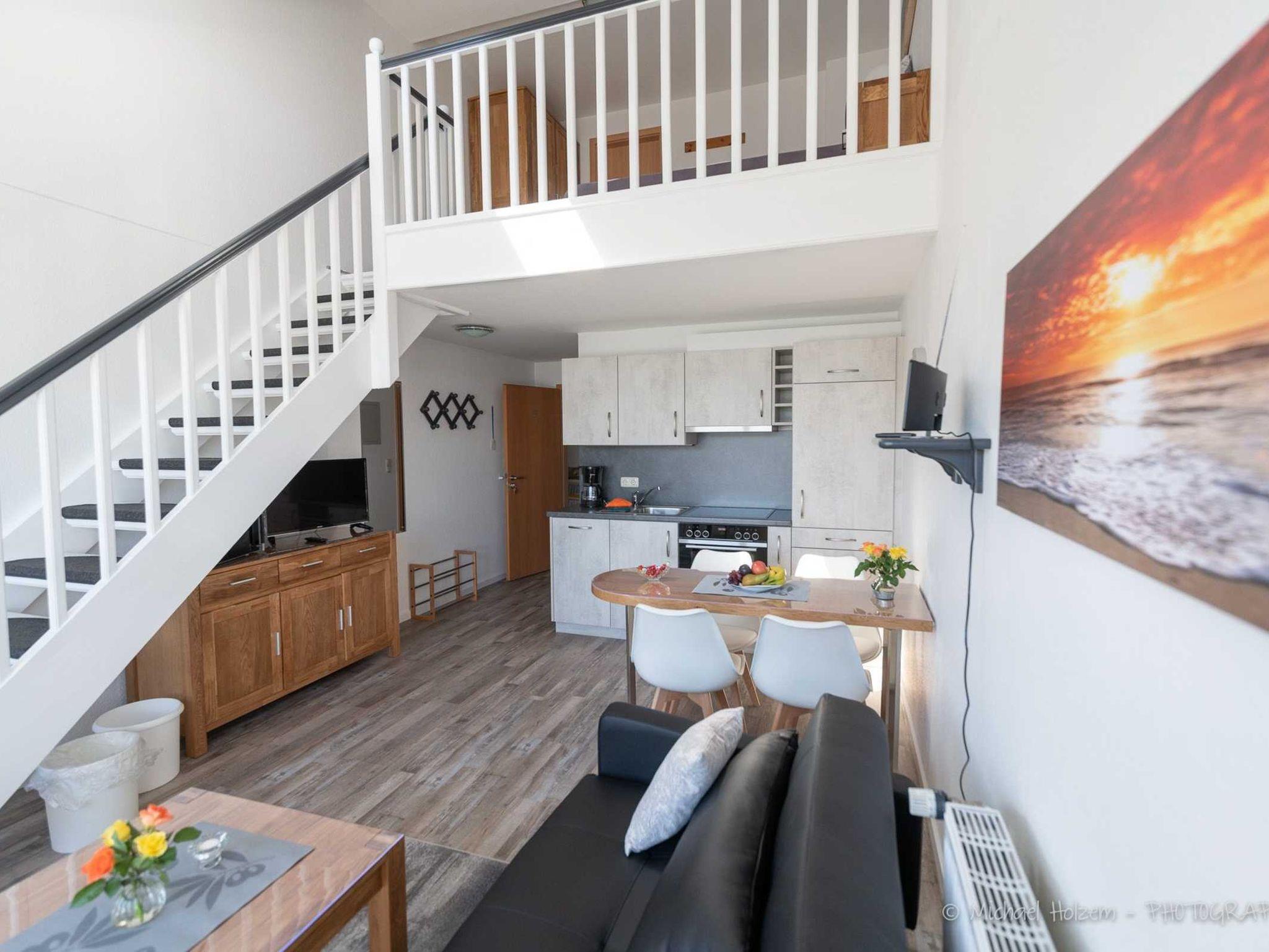 Gemütliche helle Ferienwohnungen mit Flur, Duschbad , Einbauküche , 2 Schlafzimmern. Das Wohnzimmer mit Balkon und mit Blick zur Ostsee lädt zum Verweilen ein.