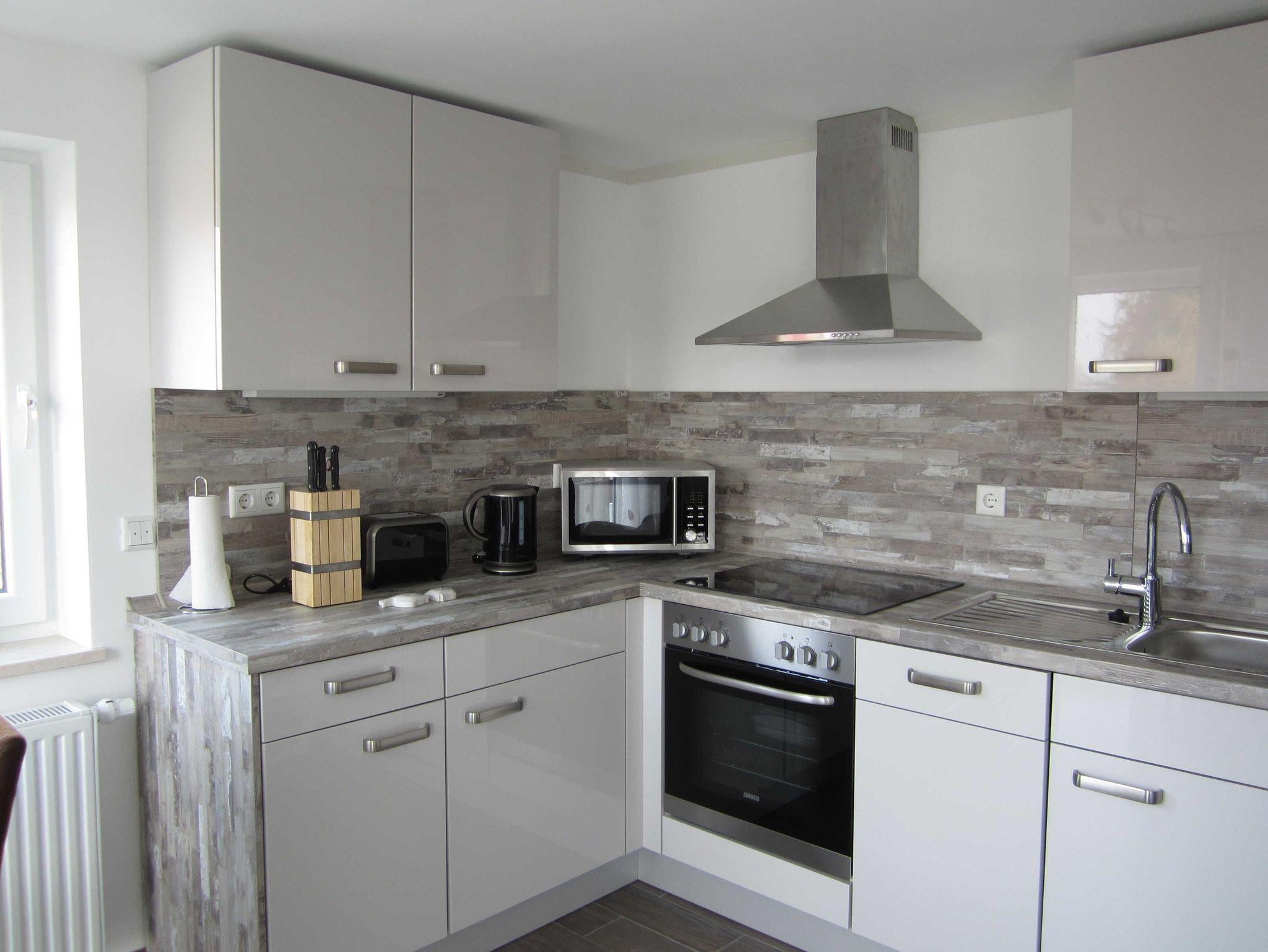 Wohnen, Essen und Kochen ohne störende Trennwände. Reichlich Geschirr und Gläser, diverse Küchenutensilien stehen zur Verfügung.