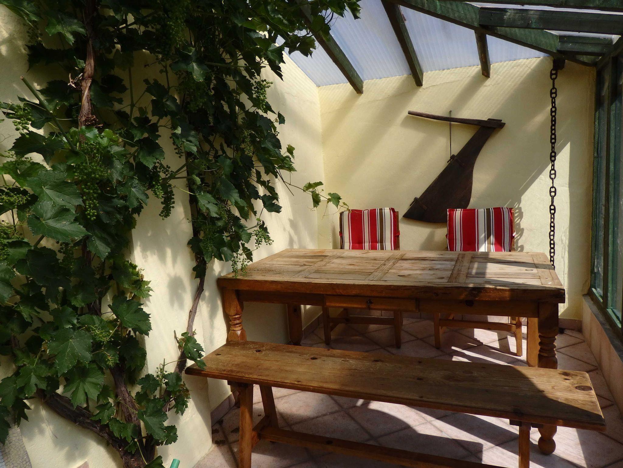 Ein Grillplatz, 4 Liegen + ein Strandkorb und diese gemütliche Weinlaube.