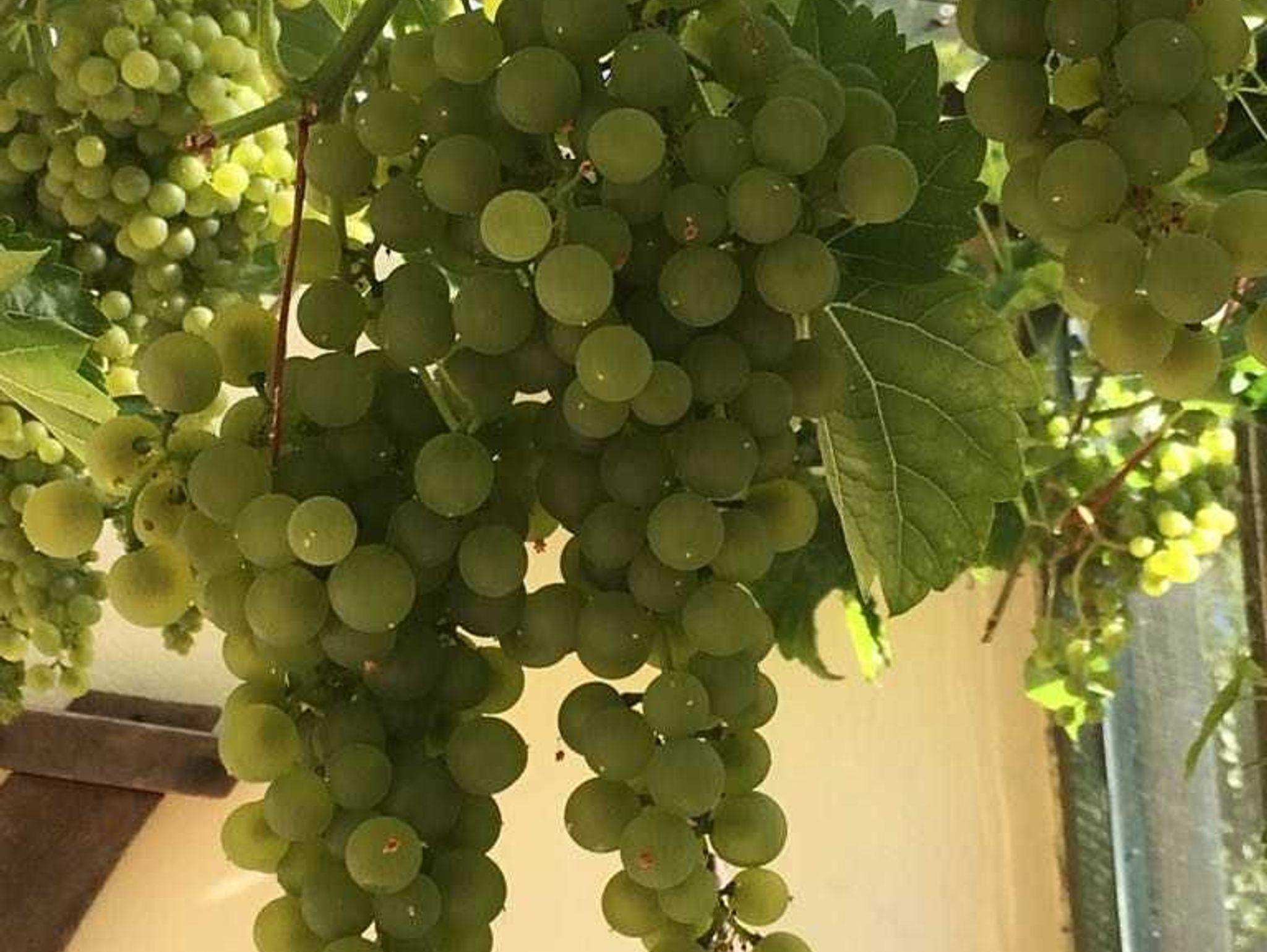 Unser großer eingezäunter Garten hat auf ca. 1200 qm schöne gemütliche Sitzecken. Es darf alles genutzt werden und sollten in Ihrer Zeit Weintrauben reif sein, können Sie sich gerne satt essen, oder in der Weinlaube frühstücken.