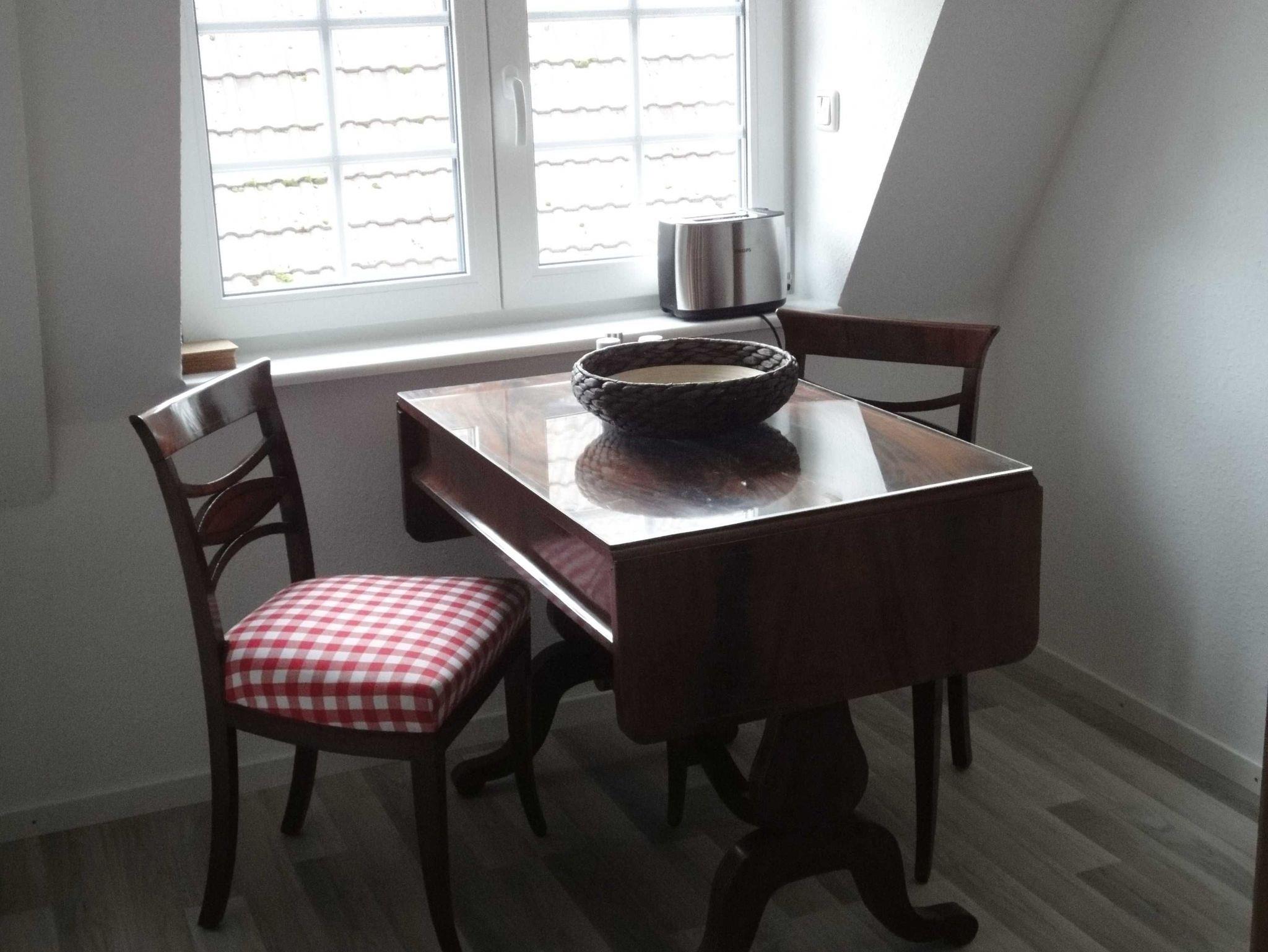 Eine wunderschöne Dachgeschosswohnung. Das Schlafzimmer ist mit einem Doppelbett und Einbauschränken ausgestattet sowie einer Truhe aus dem 1800 Jahrhundert. Die Küche ist mit E-Herd, Backoffen, Kochgeschirr, Mikrowelle, Kühlschrank, Gefrierfach, Geschirrspülmaschine, Spüle, Kaffeemaschine, Wasserkocher,und dem tägliche Geschirr ausgestattet. Die Essecke ist mit zwei Stühlen und Tisch ausgestattet. Die Stube ist mit einem Sofa, Tisch, und zwei Sessel, Kommode und einem Schreibsekretär aus dem 1800 Jahrhundert stilvoll ausgestattet. Der Balkon ist mit zwei Stühlen, Tisch und einen Sonnenschirm ausgestattet. Das Auto kann vor derTür abgestellt werden,