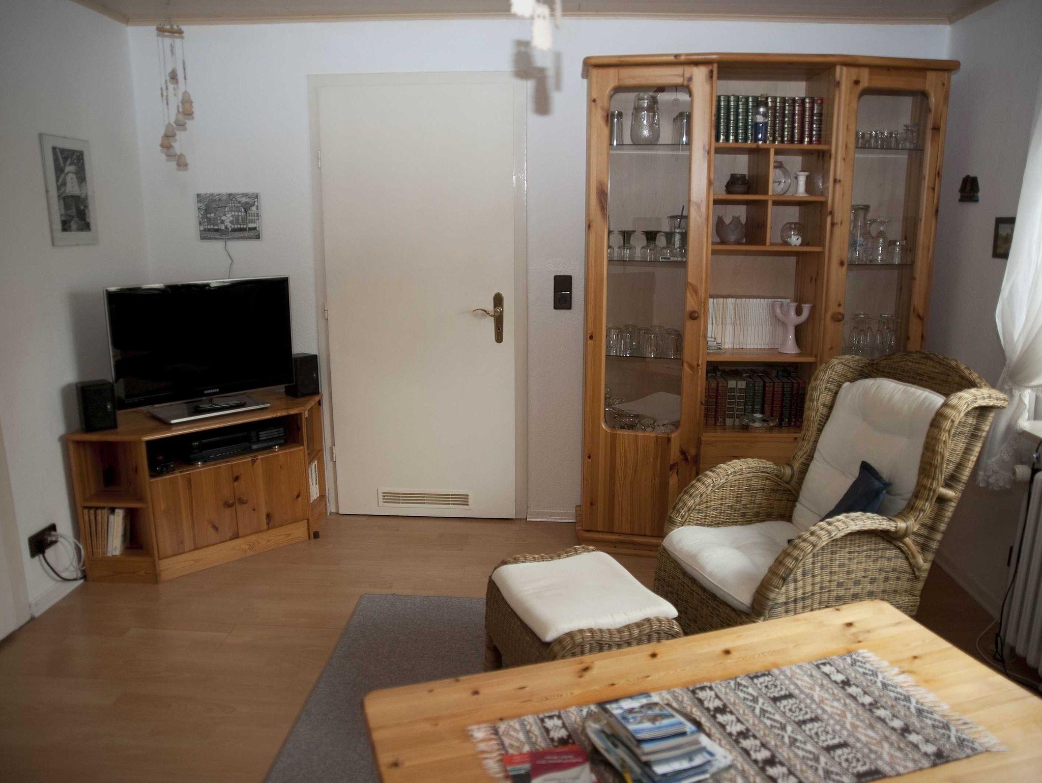 Die im Erdgeschoß liegende hell und geschmackvoll eingerichtete Ferienwohnung (42 qm) ist für 2 Personen(auch Allergiker geeignet), mit eigener Terrasse und diversen Sitz- und Liegemöglichkeiten im Garten. Direkt vor dem Haus haben sie für ihren PKW einen eigenen Stellplatz. Die Küche ist mit Mikrowelle, Kühlschrank mit Gefrierfach, Geschirrspüler, Toaster, Eierkocher, Kaffeemaschine, Pad-Maschine, Wasserkocher, ausreichend Geschirr und Besteck, Herd und separaten Backofen ausgestattet. Die Essecke mit Tisch lädt genauso zum Verweilen ein, wie das Wohnzimmer mit gemütlichem Sofa und Sesseln. Moderne Mediengeräte sowie eine Bücher- und Spiele-Sammlung sorgen dafür, dass sie sich wie Zuhause fühlen, WLAN und ein Telefon gehören ebenfalls zur Ausstattung. Die Ferienwohnung verfügt über 1 Schlafzimmer mit einem Doppelbett (180 x 200) und einem großen Kleiderschrank. Im Bad finden sie Dusche-WC, Waschbecken, Waschmaschine/Wäschetrockner und ausreichend Ablagefläche vor. Die Sauna im Keller mit Dusche-WC rundet die geschmackvolle Ausstattung der Wohnung perfekt ab. Bettwäsche und Handtücher sind einmalig pro Person incl.