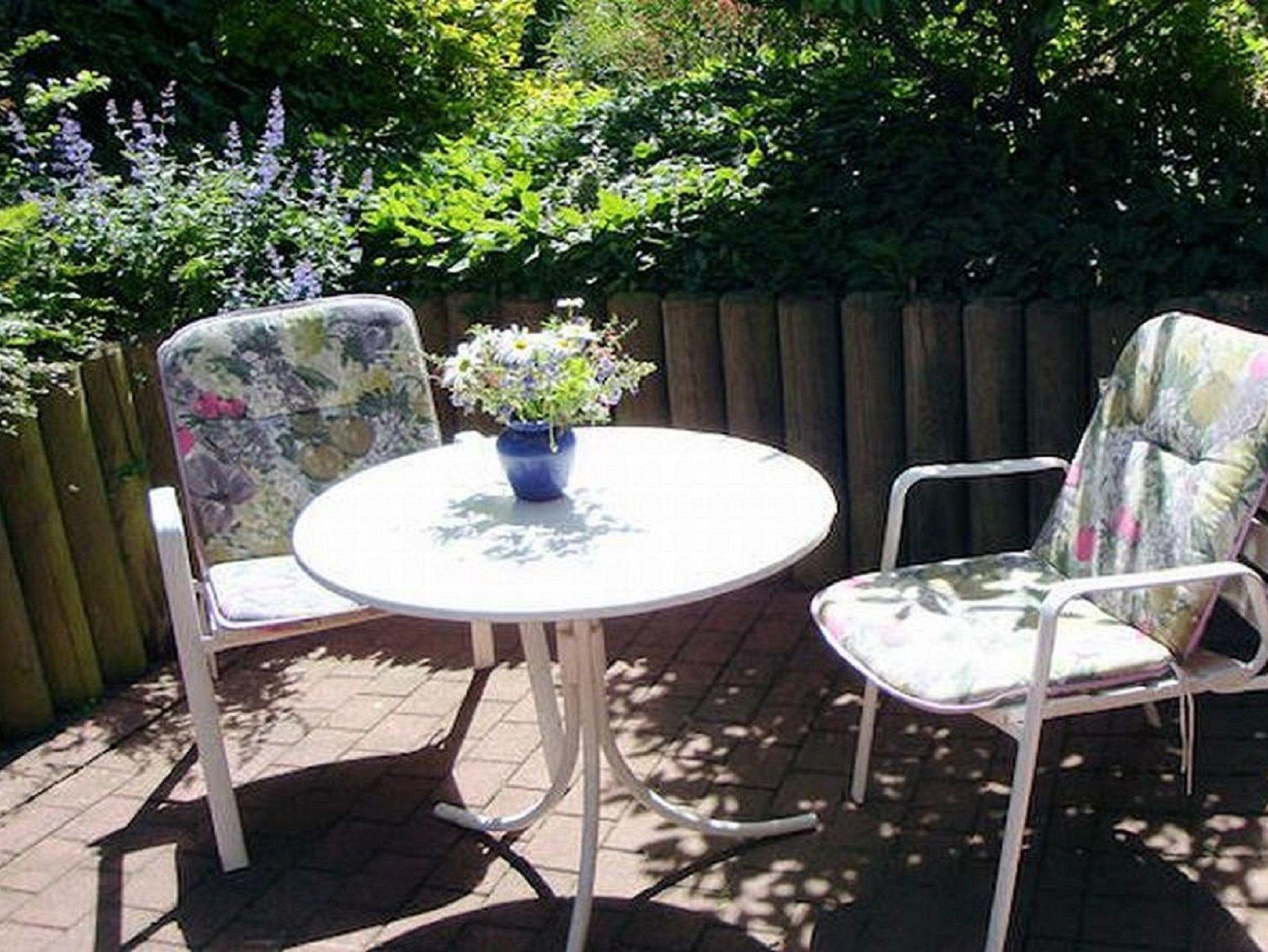 Die gemütliche Ferienwohnung umfasst einen kombinierten Wohn-Schlafraum mit Doppelbett und Küchenzeile. Es gibt einen Abstellraum sowie eine Terrasse und eine gemütliche Sitzecke im Garten mit Strandkorb.