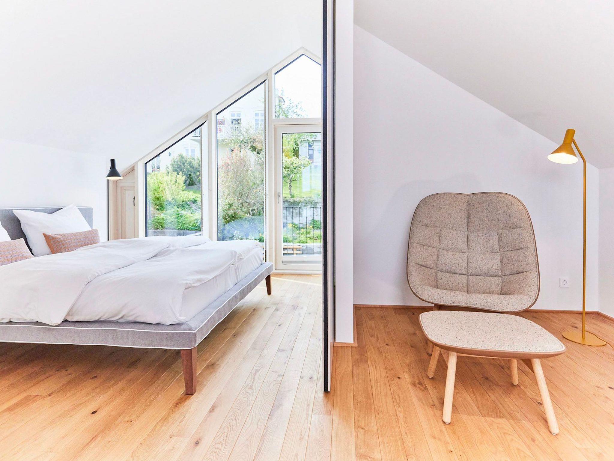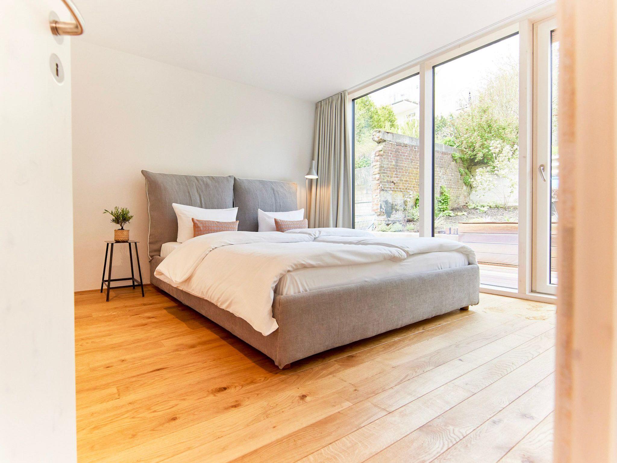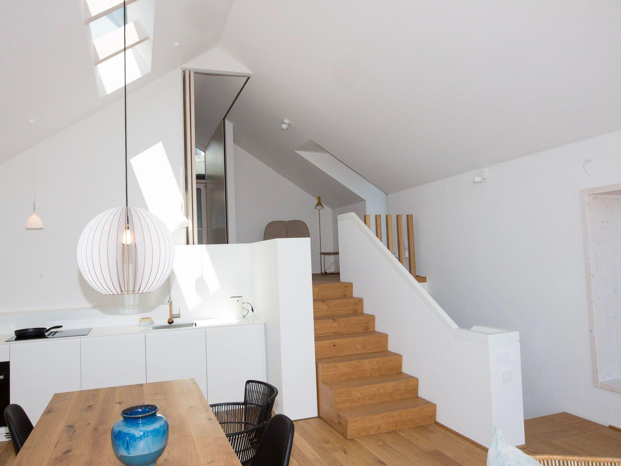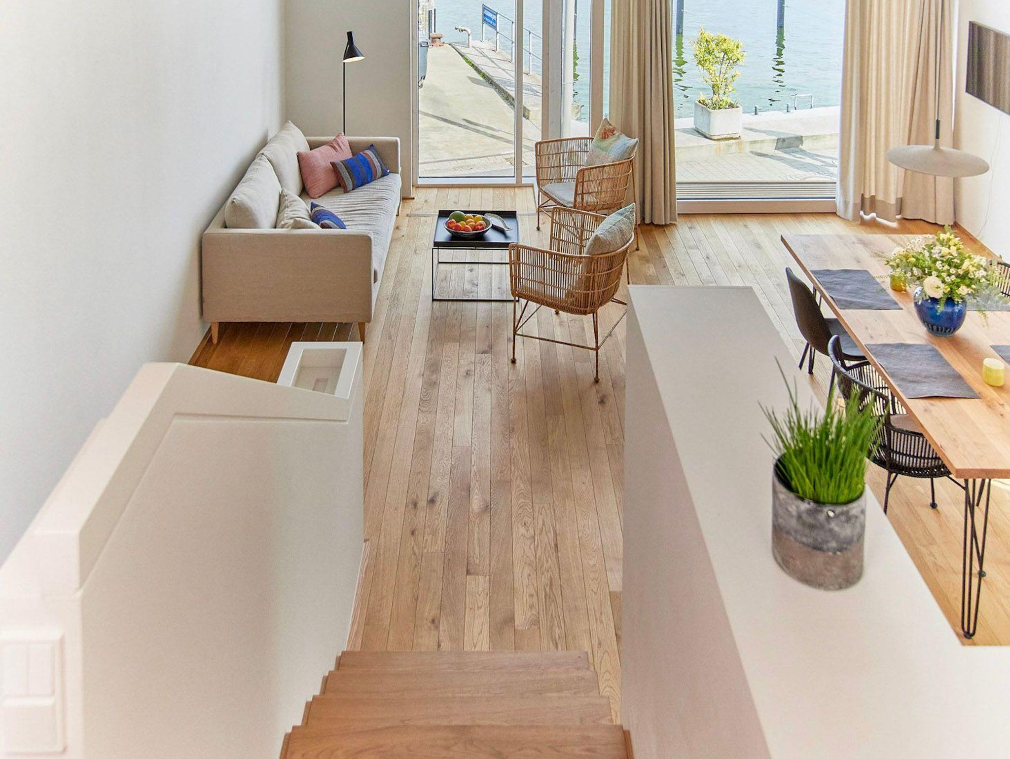 Die hochwertige Innenausstattung wurden mit Leidenschaft und mit warmen Holzböden, hellen Farben, lichtdurchflutet mit viel Glas und mit individuell ausgewählten Möbeln gestaltet.
