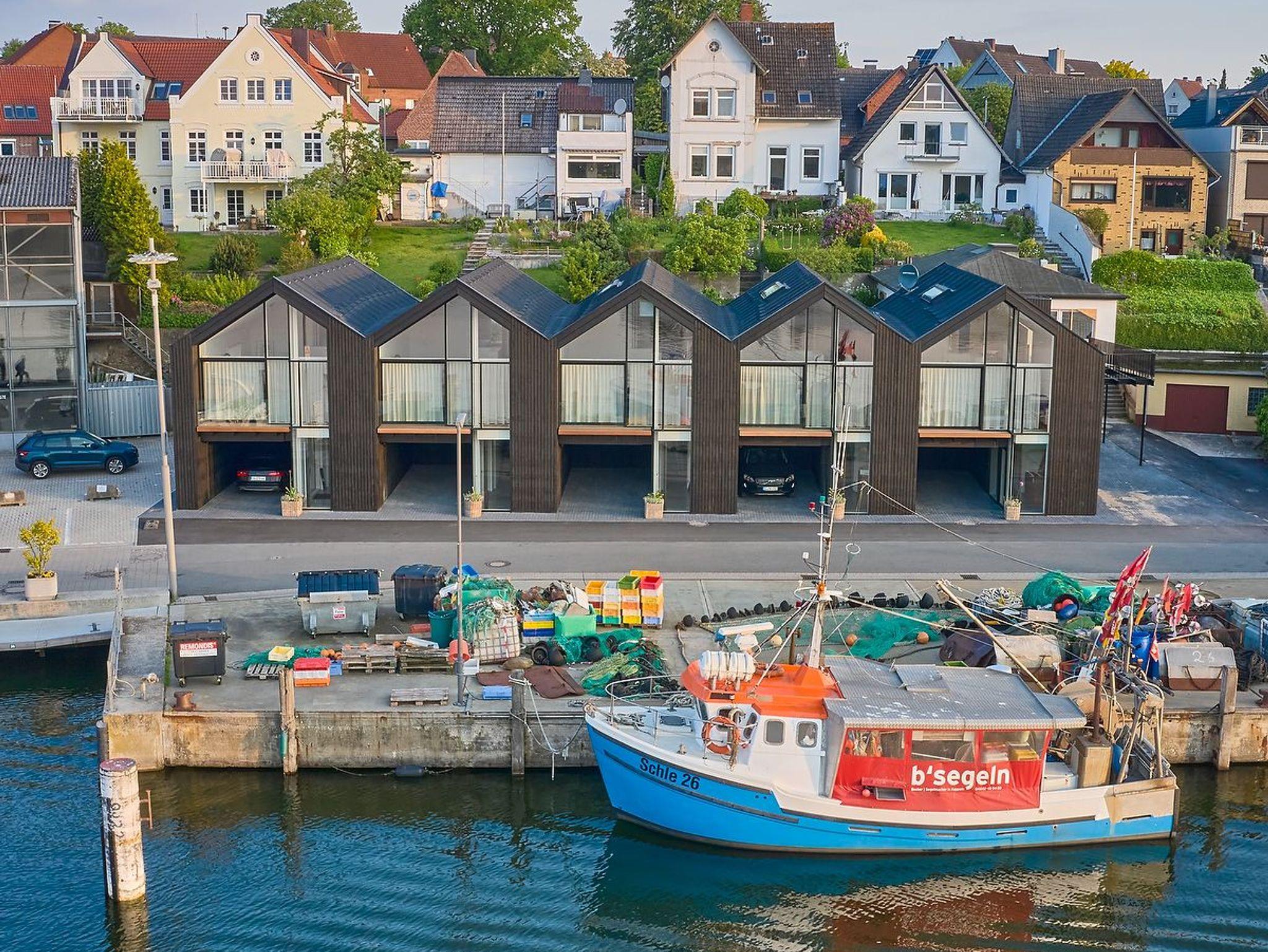 Unsere einmaligen »Netzschuppen«-Lofthäuser liegen in Kappeln, direkt an der schönen Schlei mit Blick auf den Fischereihafen.
