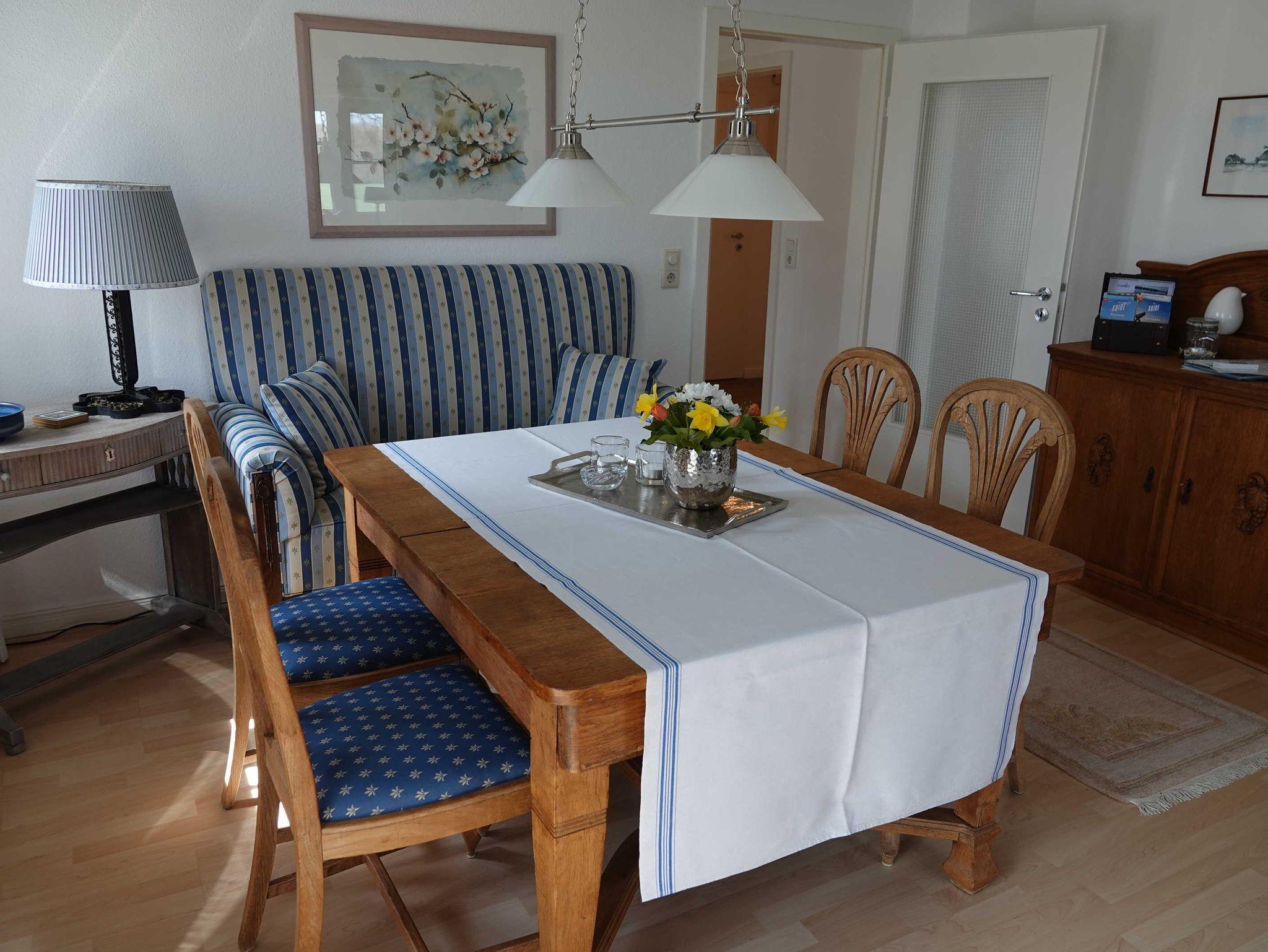 Sie können hier bequem mit bis zu vier Personen wohnen. Die beiden Schlafzimmer verfügen über ein Doppelbett bzw. zwei Einzelbetten. Das Wohnzimmer lädt mit einer gemütlichen Sitzecke im optisch abgetrennten Essbereich zum Verweilen ein. Die separate Küche mit Einbaumöbeln verfügt über einen kleinen Sitzplatz für bis zu vier Personen. Balkon und Freisitz im Garten.