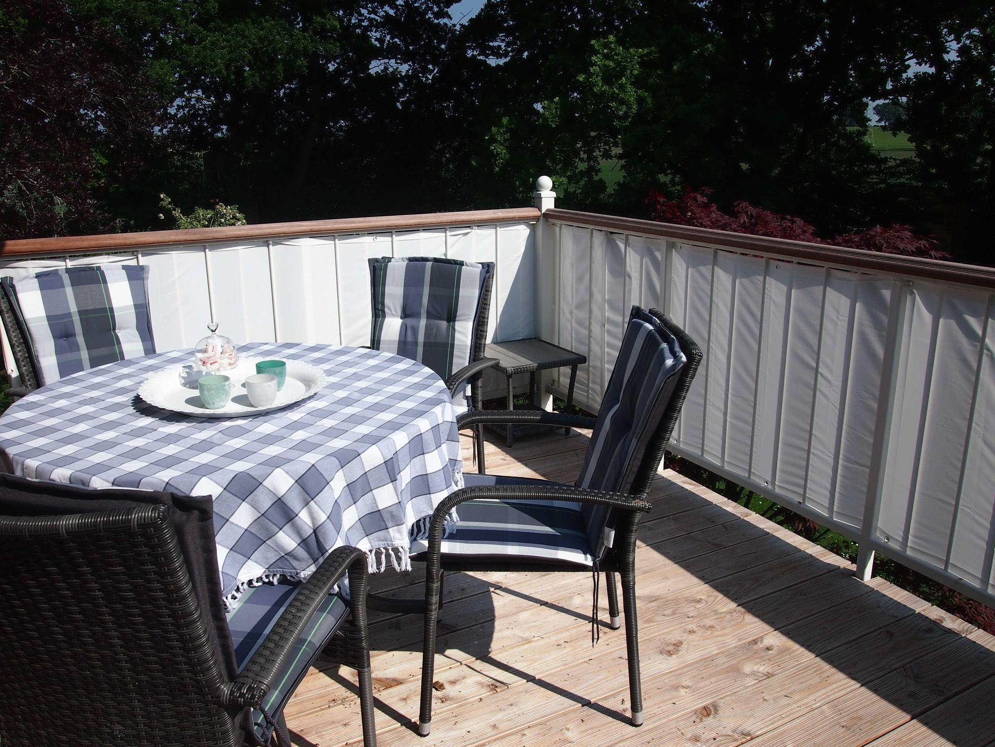 Für besonderen Flair sorgt die zur Ferienwohnung gehörende, blickgeschützte Terrasse mit Gartenmöbeln und Sonnenliegen.