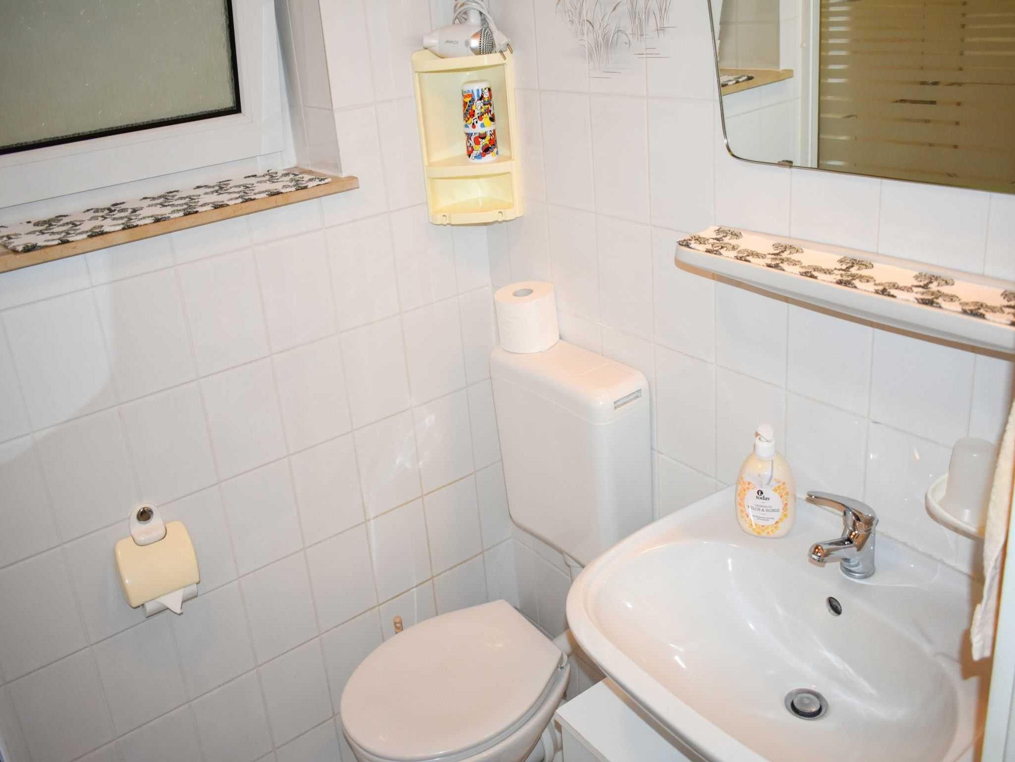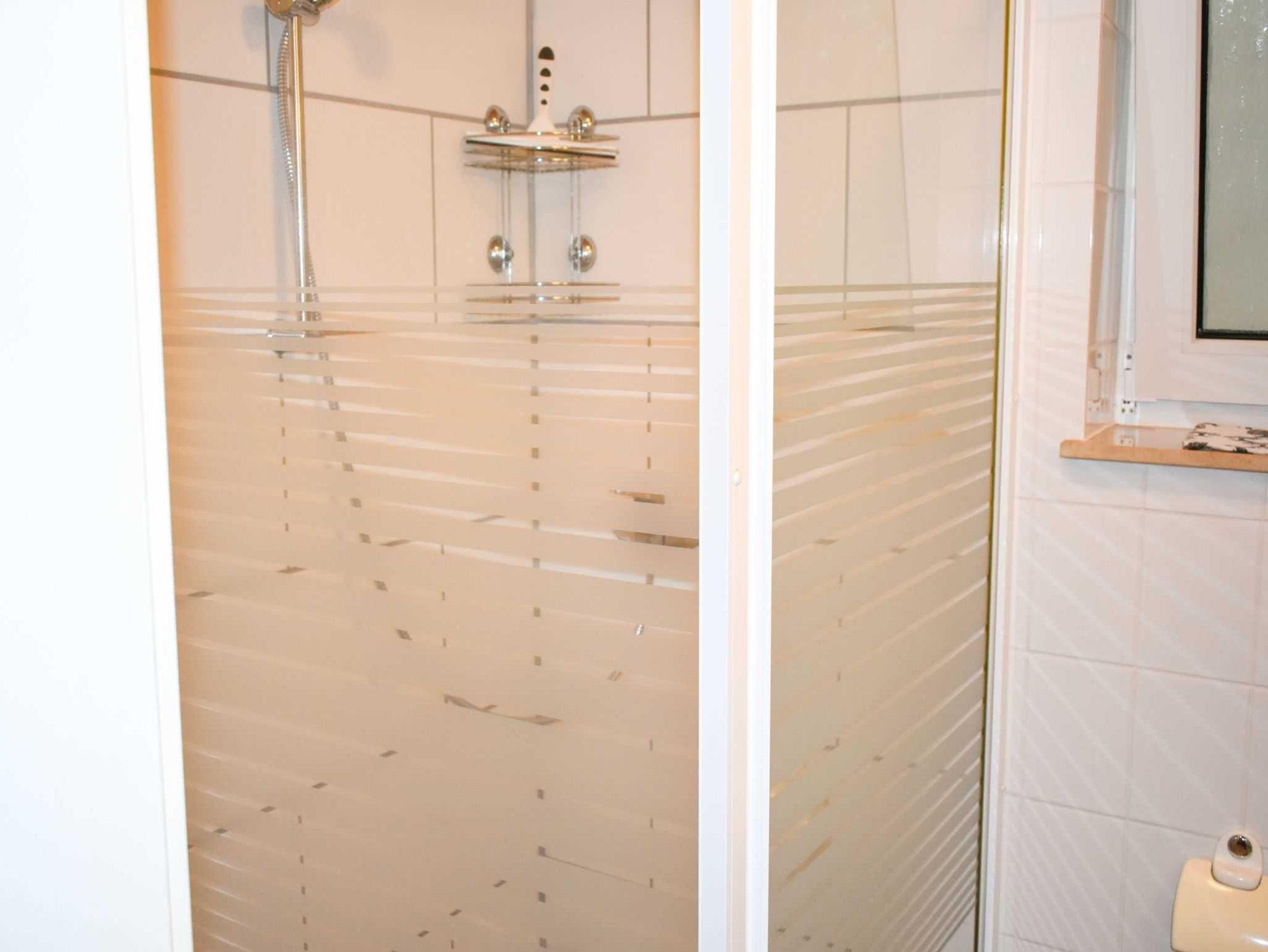 Die große Ferienwohnung (48qm) hat ein Kinderzimmer mit 2 Einzelbetten und eine Terrasse. Auch Sie ist mit einem Doppelbett und einer Couch mit Sitzreihe ausgestattet. Eine Küchenzeile mit Kaffeemaschine, Toaster und Wasserkocher sind ebenfalls vorhanden. Der Garten kann genutzt werden und Ihre Fahrräder können im Blockhaus untergestellt werden. Jede Ferienwohnung verfügt über ausreichend Sitzgelegenheiten.
